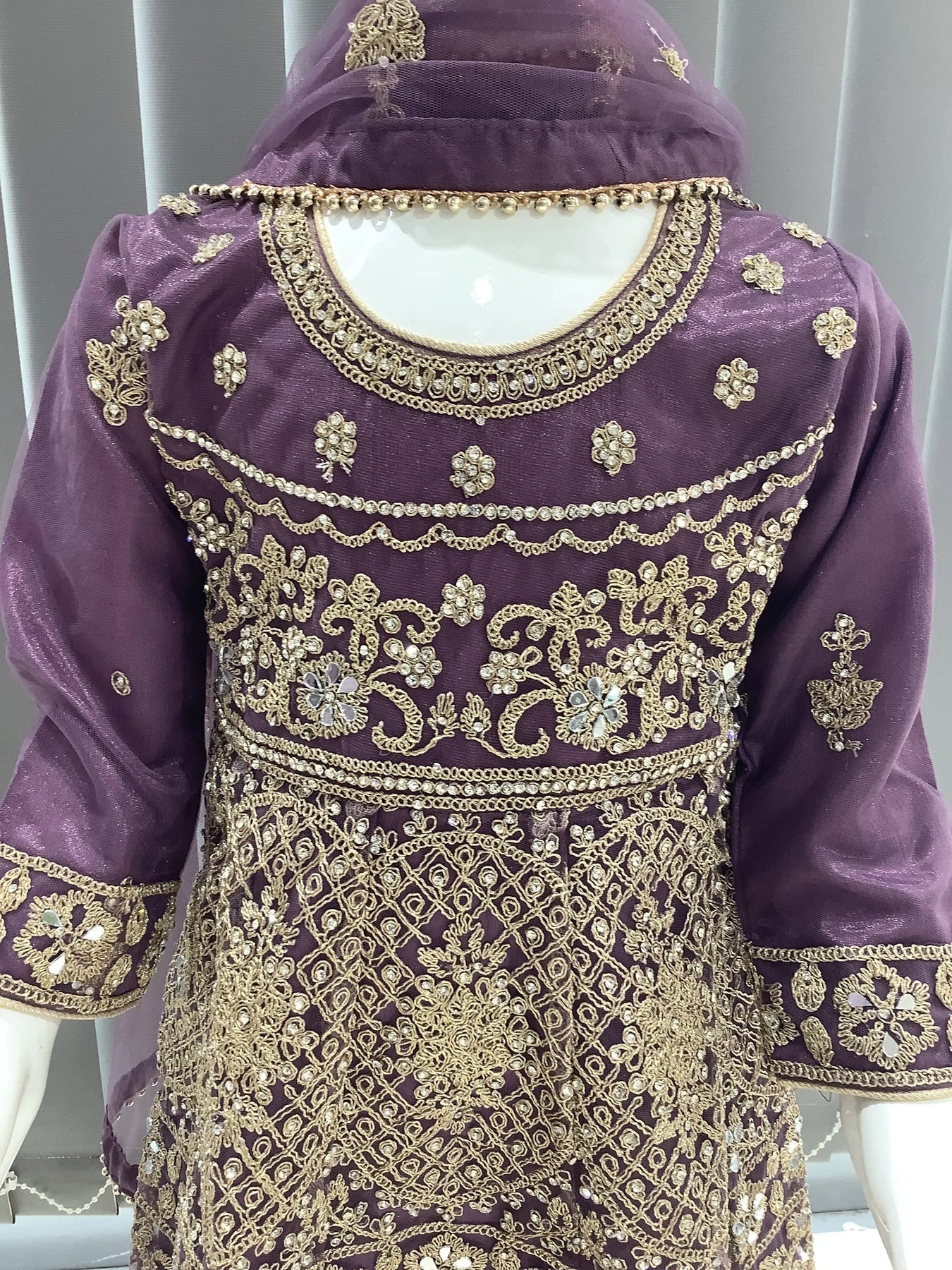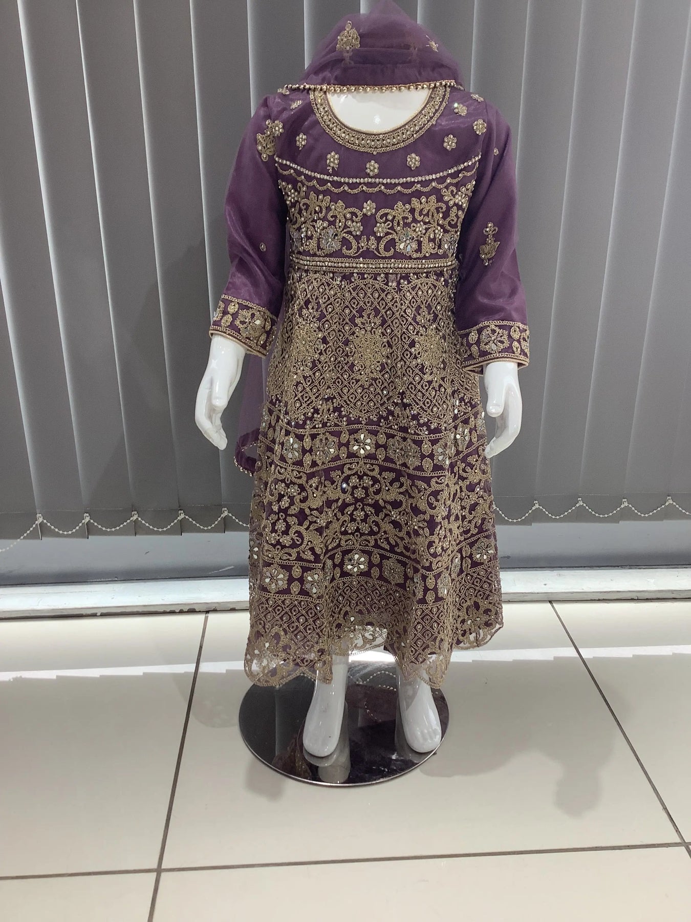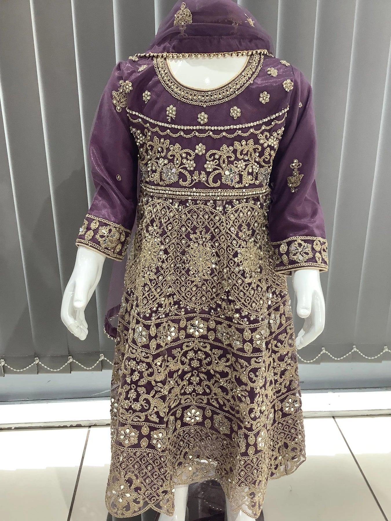 ASHA | Embroidered Net Dori Work Kids Dress Ready To Wear Lailac | AS62