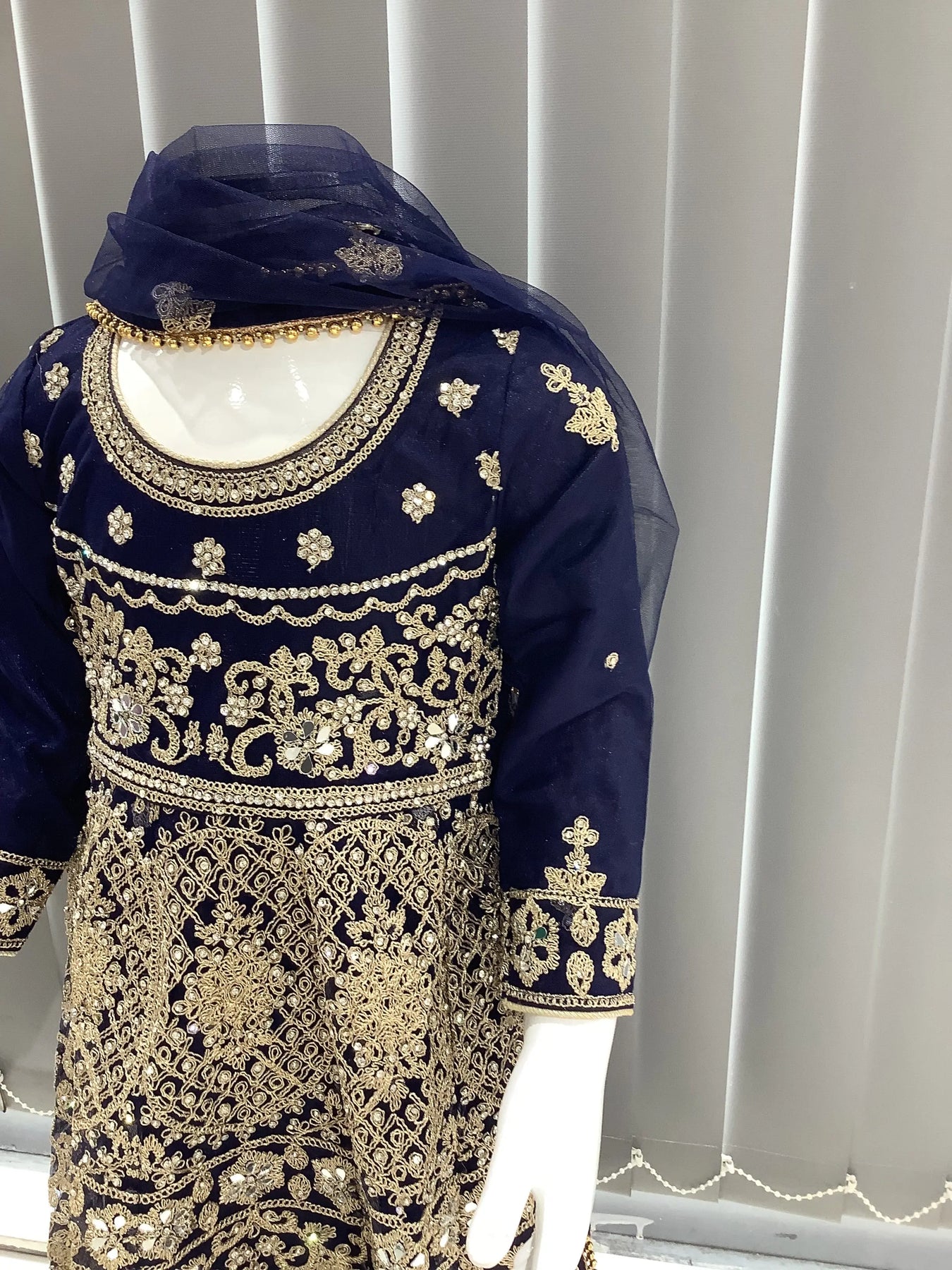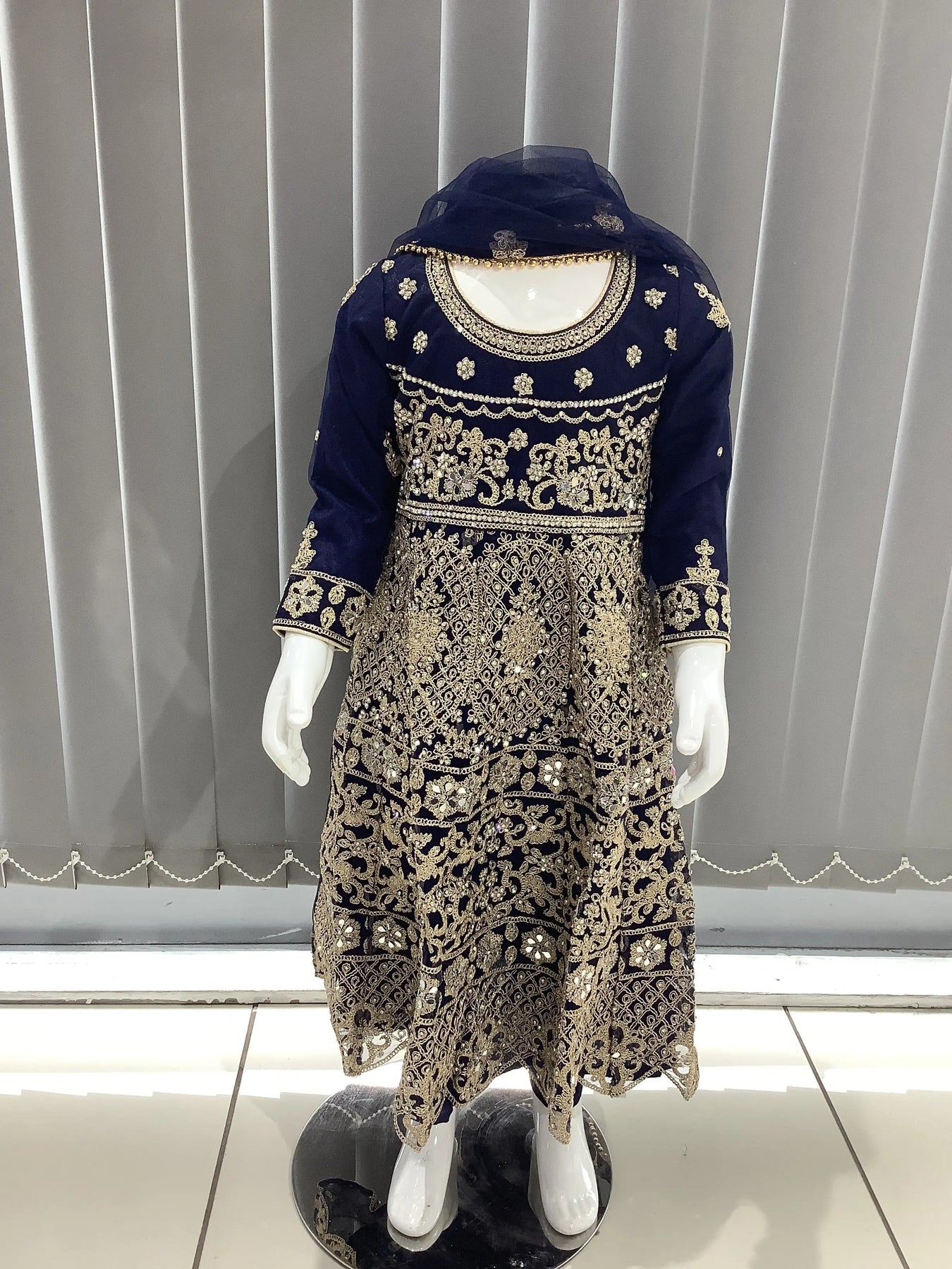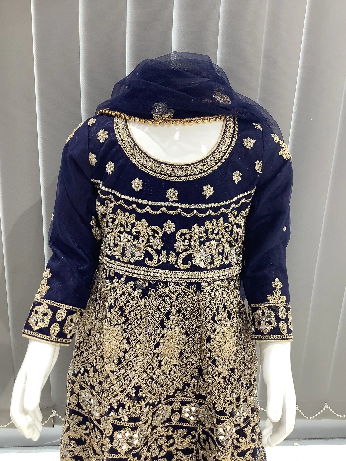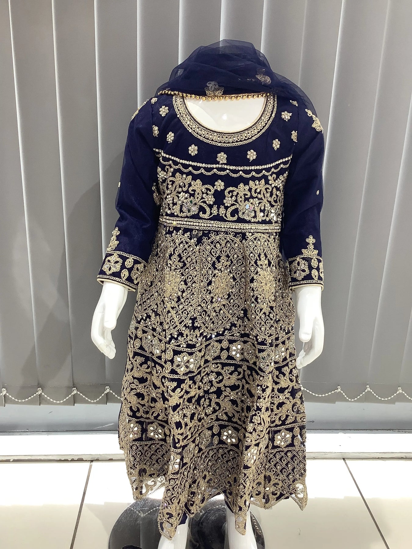ASHA | Embroidered Net Dori Work Kids Dress Ready To Wear Blue | AS62