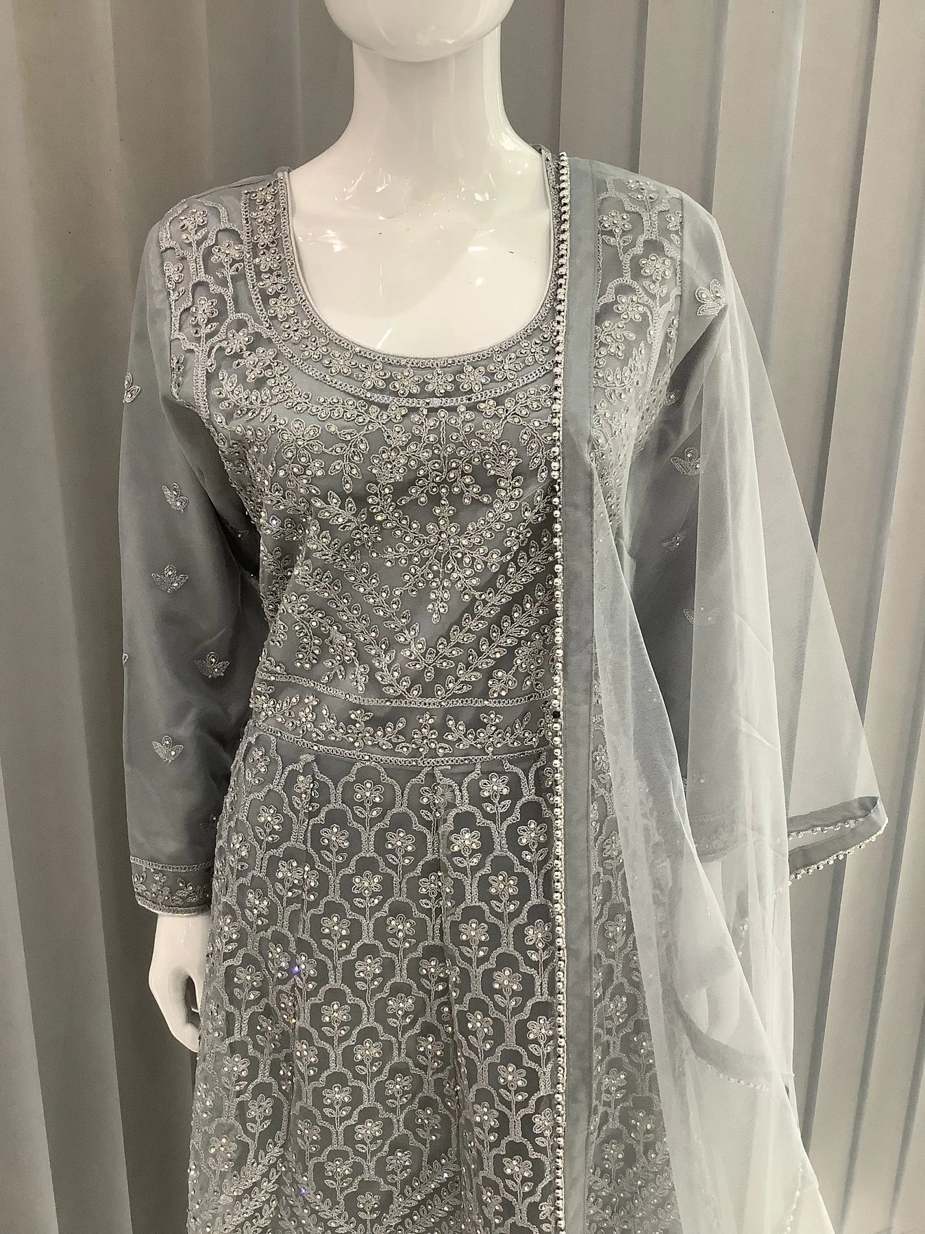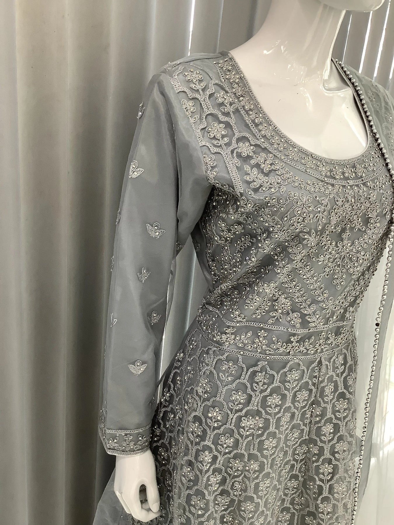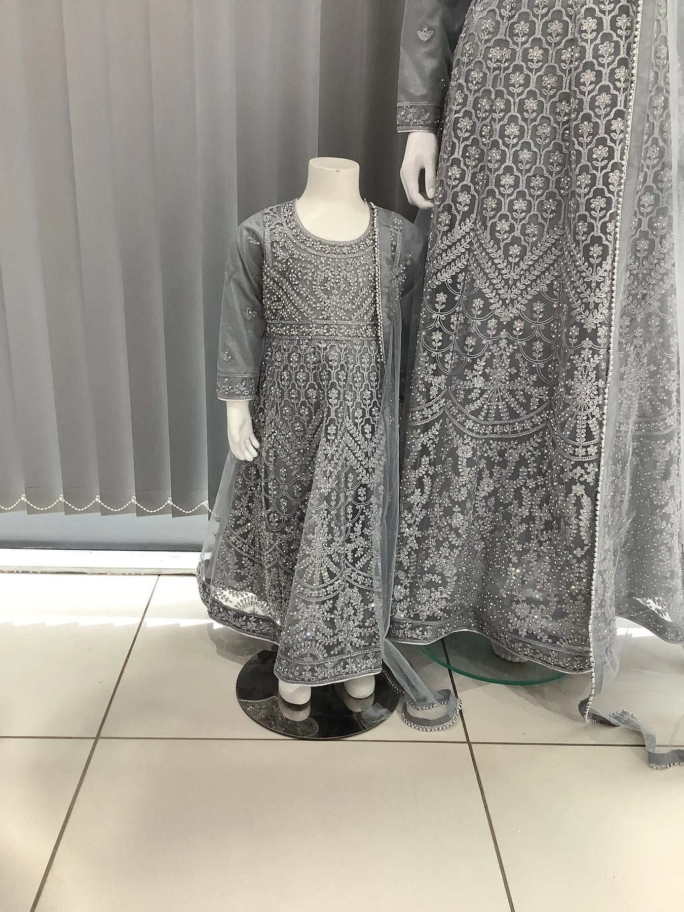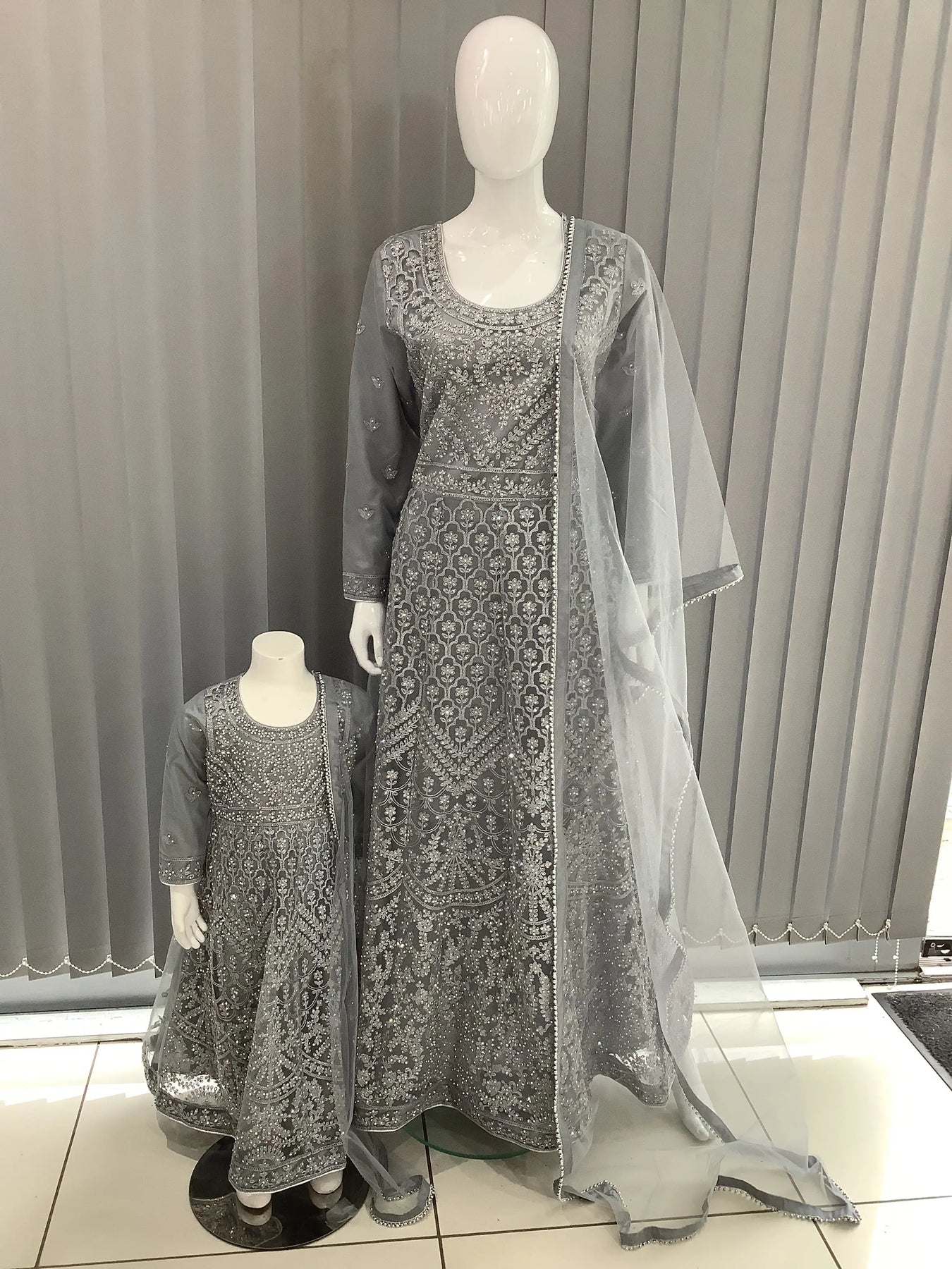ASHA | Embroidered Net Mother & Daughter Ready To Wear Grey| AS30