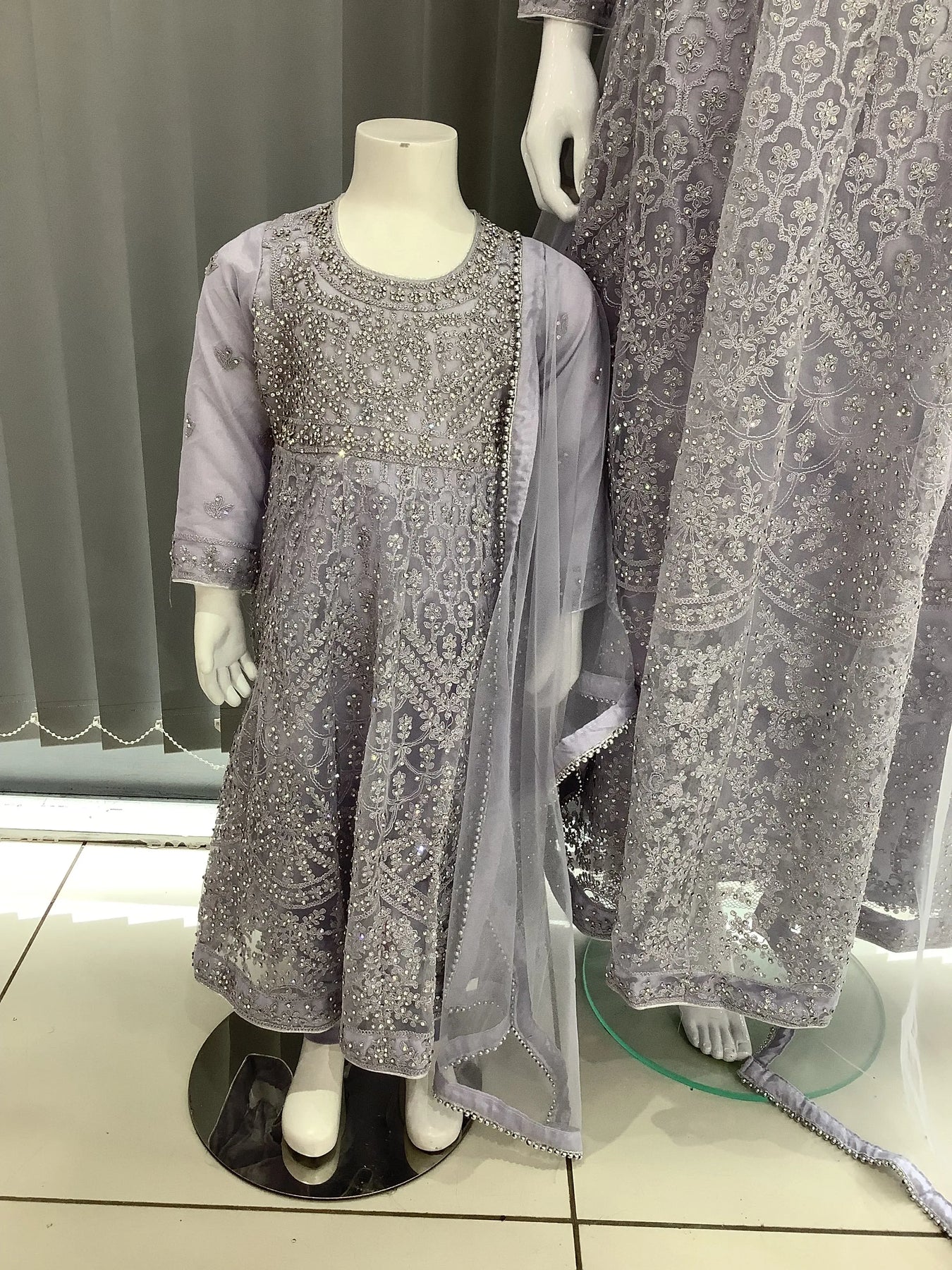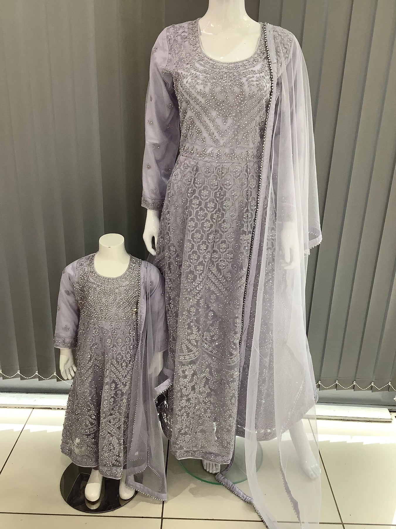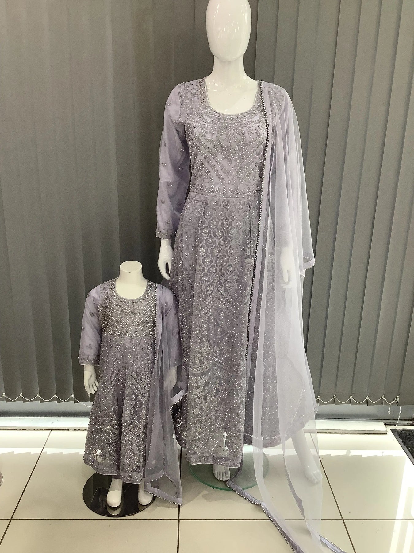 ASHA | Embroidered Net Mother & Daughter Ready To Wear Lailac | AS30