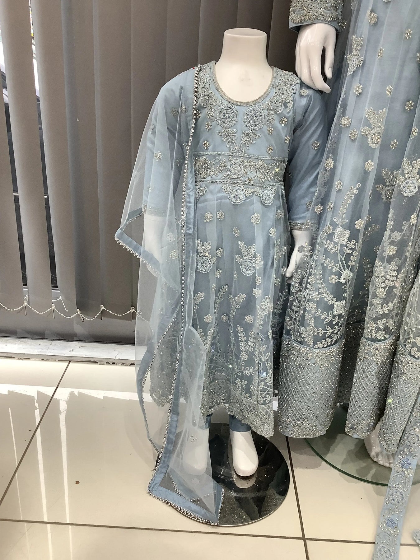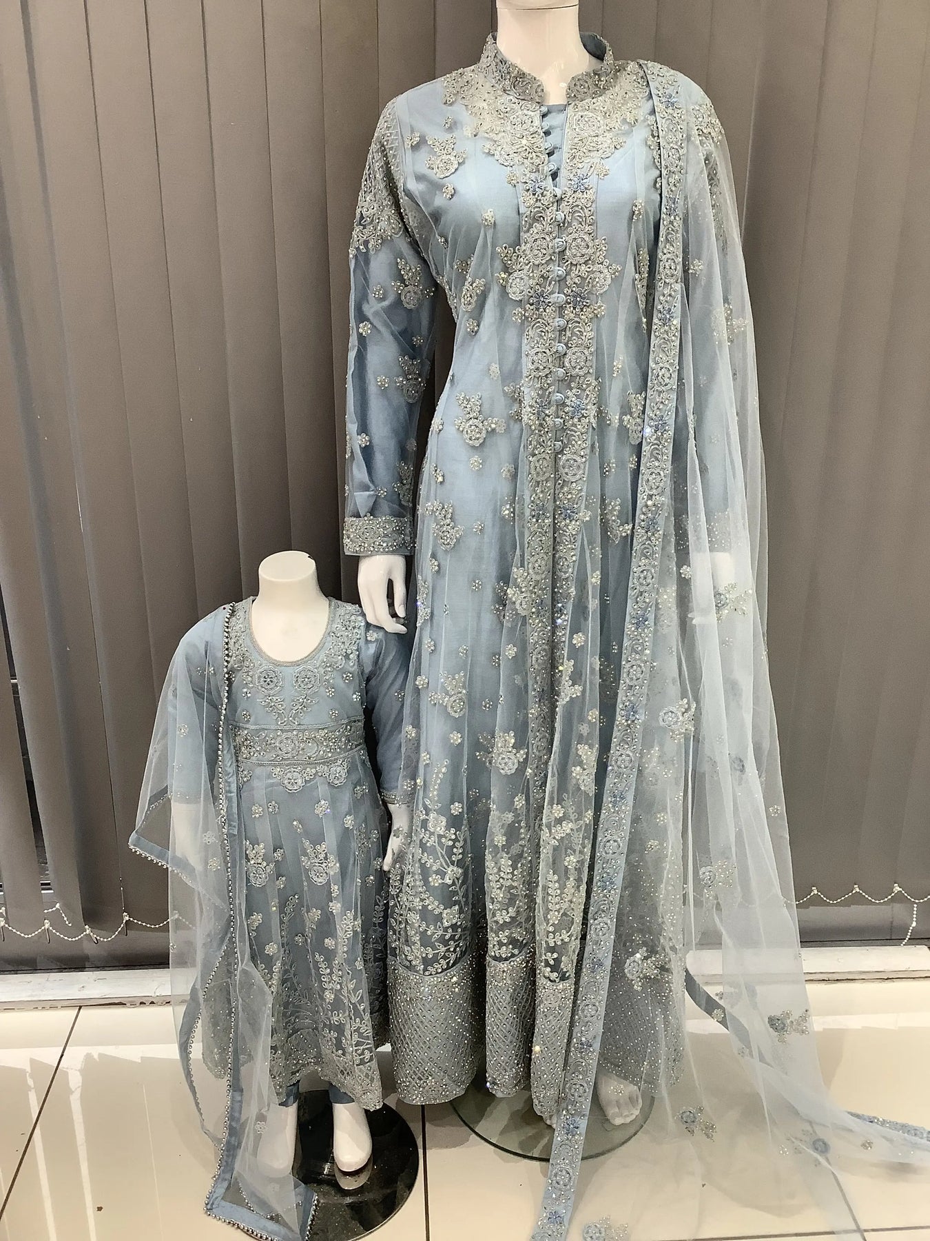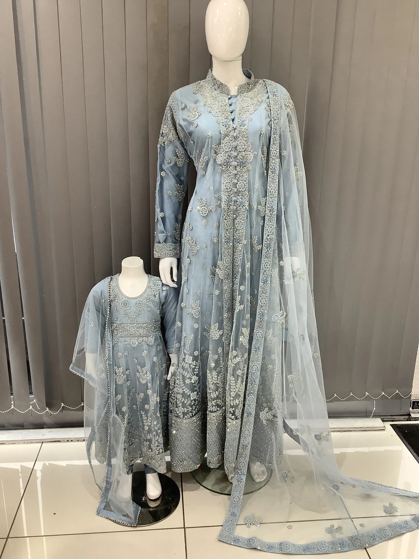ASHA | Embroidered Net Mother & Daughter Ready To Wear light Blue | AS75