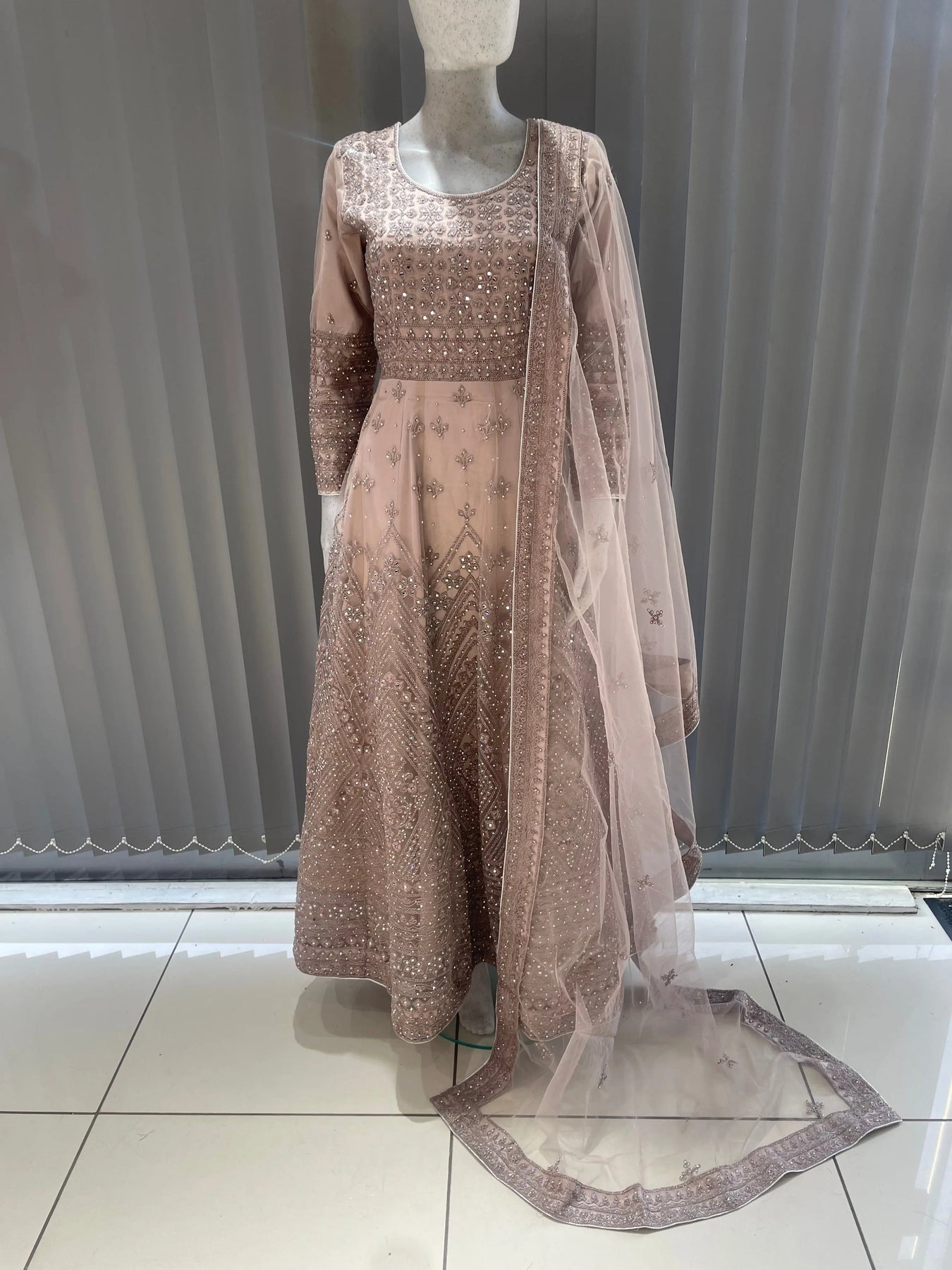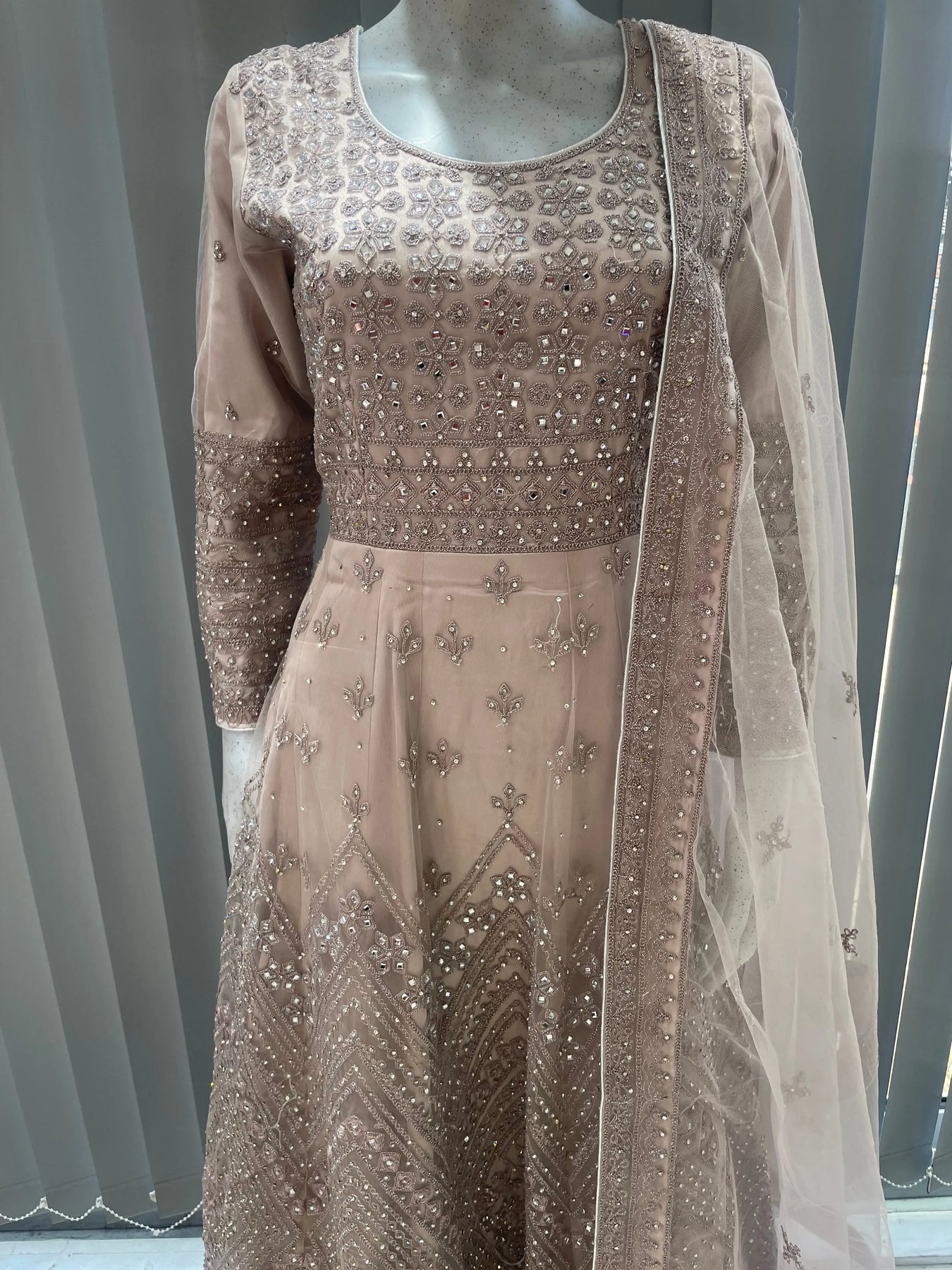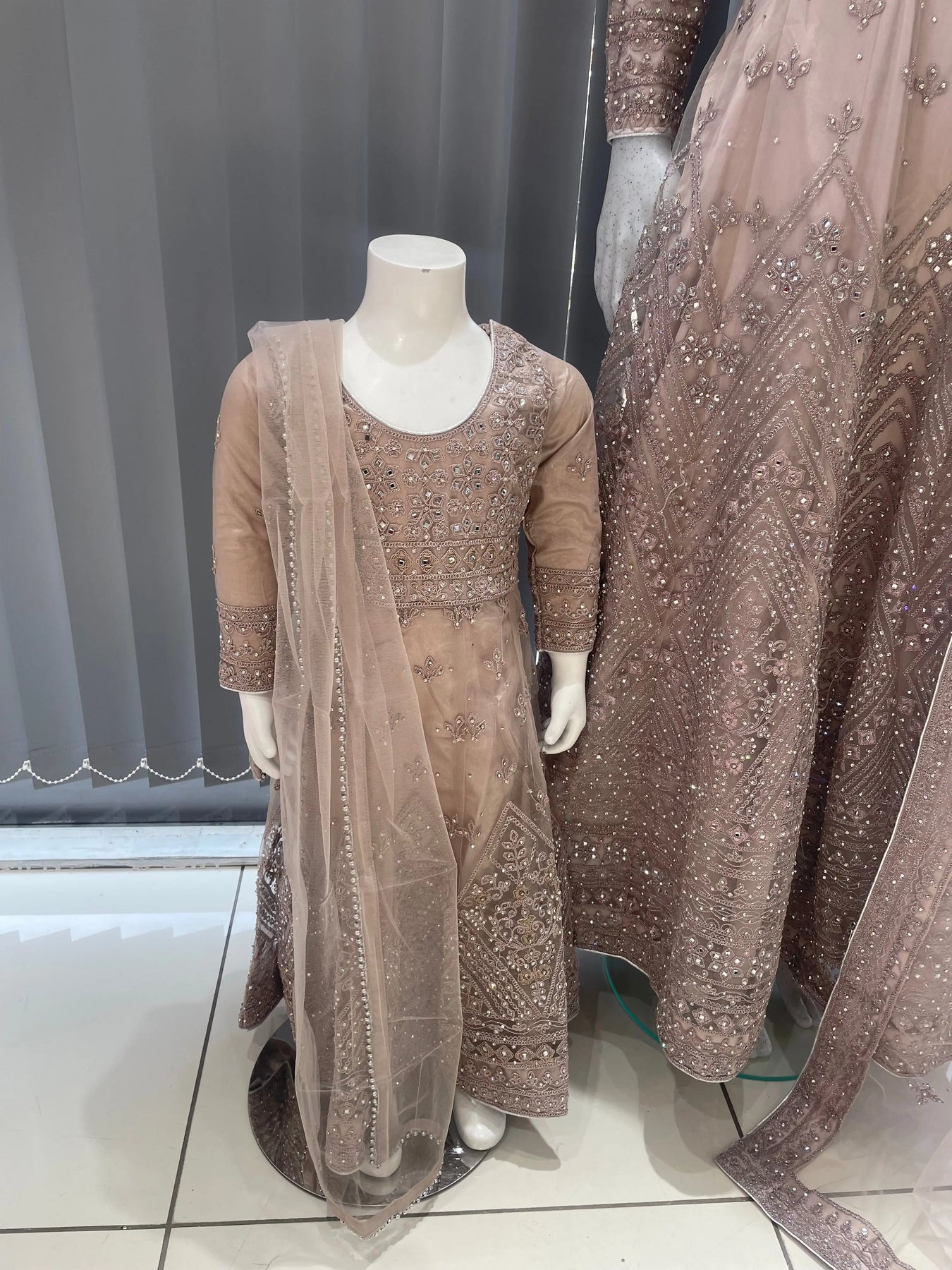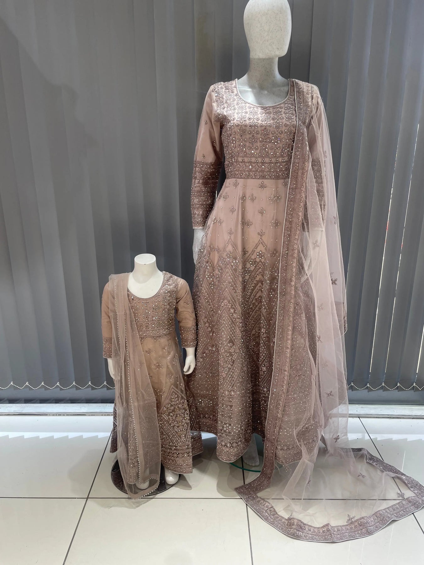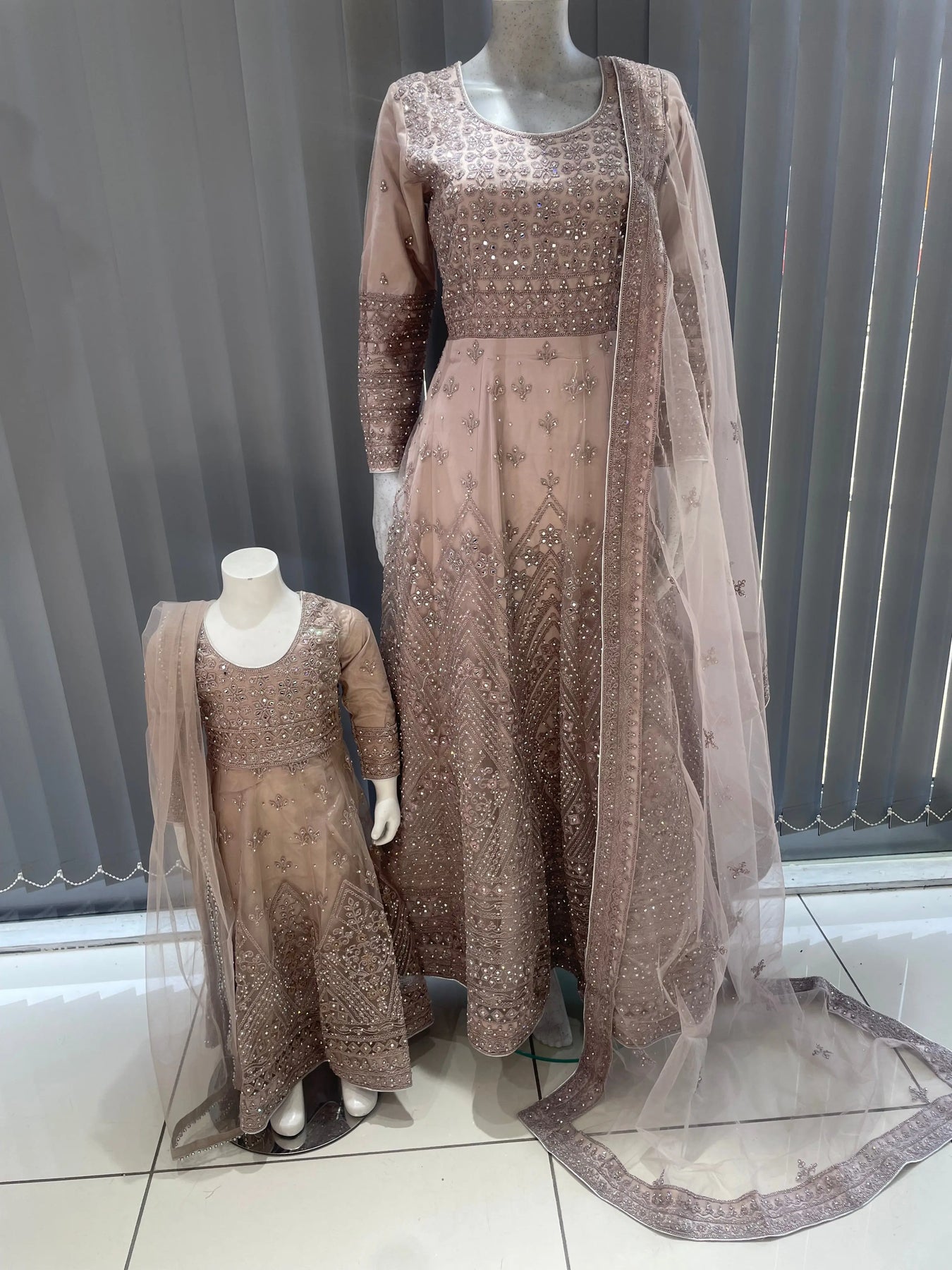 ASHA | Embroidered Net Mother & Daughter Ready To Wear Dusty Pink | AS73