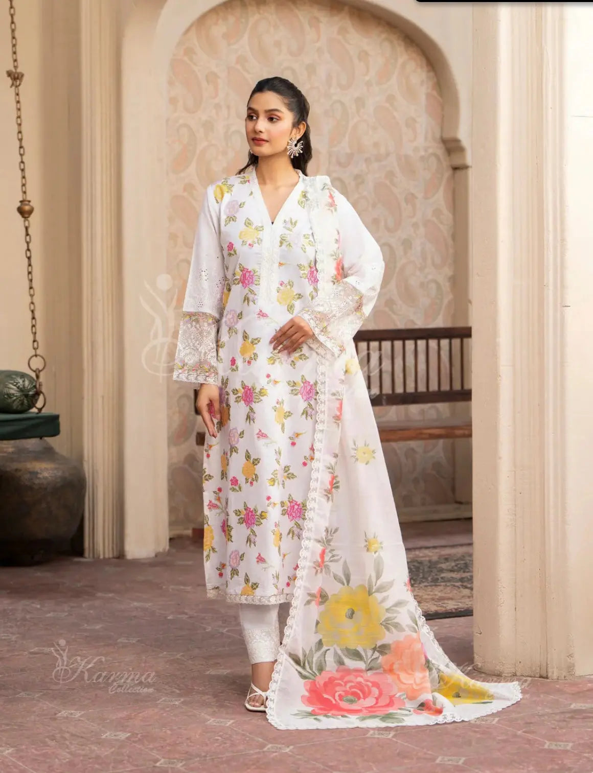 KARMA ‘Kayseria Vol 1’ | Embroidered Cotton Readymade | KC-1413 (White)