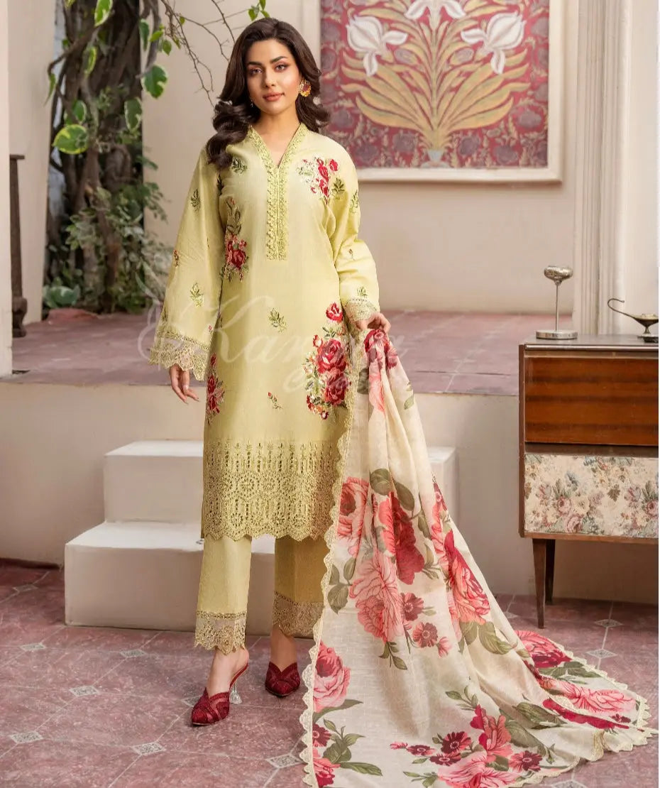 KARMA ‘Kayseria Vol 1’ | Embroidered Cotton Readymade | KC-1418 (Sandy Green)