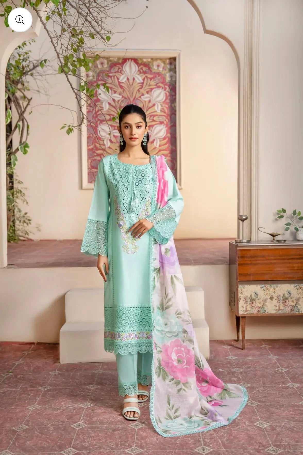 Brighten up your wardrobe with this stunning cotton dress, a perfect blend of elegance and comfort. Featuring intricate embroidery and delicate cutwork on the neckline and hem, this outfit exudes sophistication. The floral motifs and tassel detailing add a graceful charm, making it ideal for festive gatherings and casual outings.