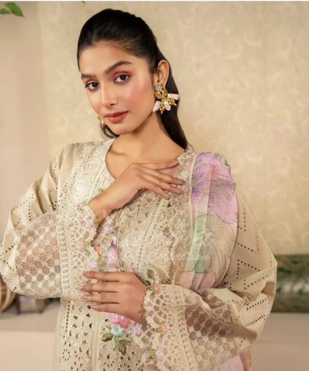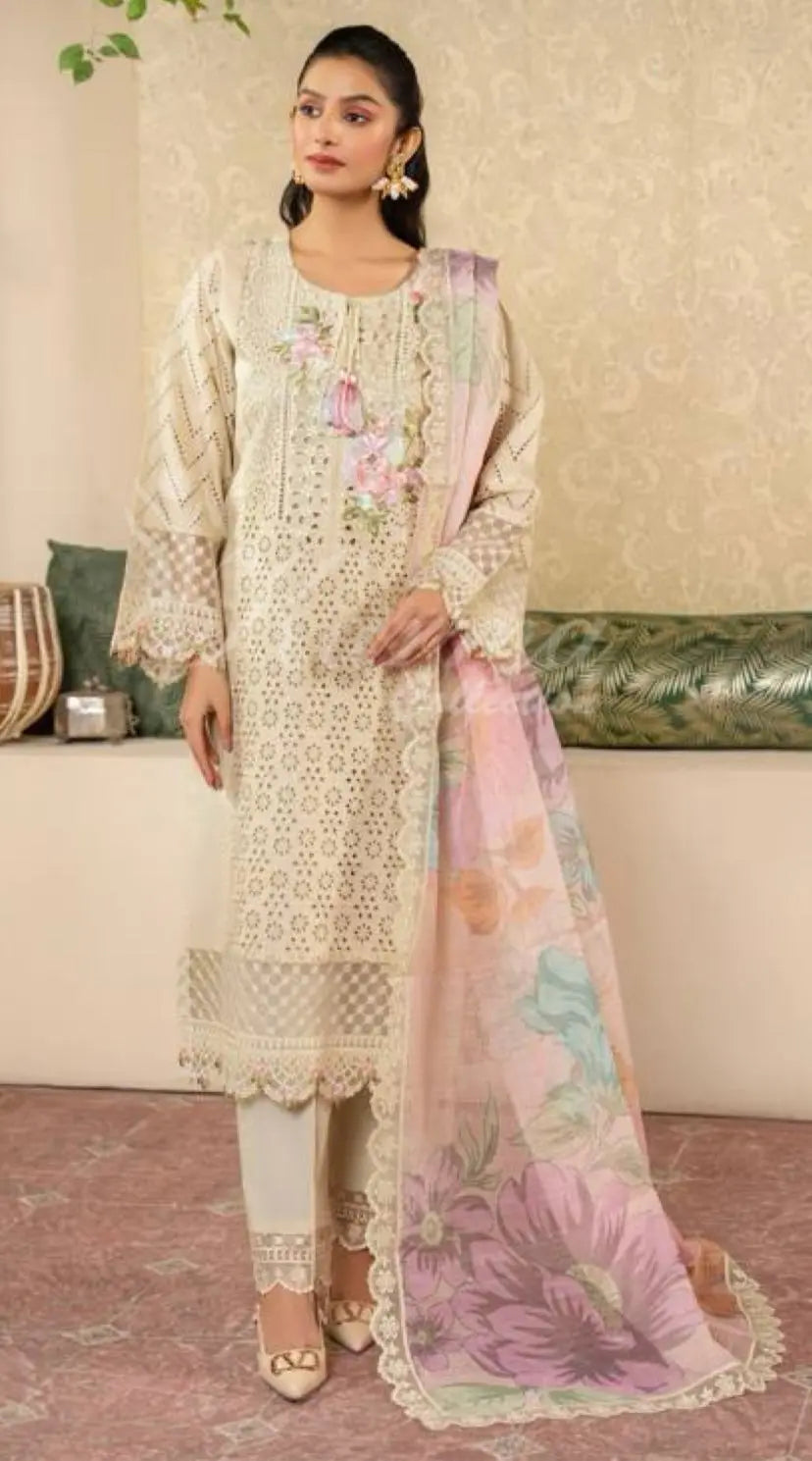 KARMA ‘Kayseria Vol 2’ | Embroidered Cotton Readymade | KC-1421 (Cream)