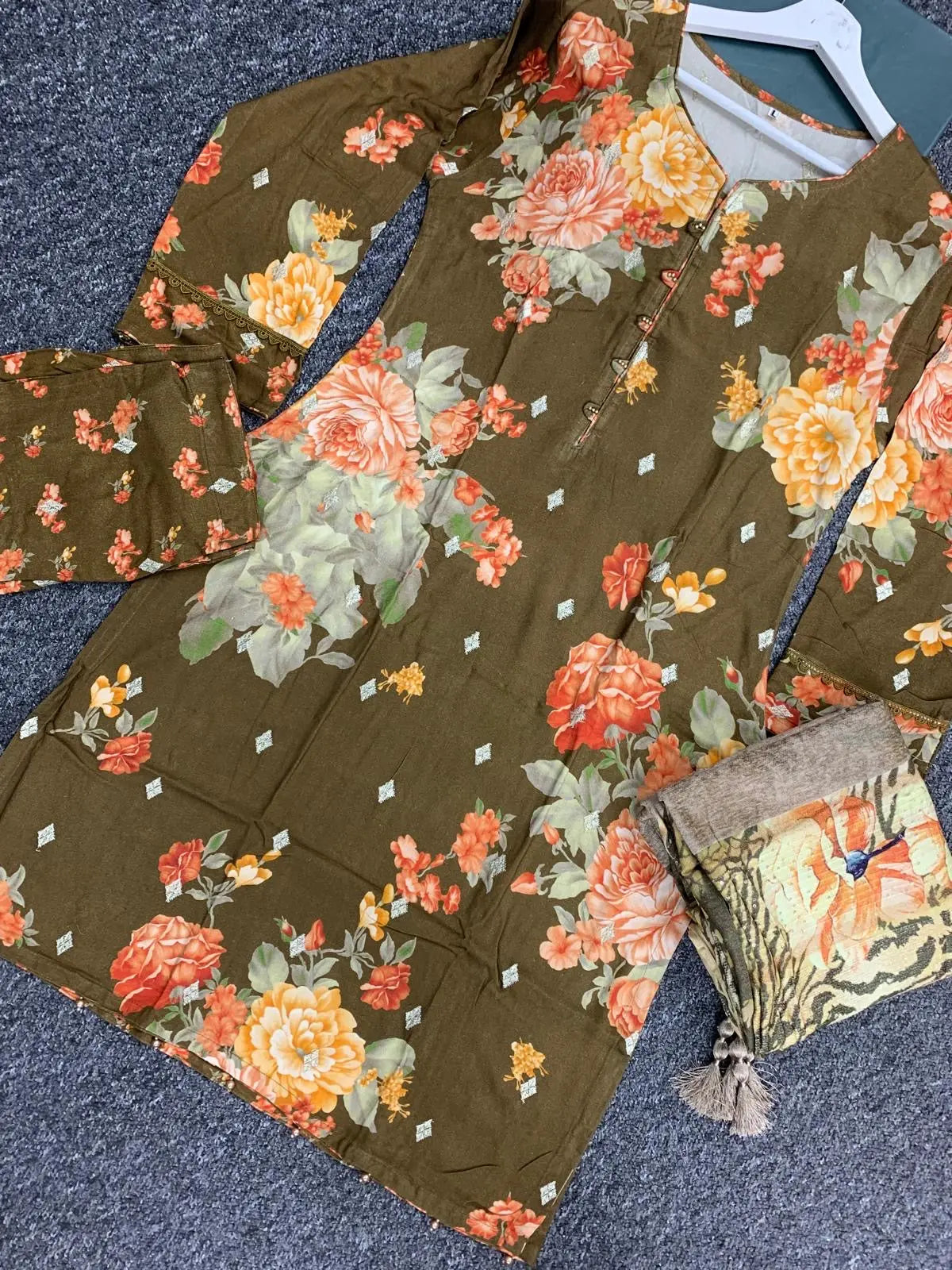 Printed Linen 3pc Readymade Traditional Womenswear | NIL081