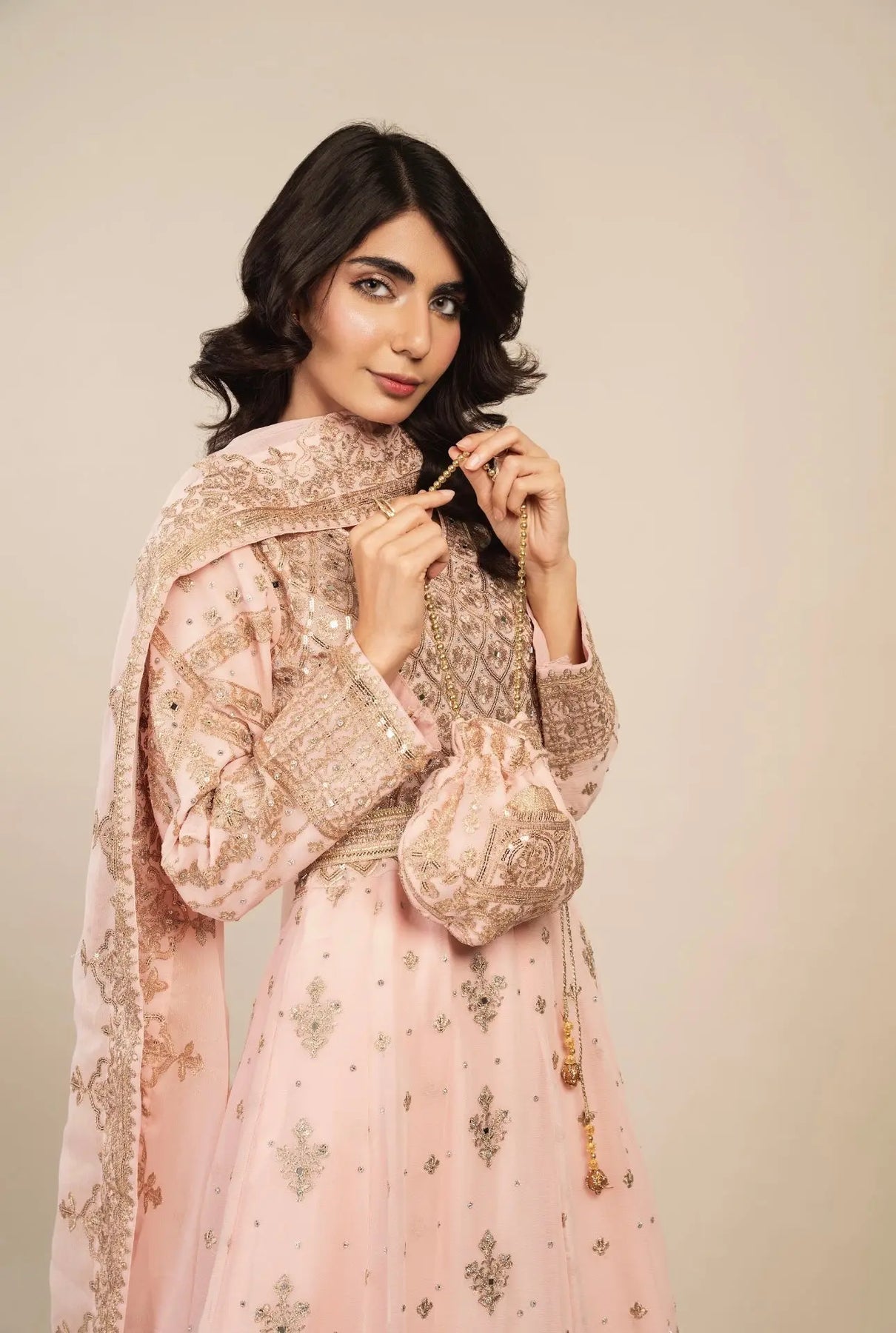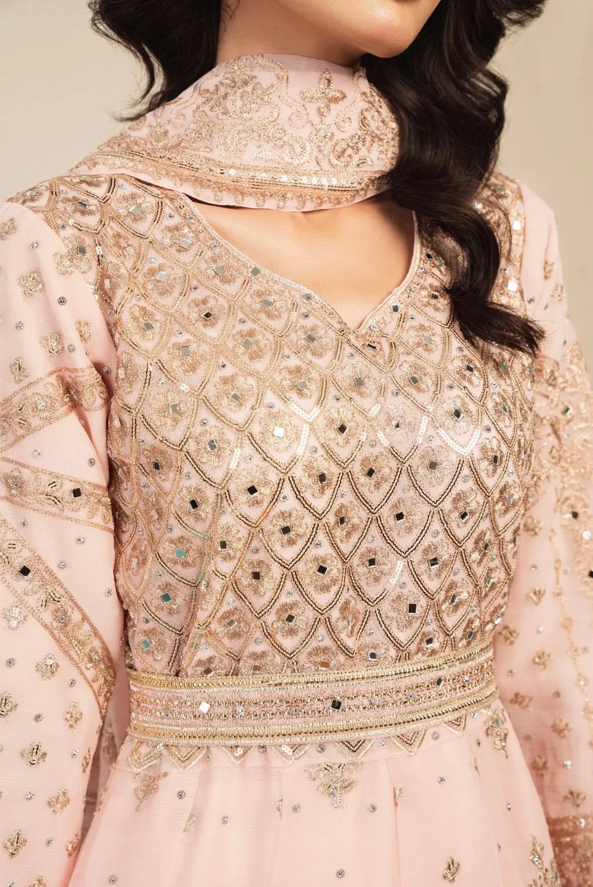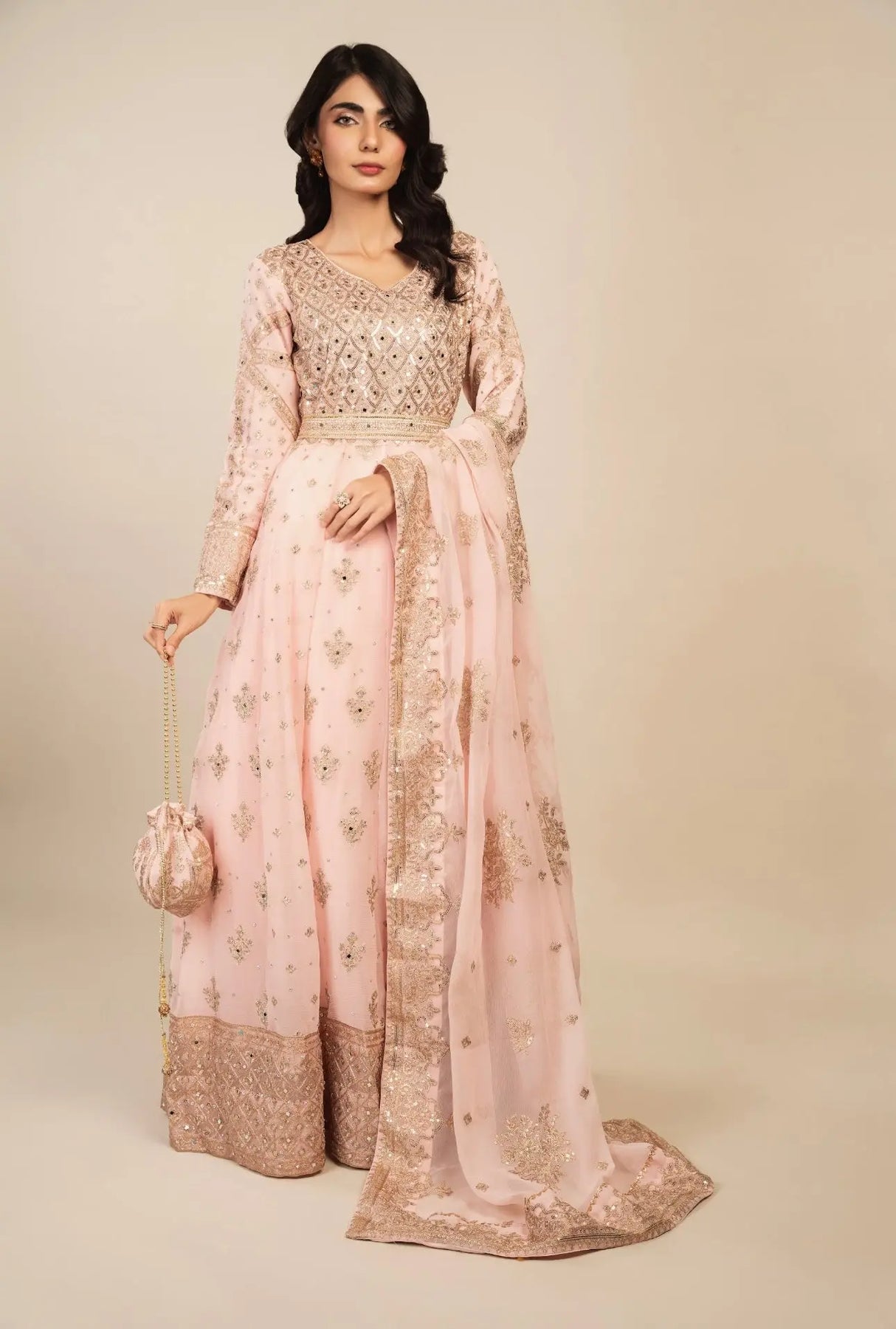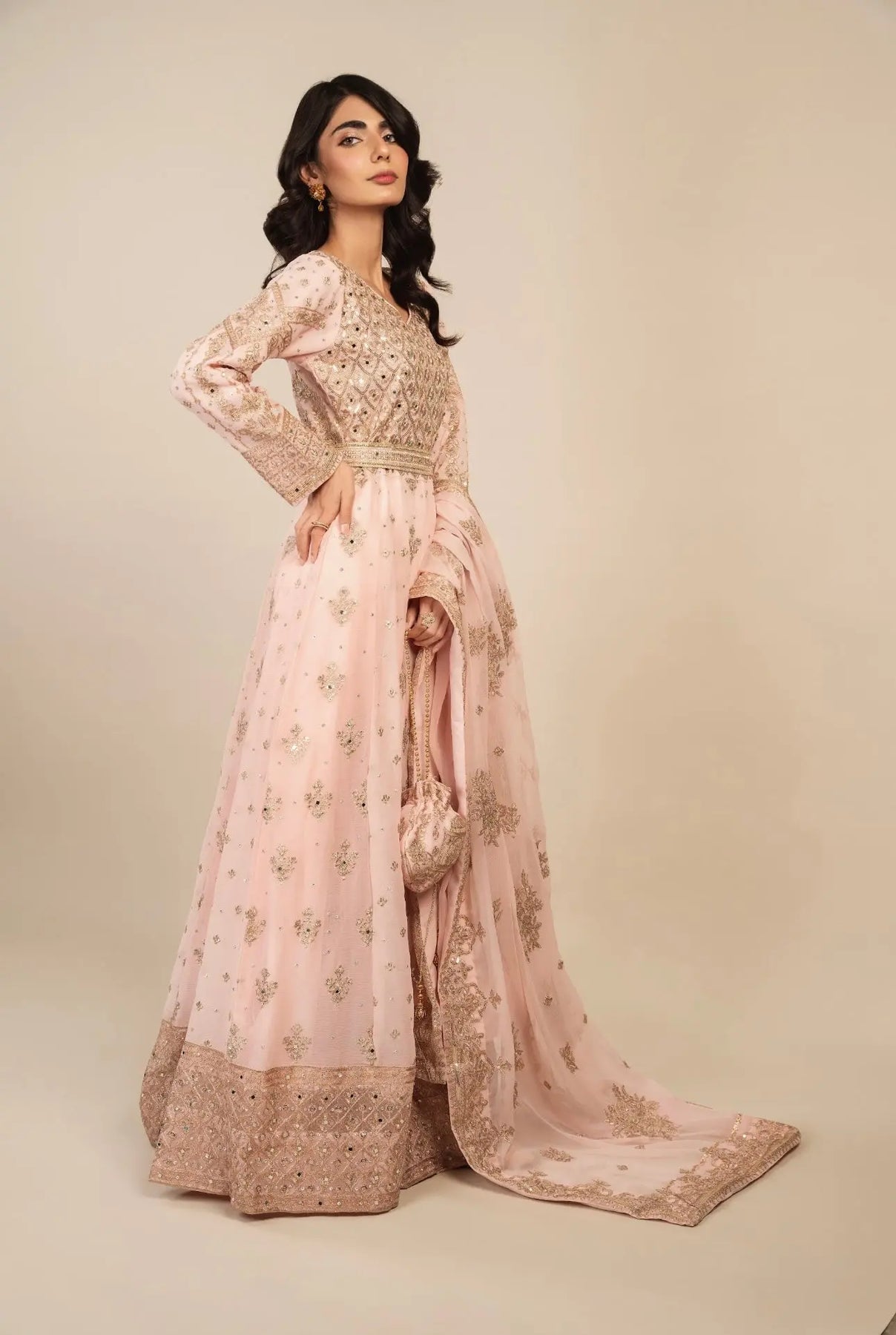 SIMRANS ‘Aura’ | Embroidered Chiffon Maxi Readymade | SM547 (Peach)