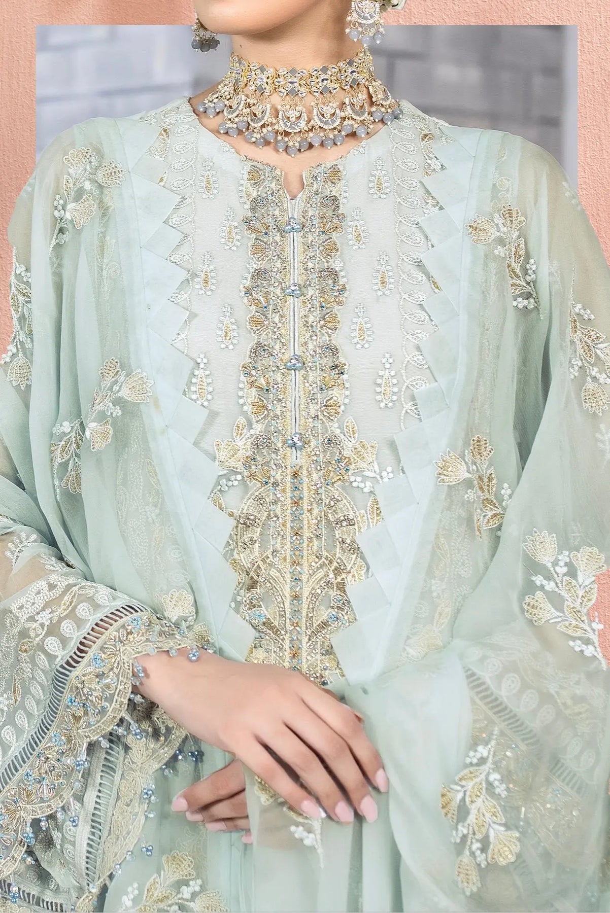 A Stunning Embroidered Chiffon Article with a Chiffon Dupatta. This is perfect for any weddings or other upcoming functions!