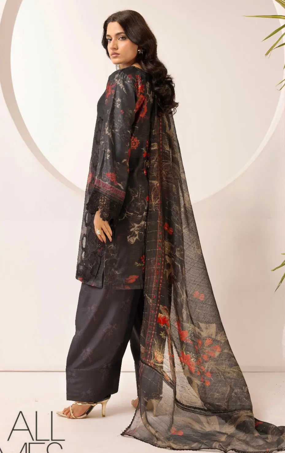 Crafted for the modern muse, this ensemble brings together the timeless charm of traditional embroidery with the vibrance of digital artistry.