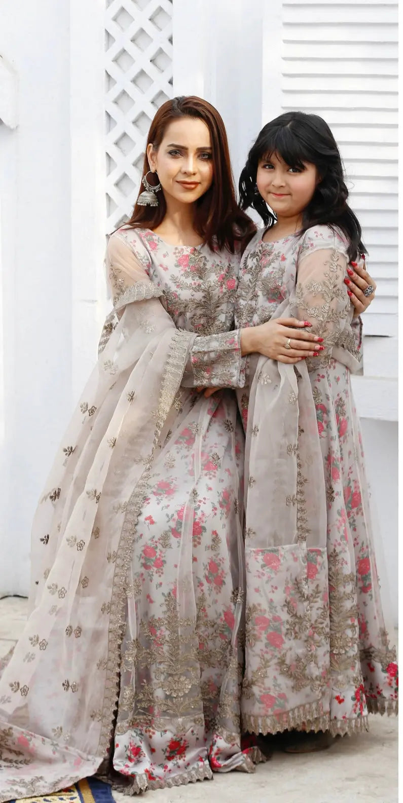 Mother & Daughter Embroidered Net Kameez, Dupatta & Silk Trouser Set ✨👗👩👧