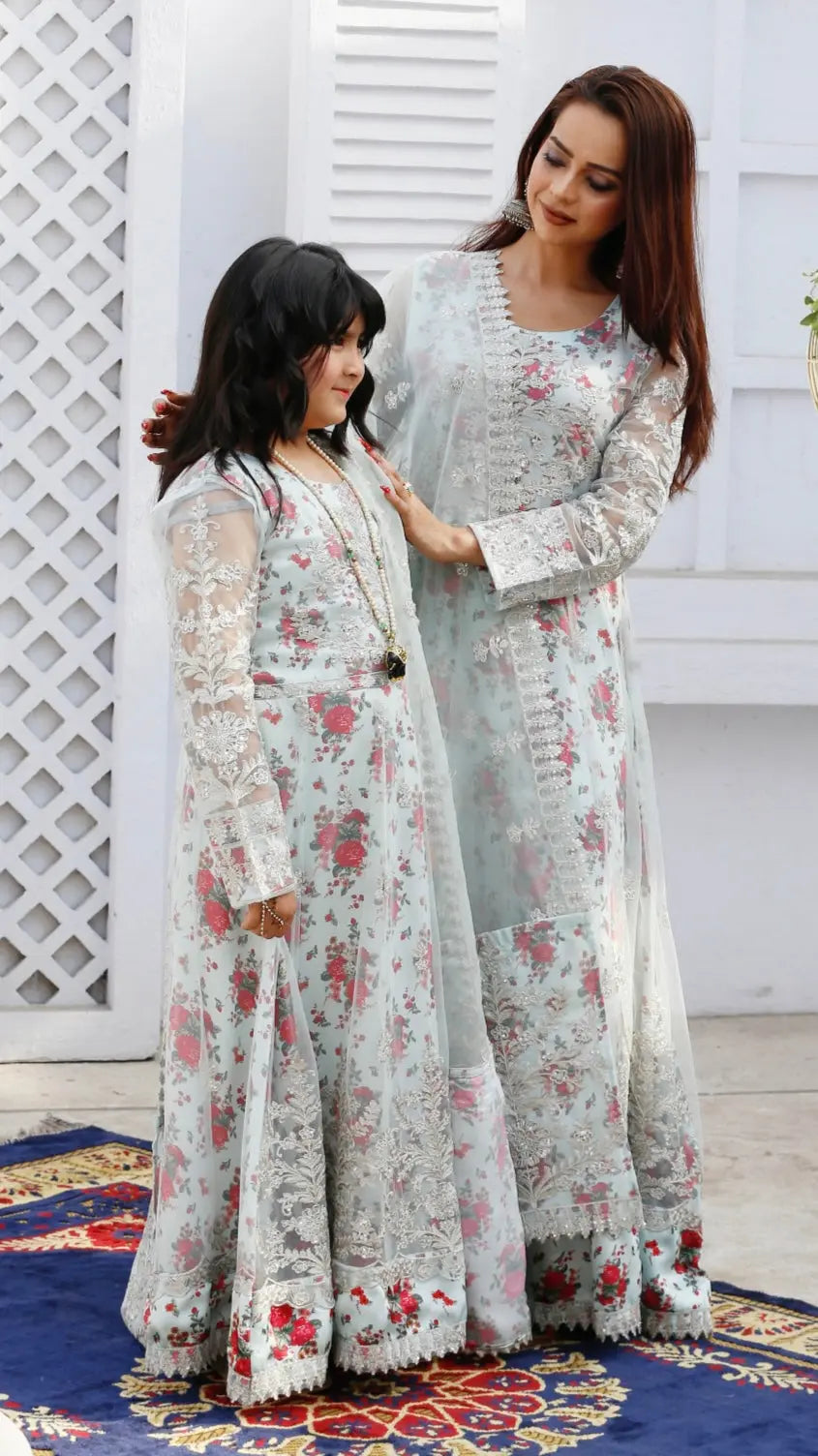 SOFIA KHAS | Embroidered Net Mother & Daughter Readymade | JS164 (Mint Green)