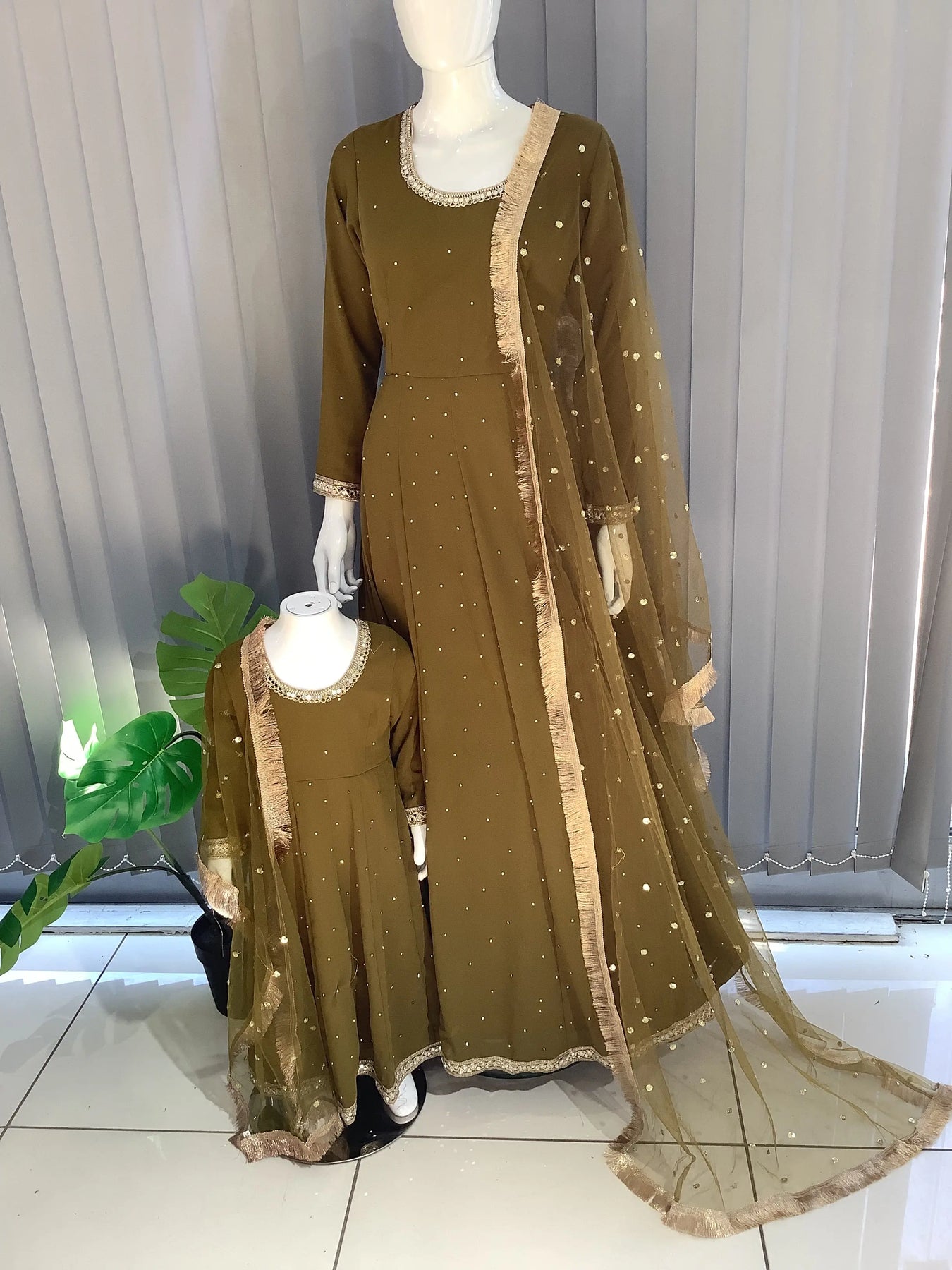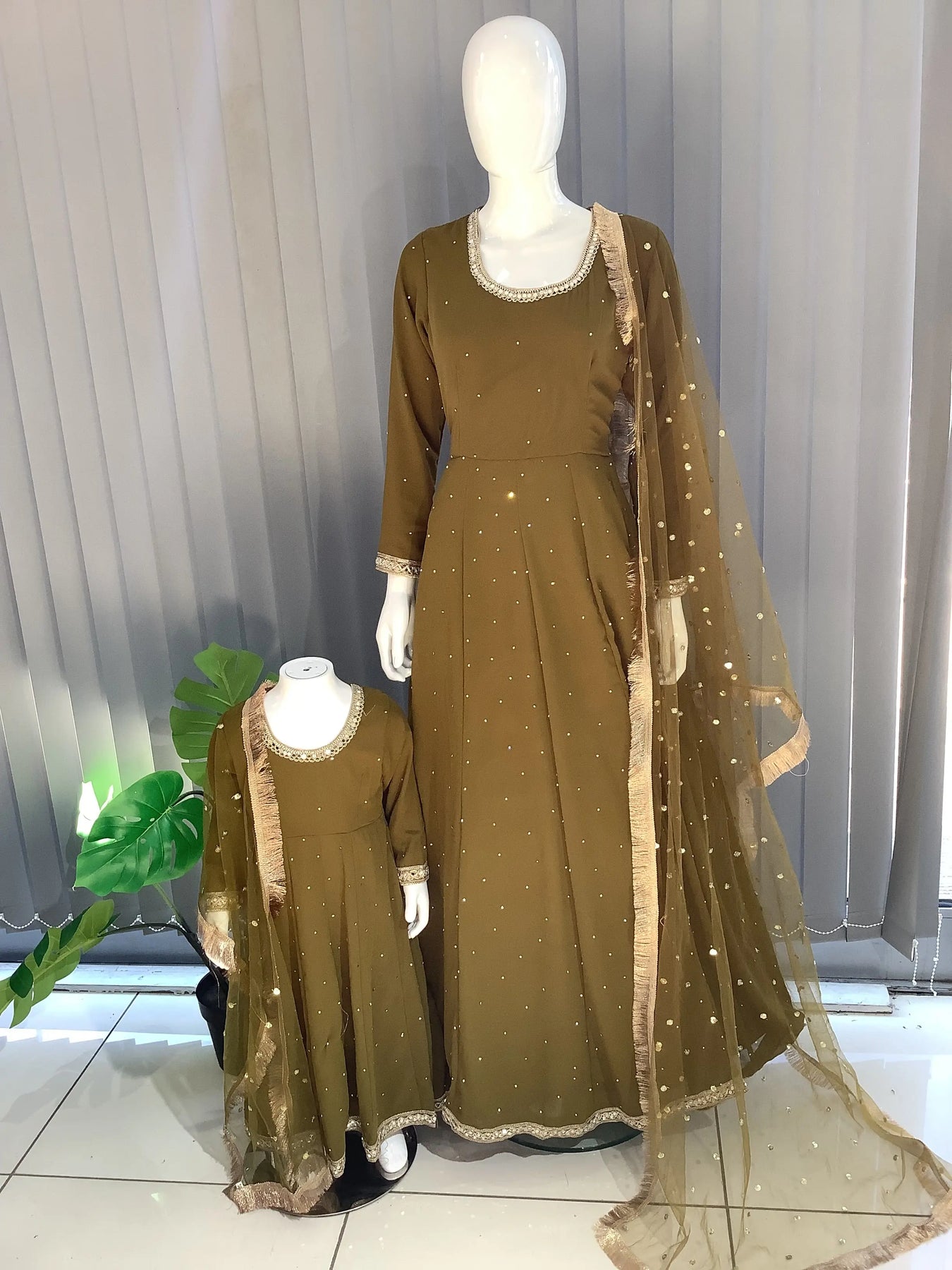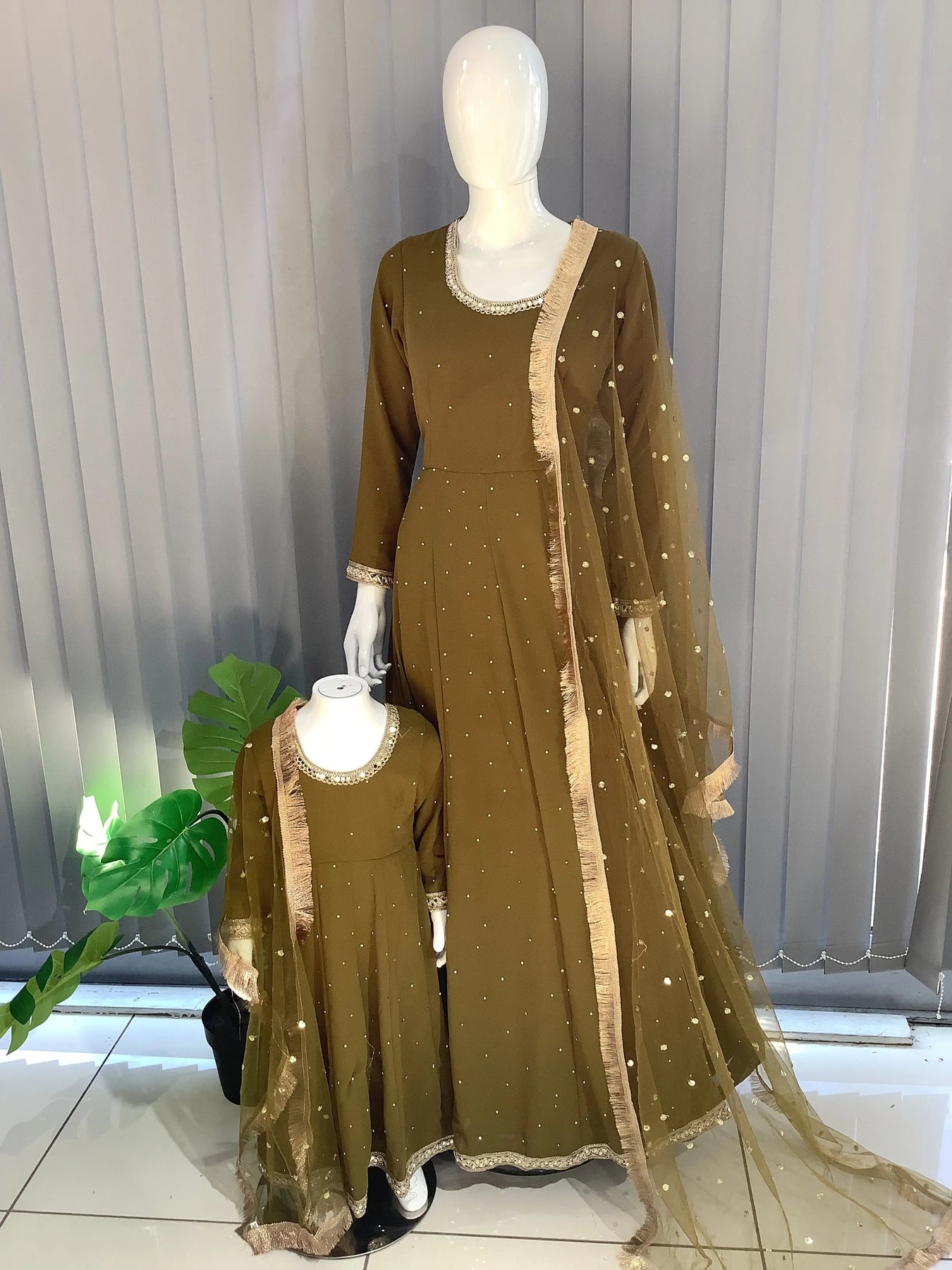 ASHA | Embroidered Chiffon Dress Mother & Daughter Readymade | AS63