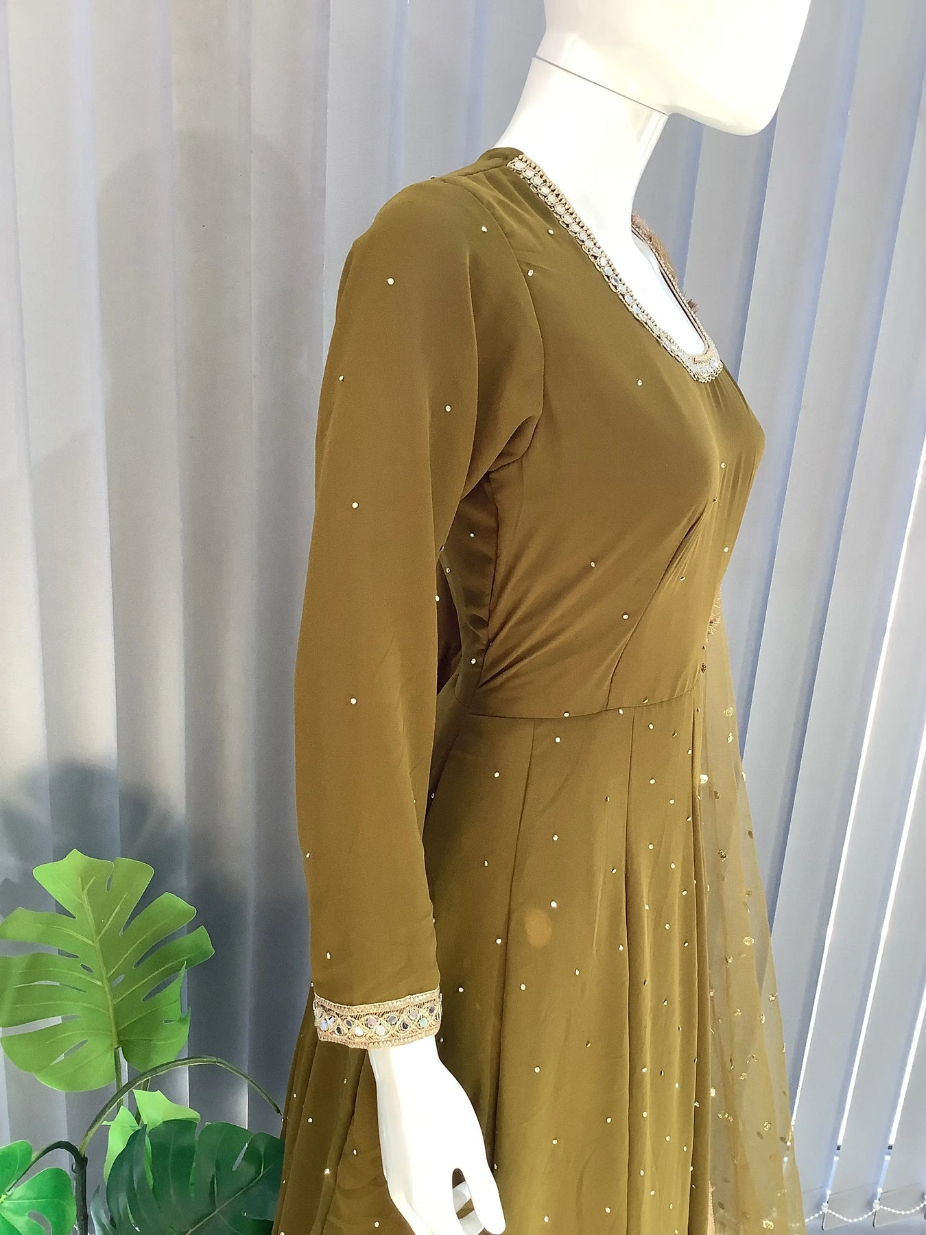 From time to time beading/ sequences may get displaced and this is not thought of as a fault but is due to the nature of the work. These articles of clothing should be worn with care.