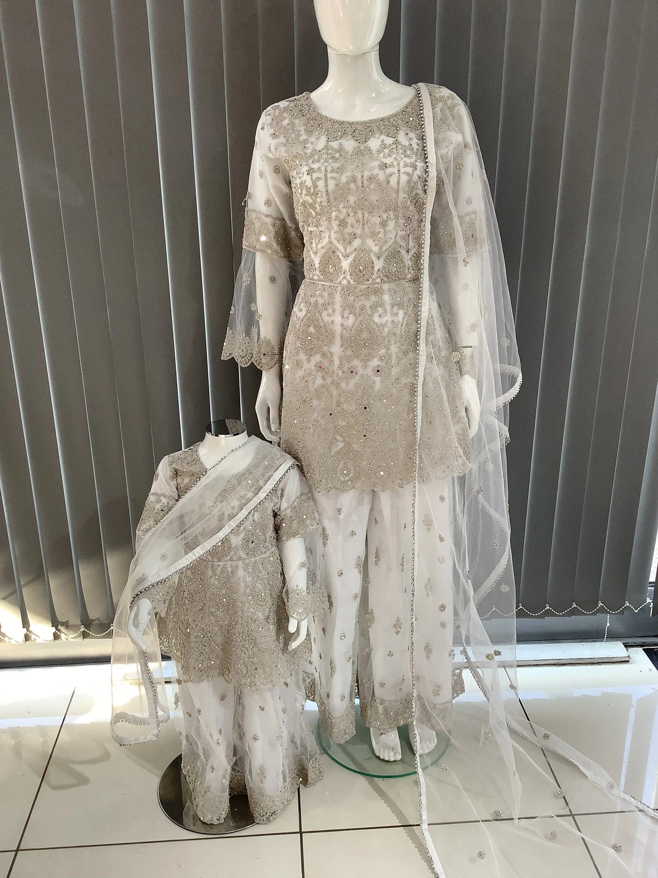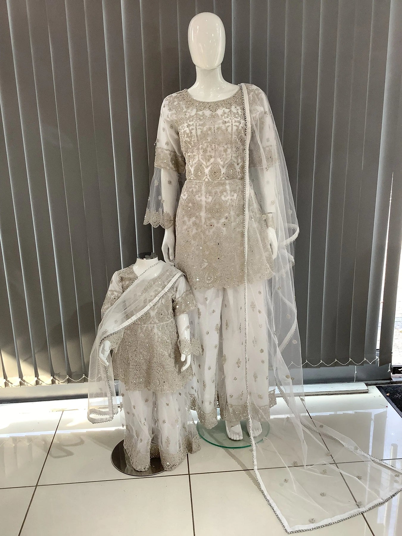 ASHA | Embroidered Hand Work Dress Mother & Daughter Ready To Wear White| AS70