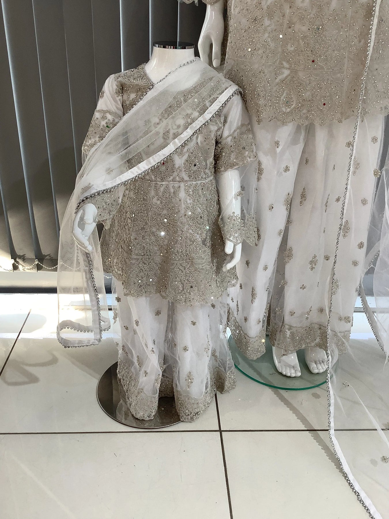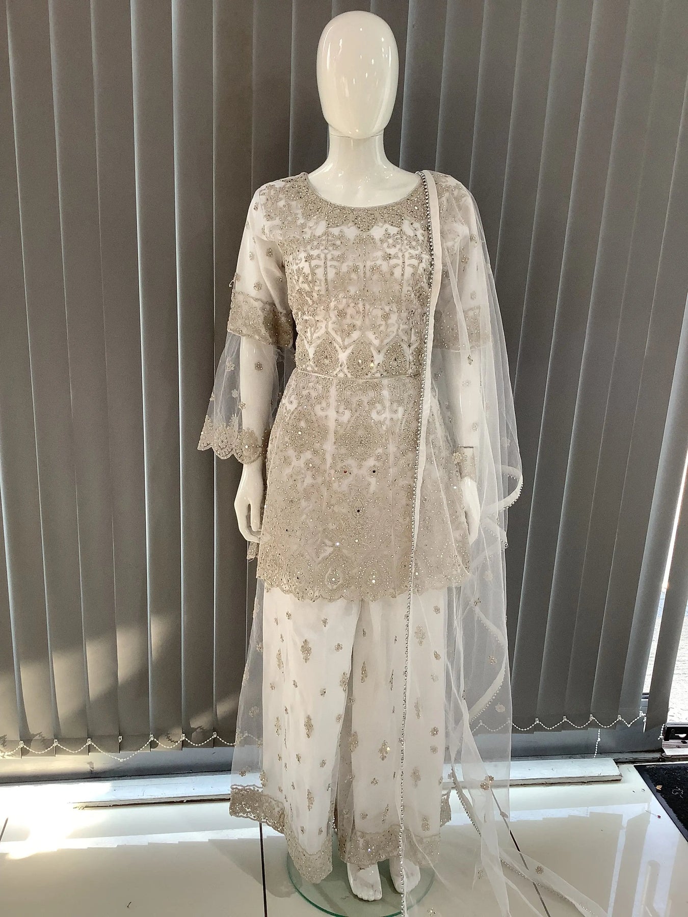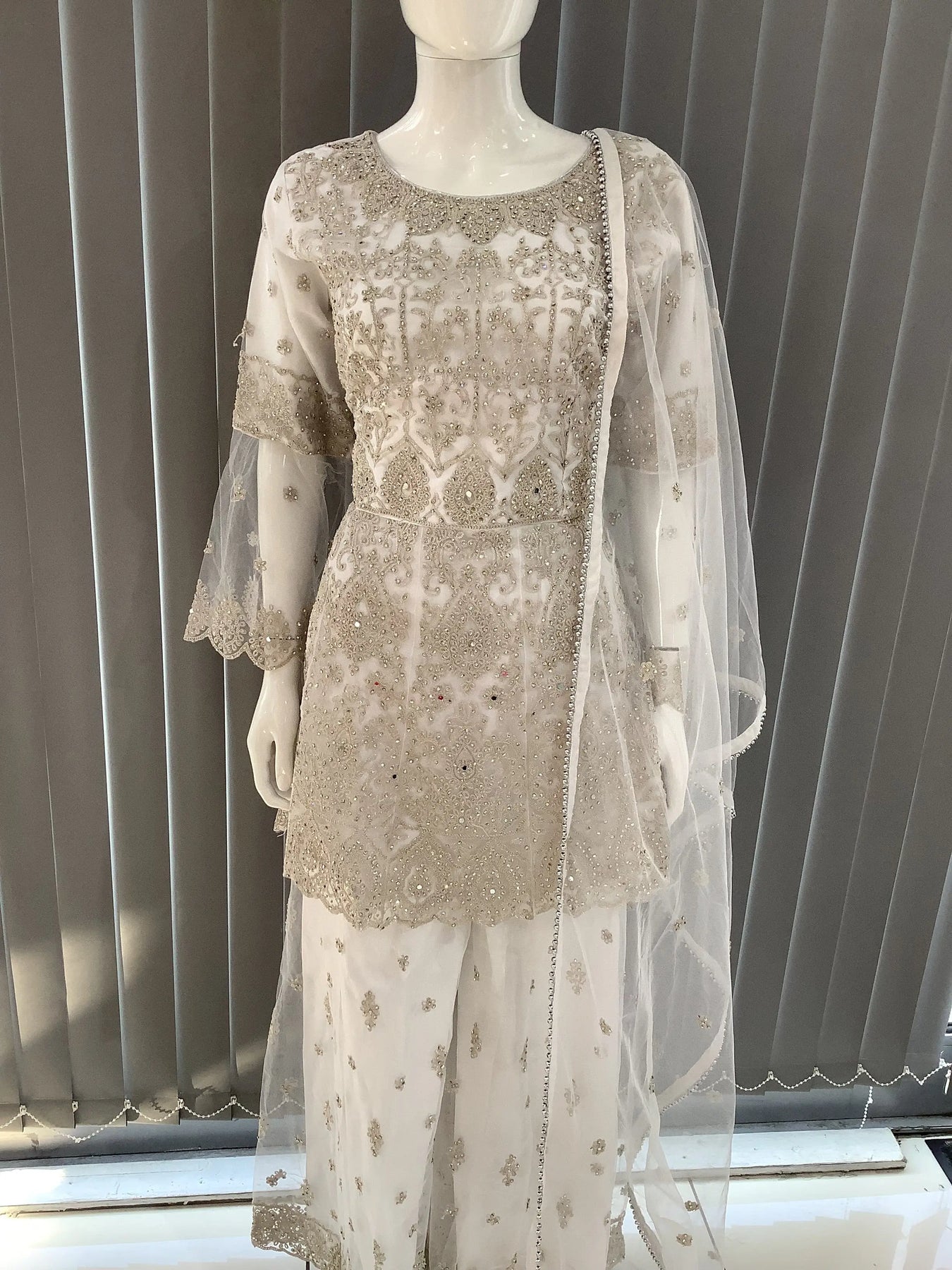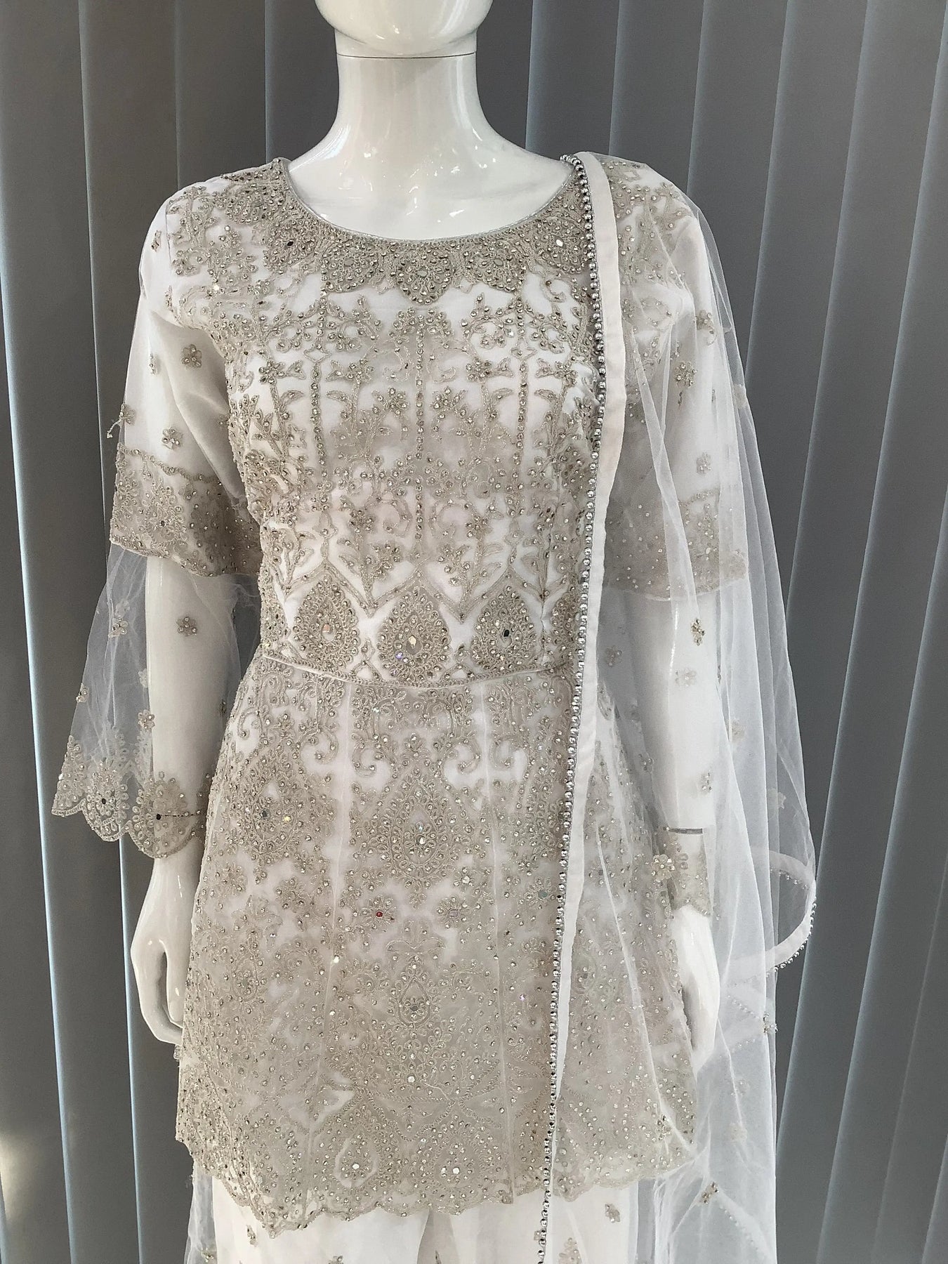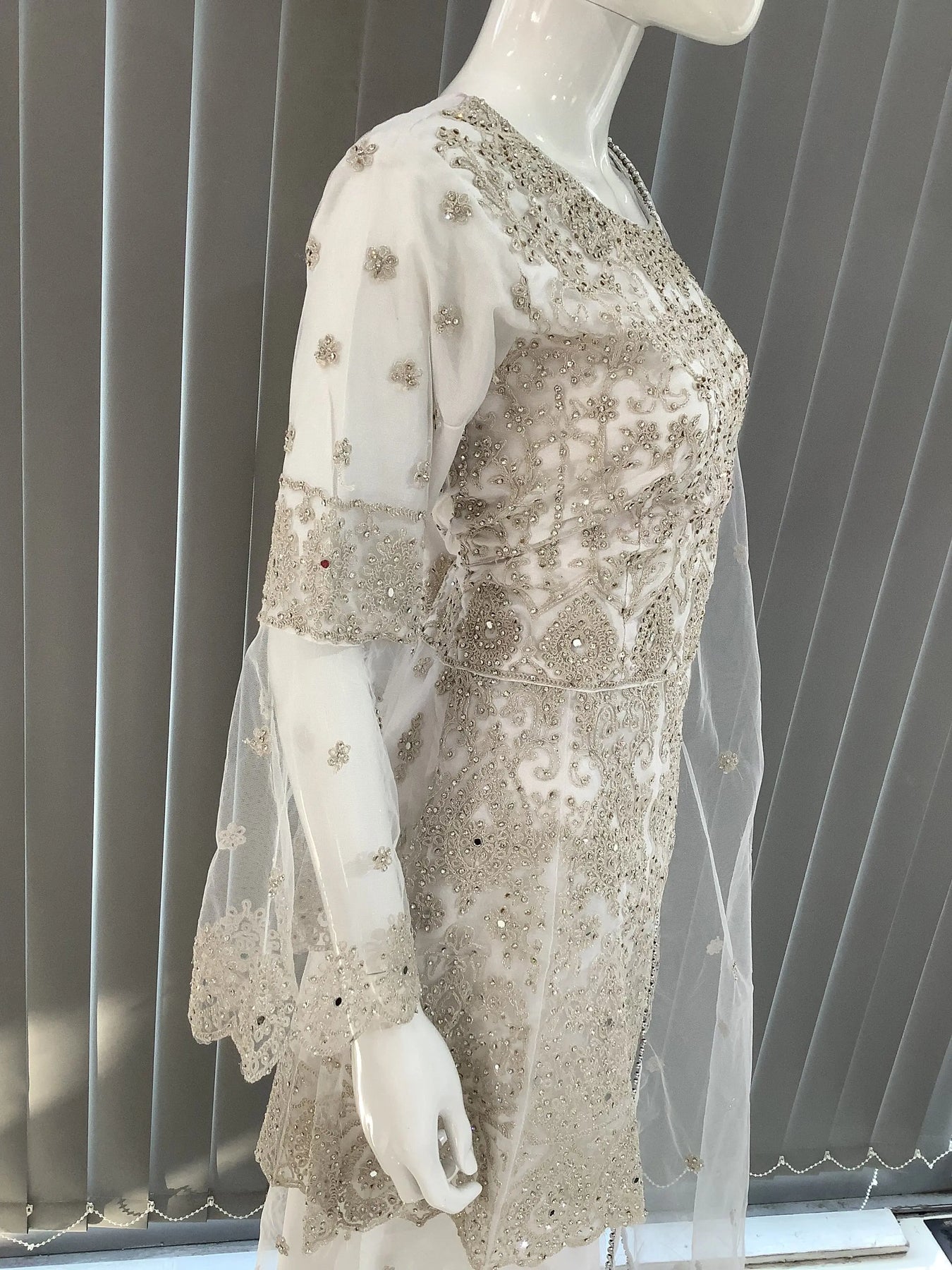 From time to time beading/ sequences may get displaced and this is not thought of as a fault but is due to the nature of the work. These articles of clothing should be worn with care.
