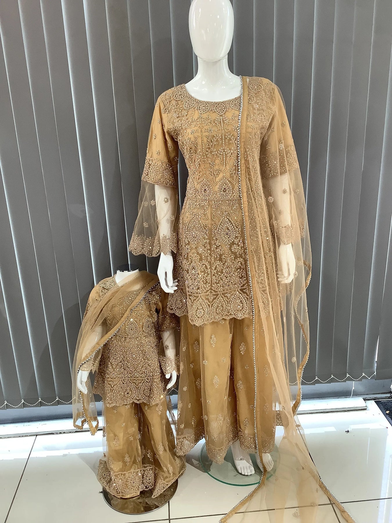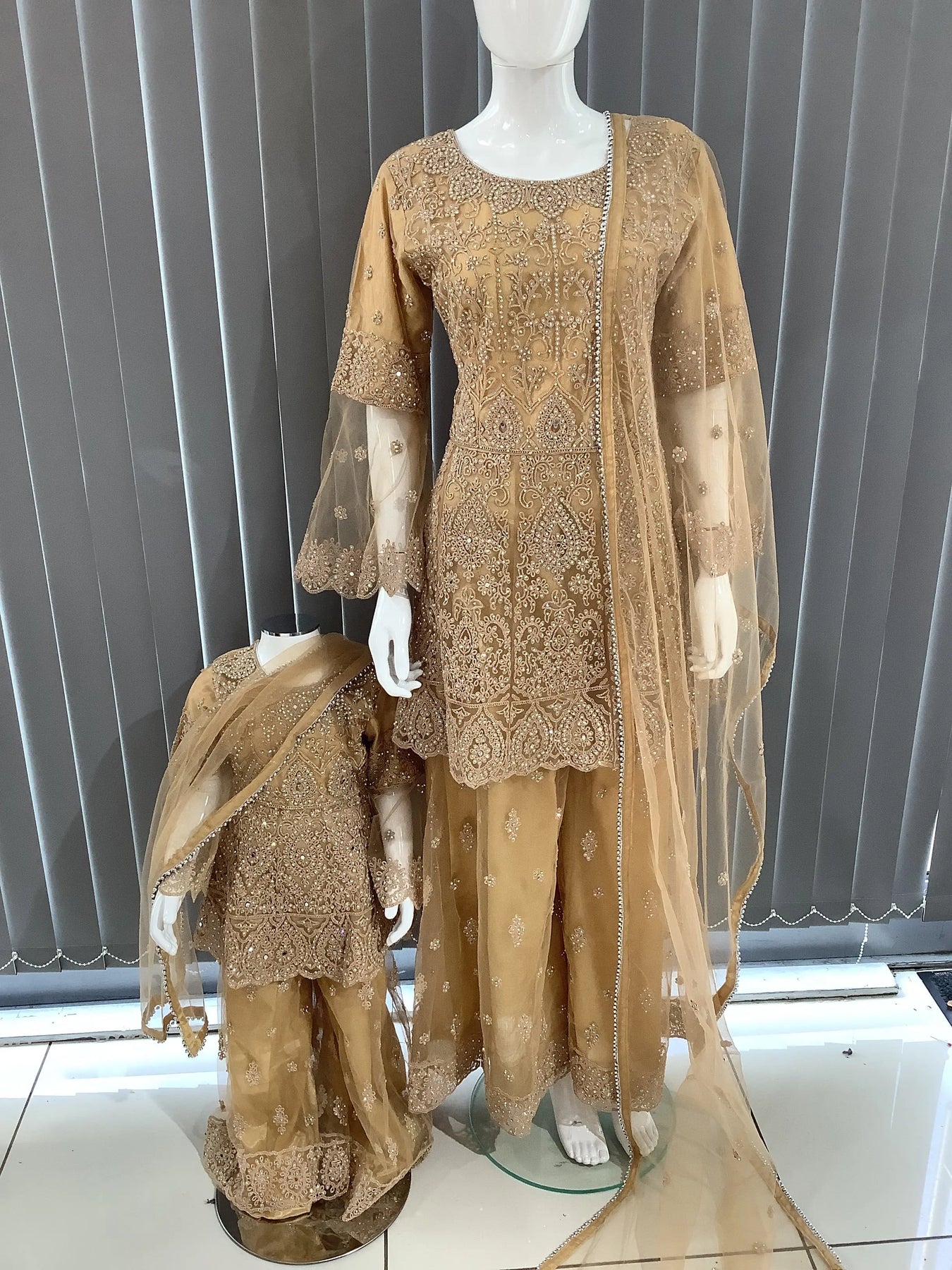 ASHA | Embroidered Hand Work Dress Mother & Daughter Ready To Wear Gold | AS70