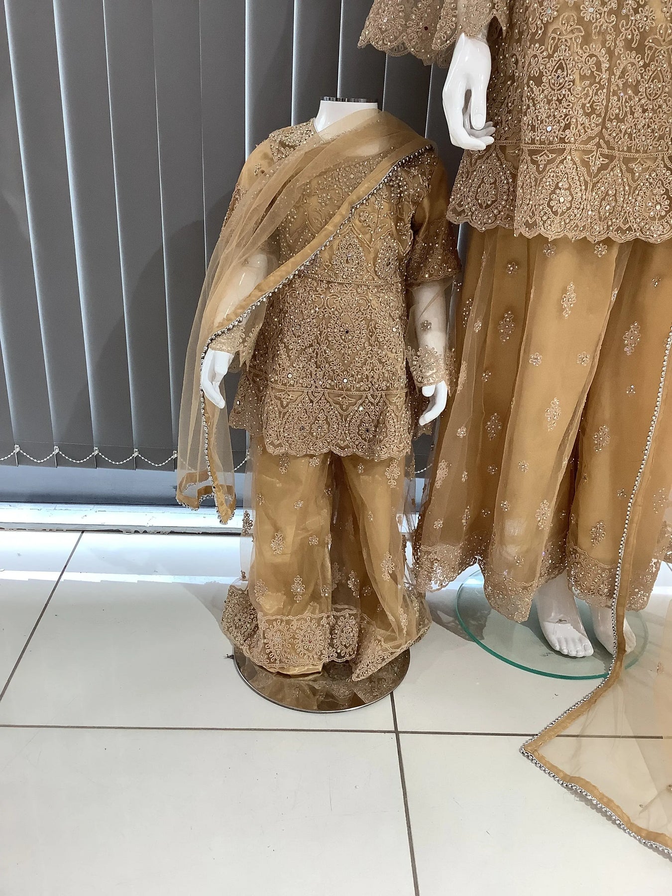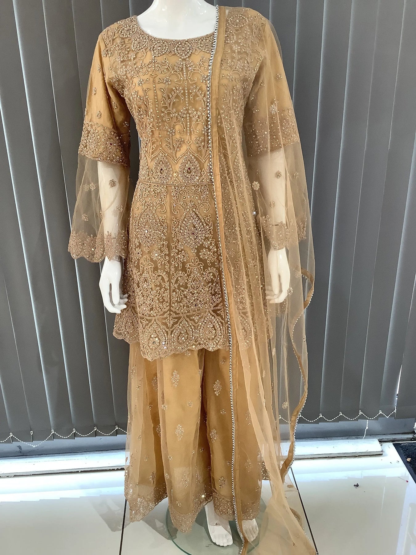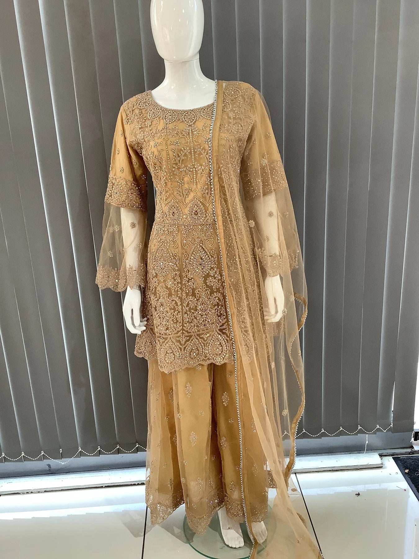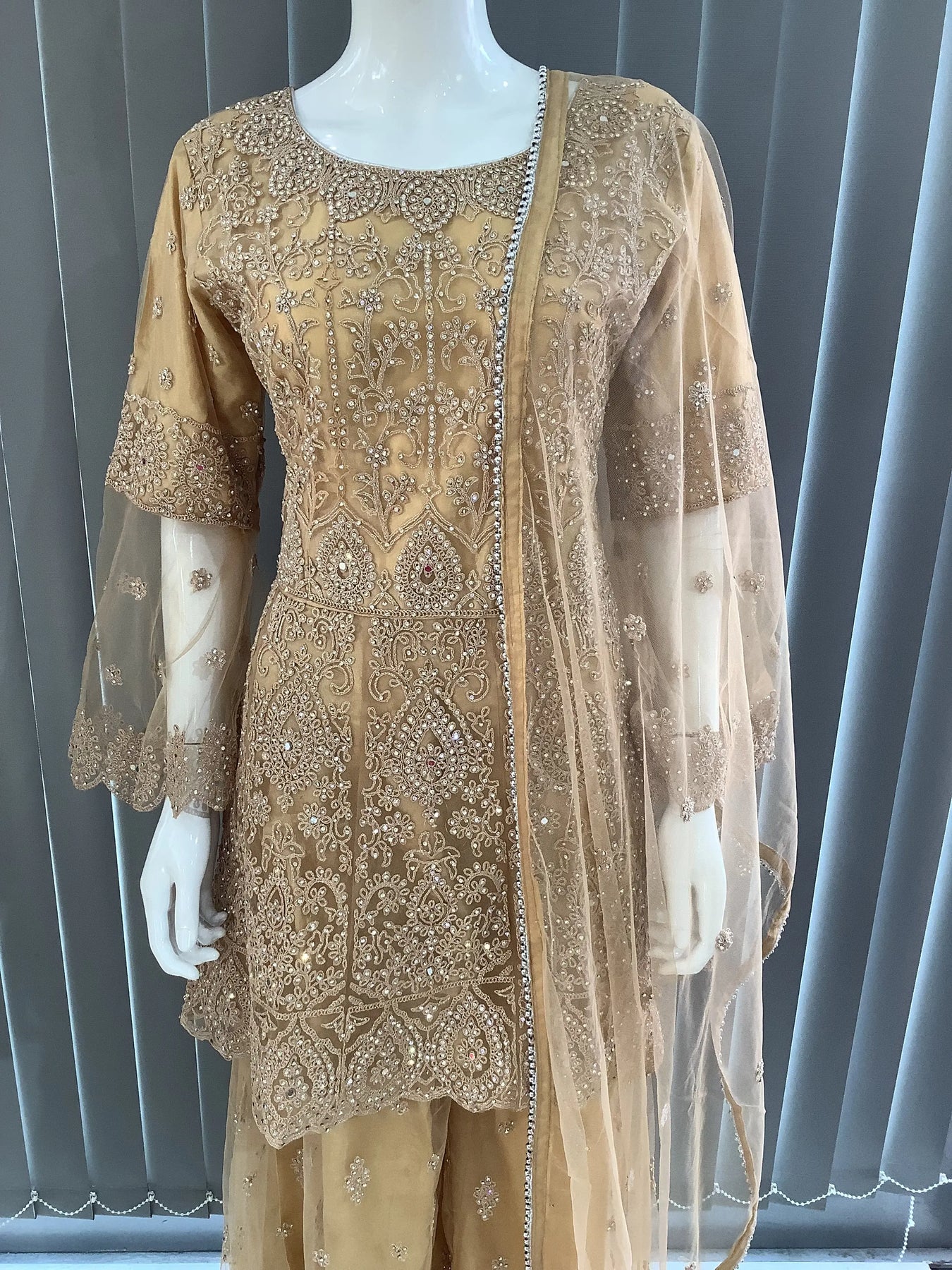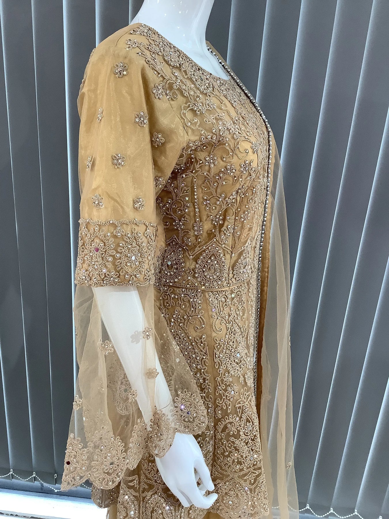 From time to time beading/ sequences may get displaced and this is not thought of as a fault but is due to the nature of the work. These articles of clothing should be worn with care.