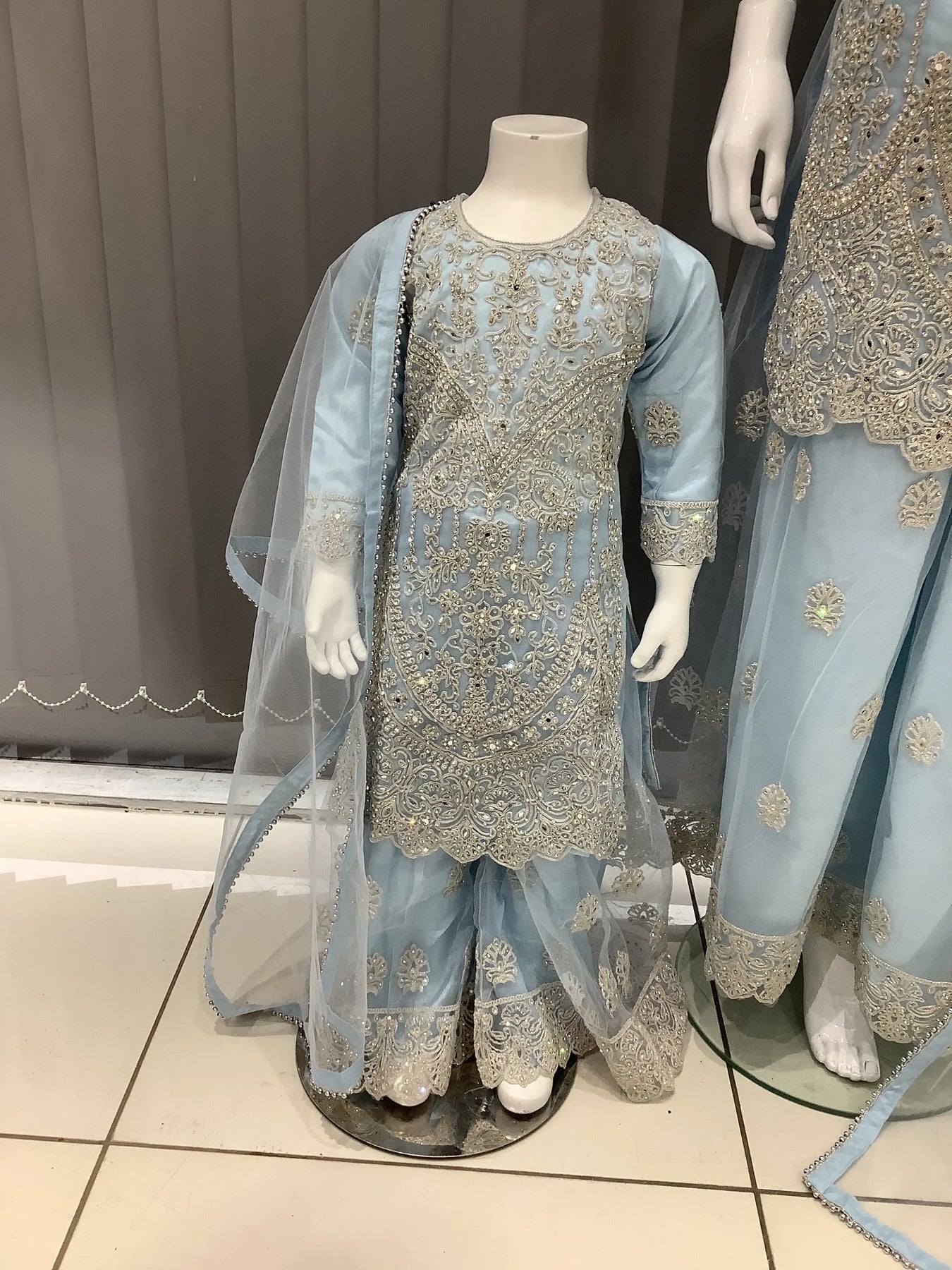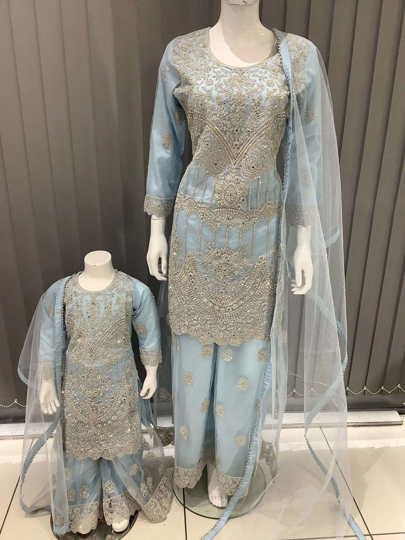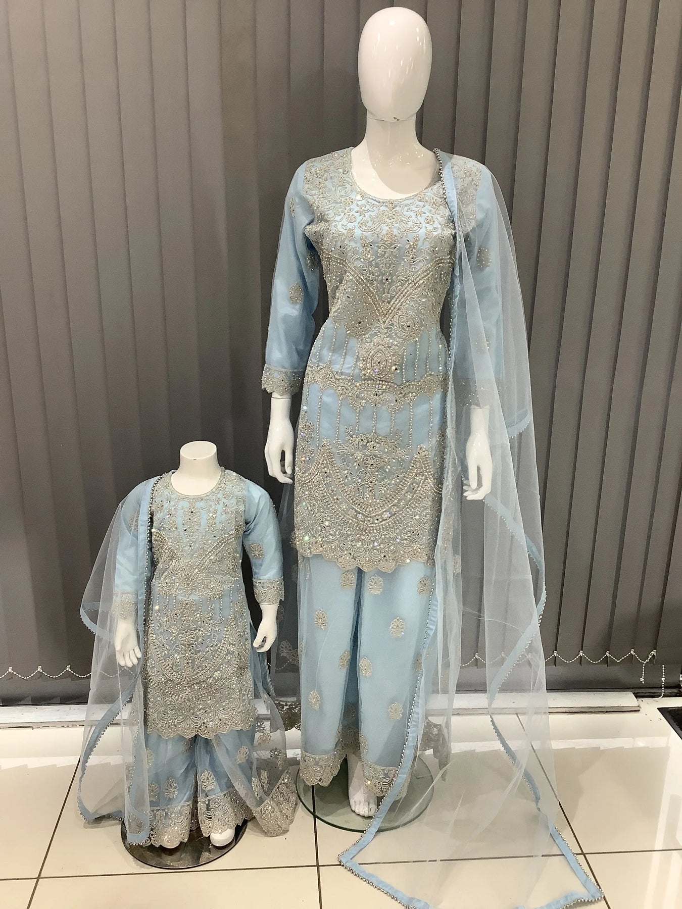 ASHA | Embroidered Net Mother & Daughter Ready To Wear Light Blue | AS74
