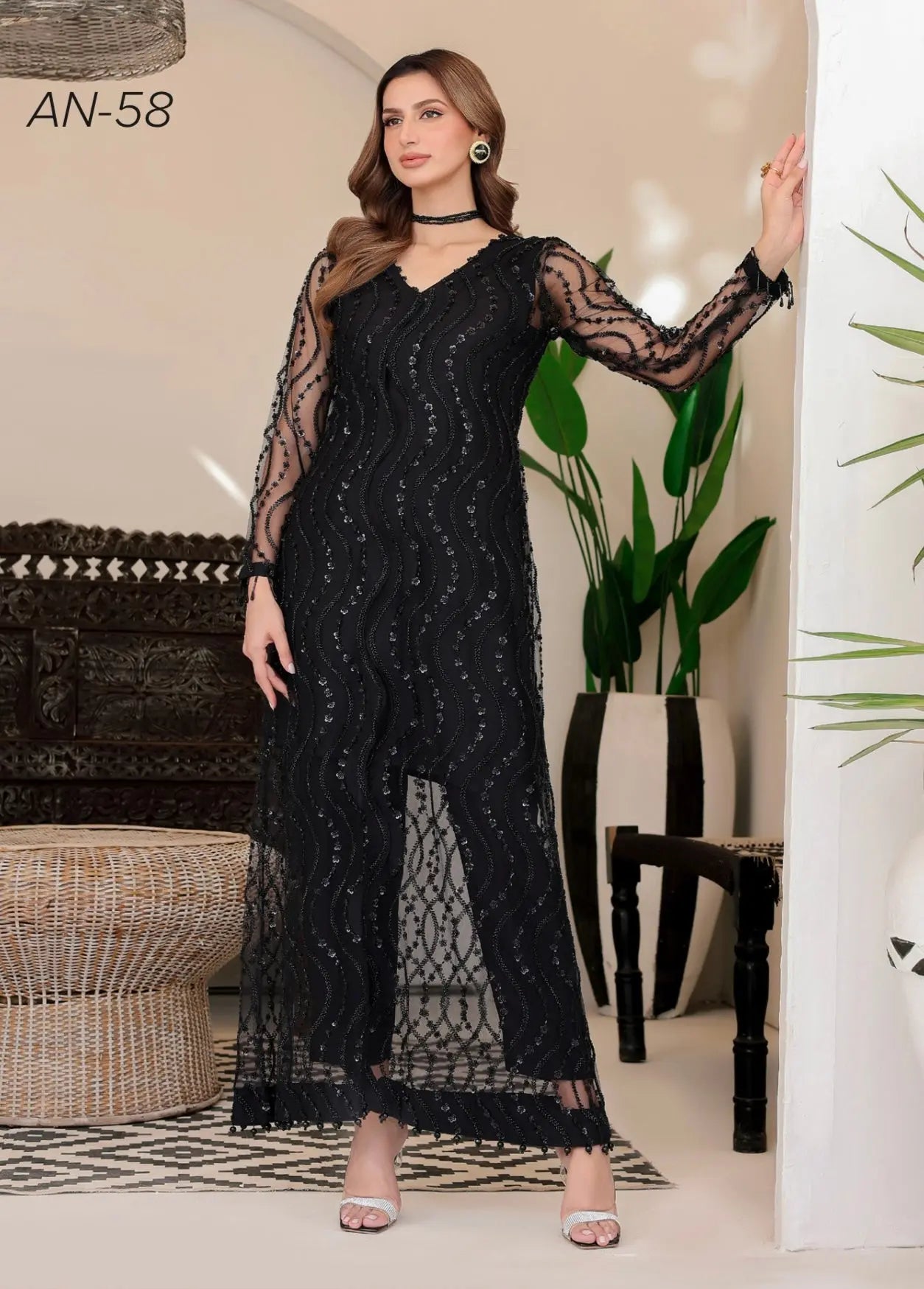 Introducing our stunning Net Sequin Front Open embroidered Gown! This exquisite gown features intricate cutdana detailing and pearl work.