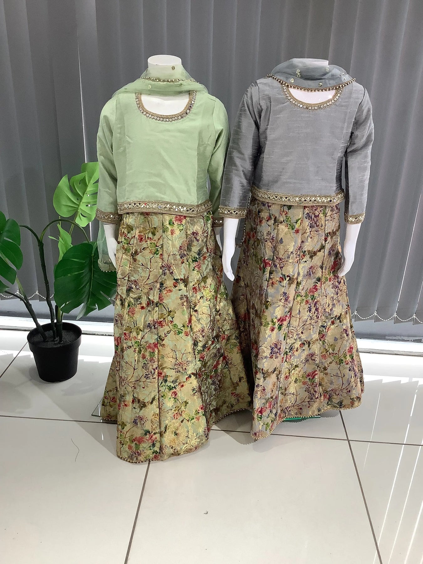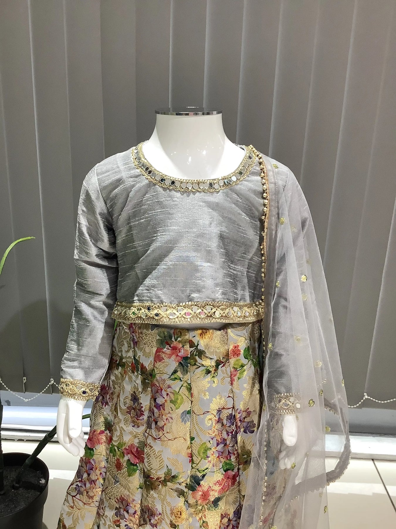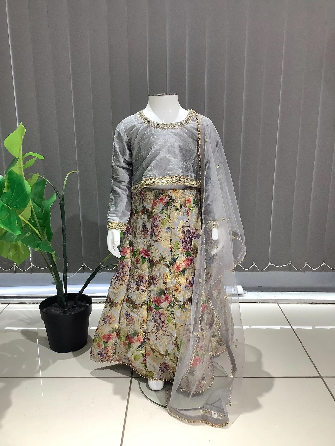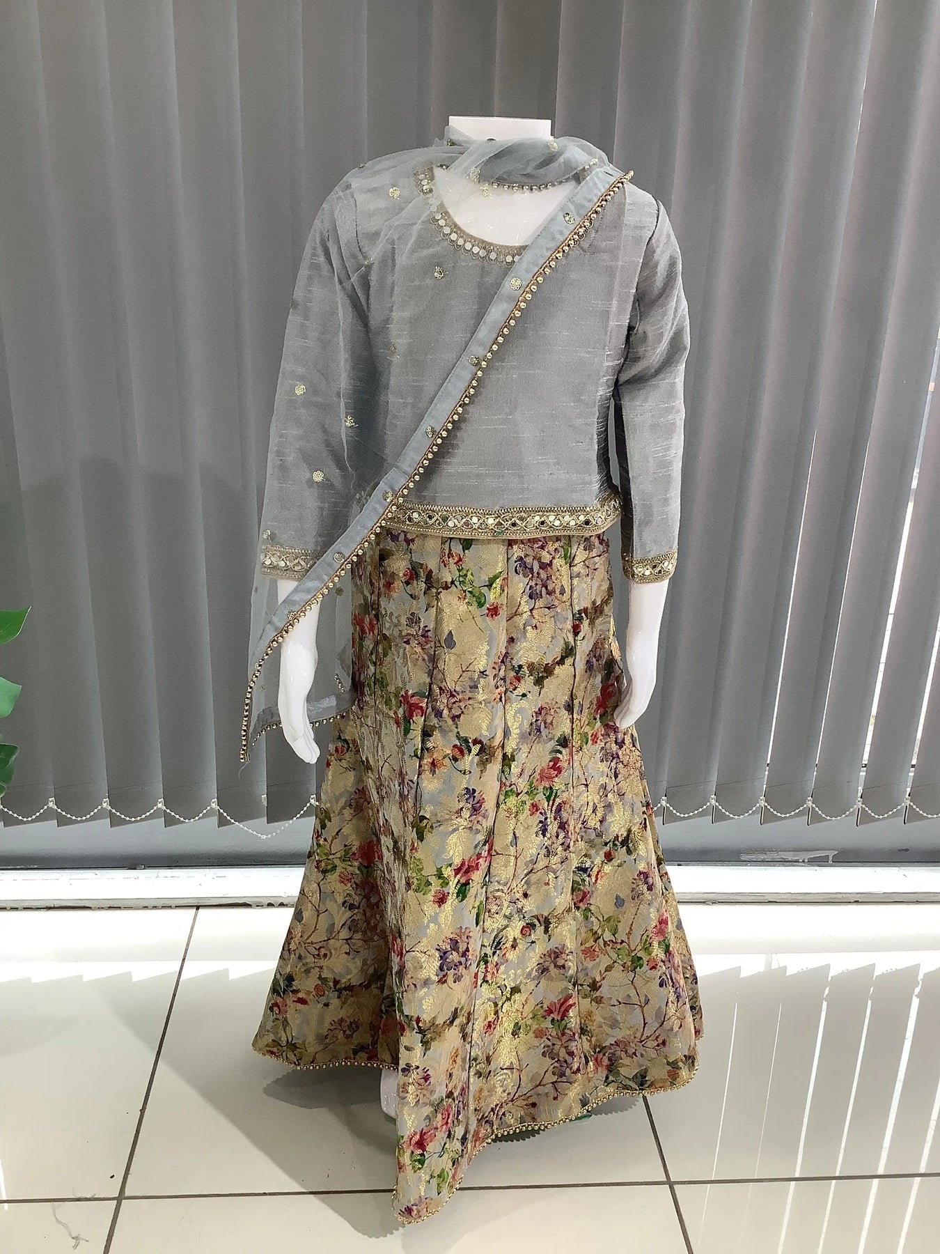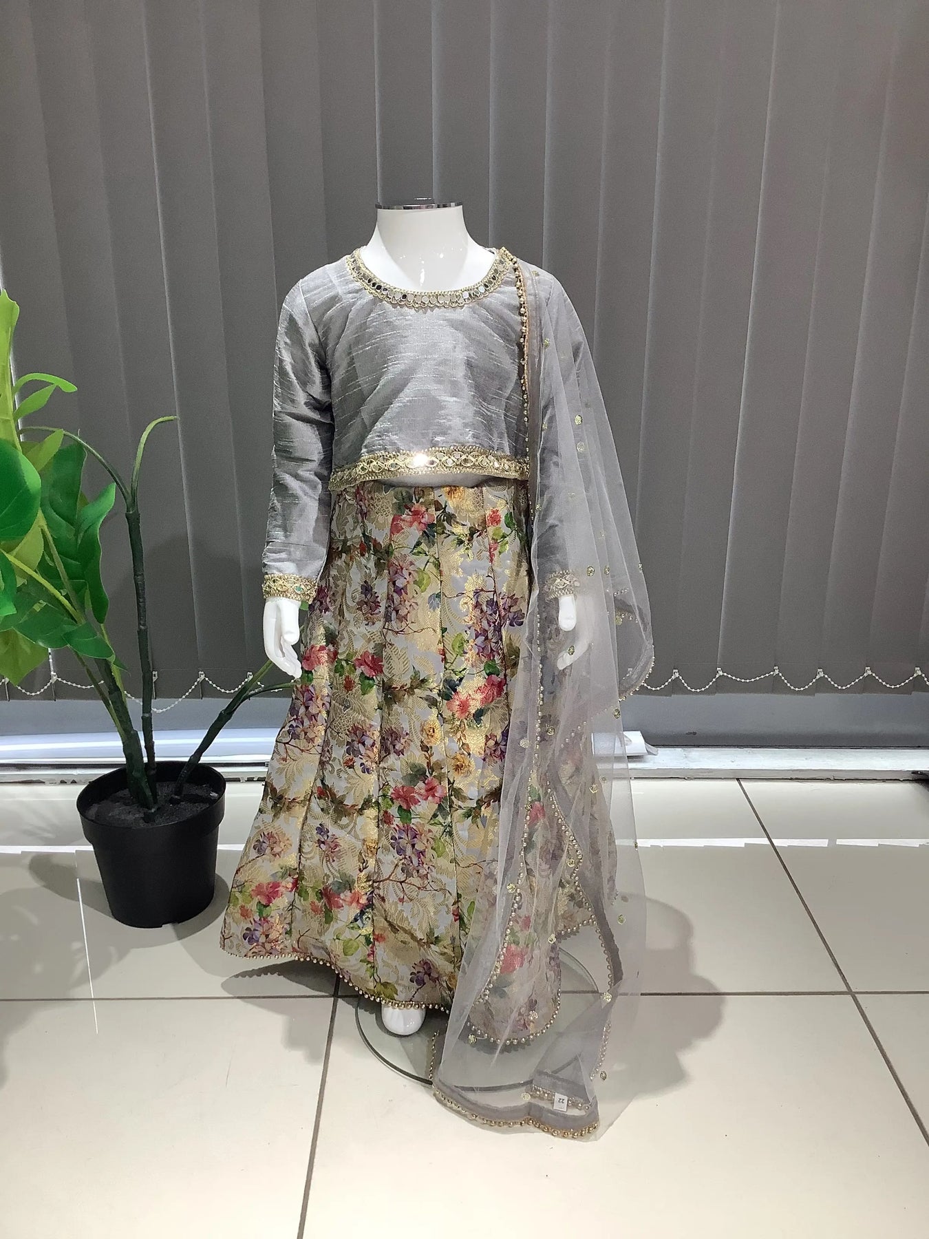 ASHA | Embroidered Banarsi Lehnga Choli KidsReady To Wear Grey | AS36