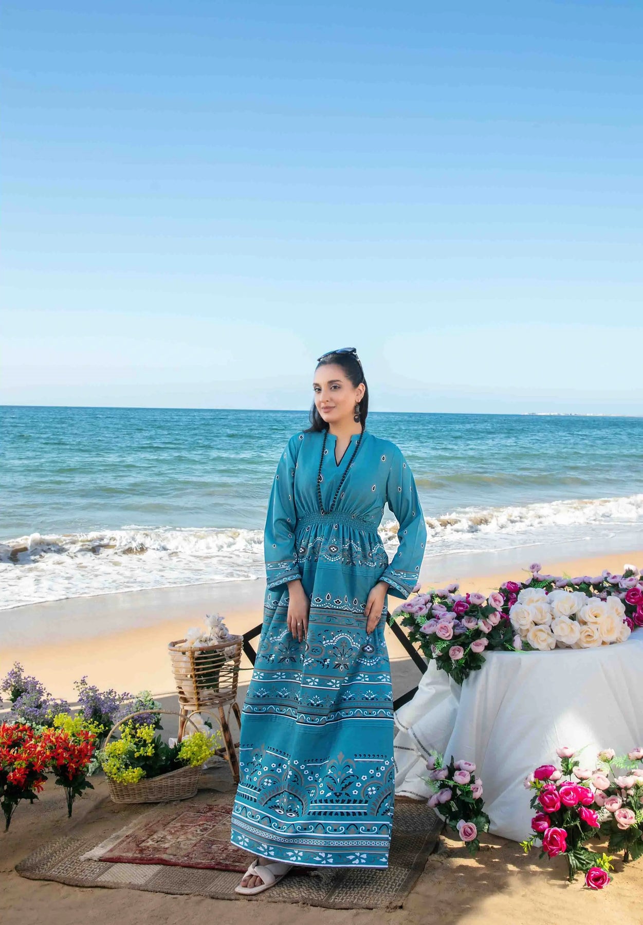 ✨ Whether it’s a chai da mehfil ☕ with friends or a grand dholki night 🥁, this Swiss Digital Print Maxi will keep you looking effortlessly regal.