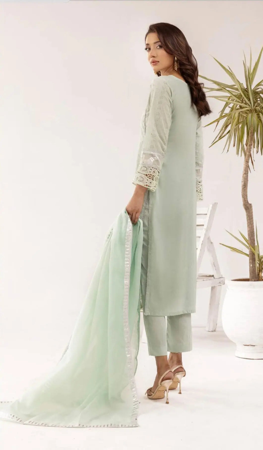 SIMRANS ‘Noir’ | Embroidered Cotton Chikenkari Readymade | SM788 (Mint Green)