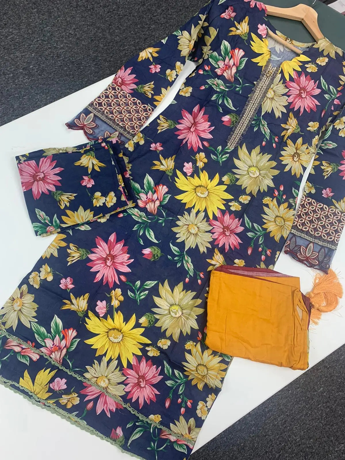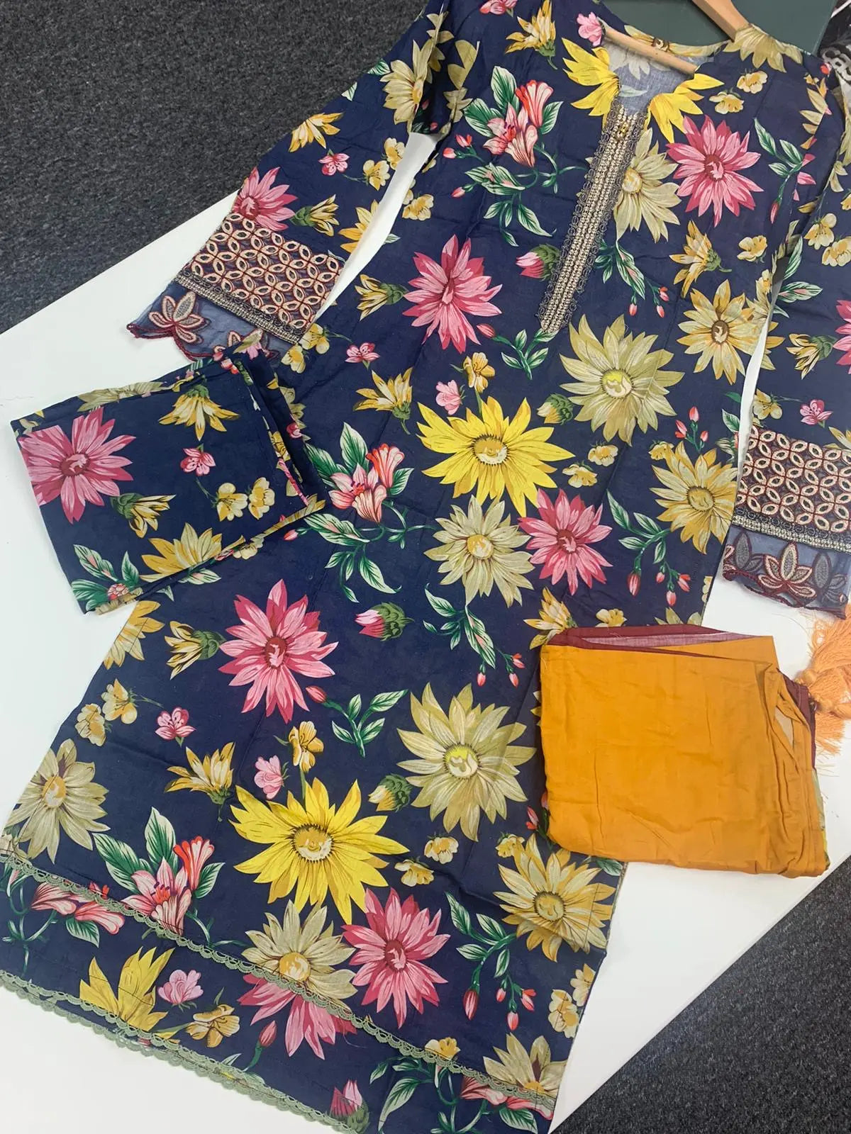 Hand Embroidered items are delicate in nature and can break of beading can become displaced. There is also a possibility in embroidery designs and prints which is unavoidable. By placing an order on our website you agree and accept the possibility of variation in comparison to the advertised images displayed on the website. We make every effort to minimise variations.