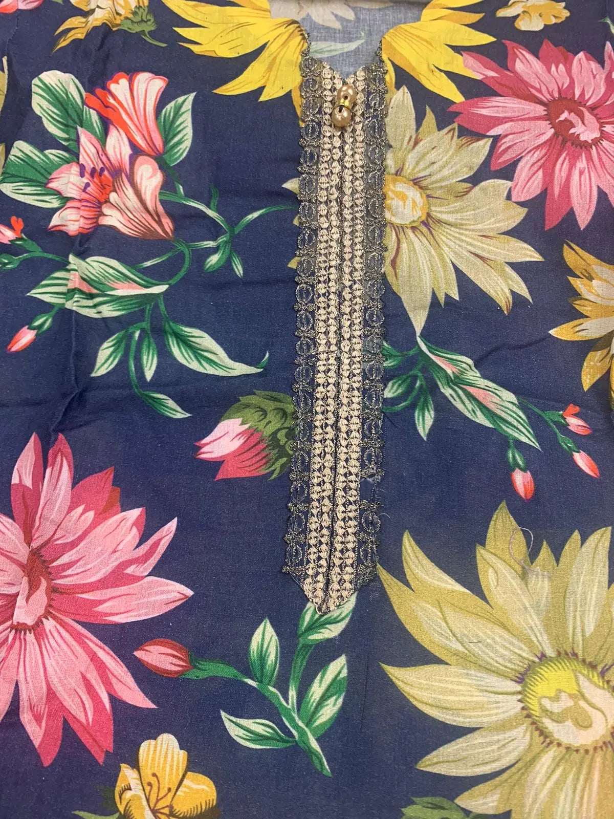 From time to time beading/ sequences may get displaced and this is not thought of as a fault but is due to the nature of the work. These articles of clothing should be worn with care.