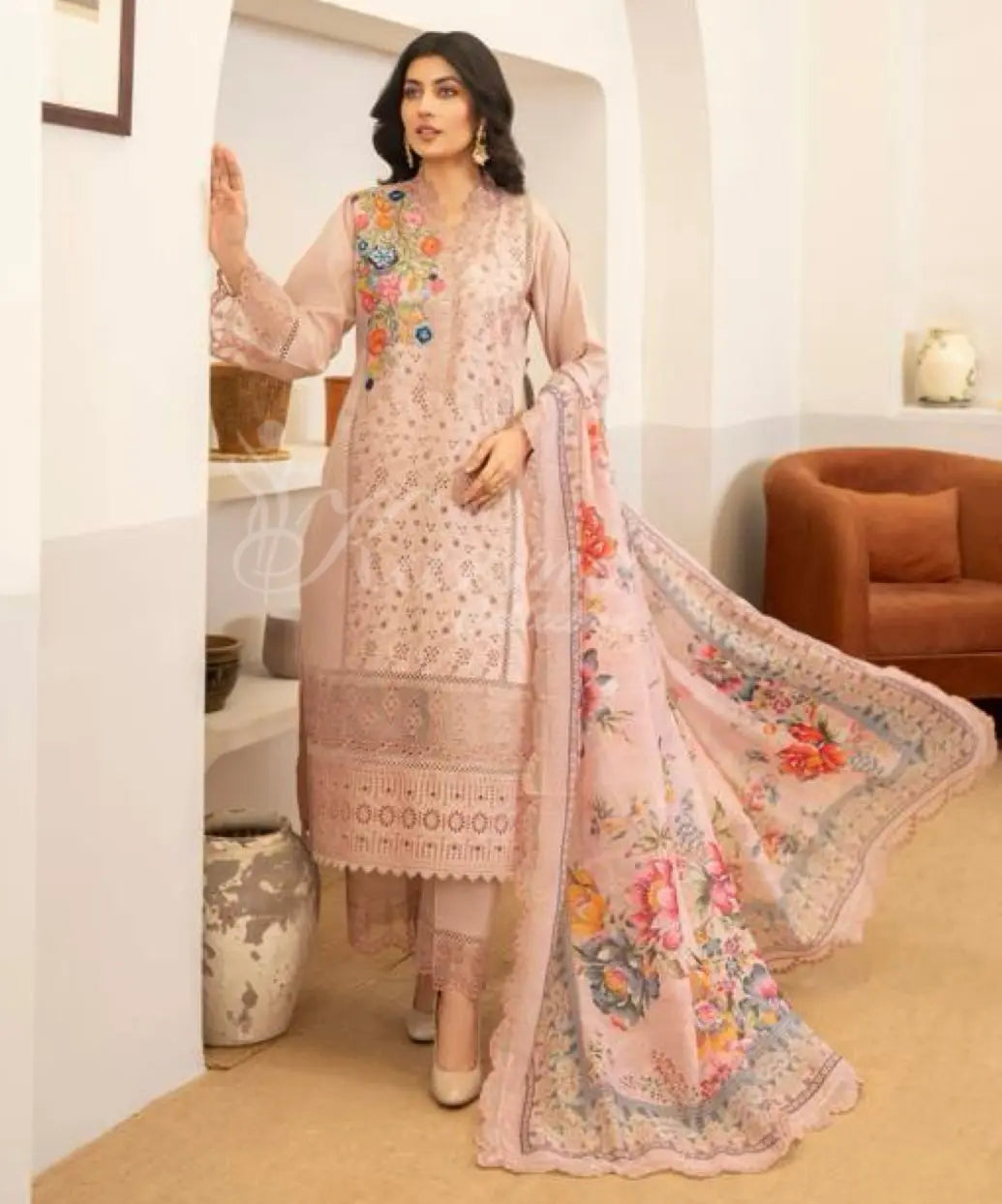 KARMA ‘Kayseria Vol 2’ | Embroidered Cotton Readymade | KC-1424 (Pastel Peach)
