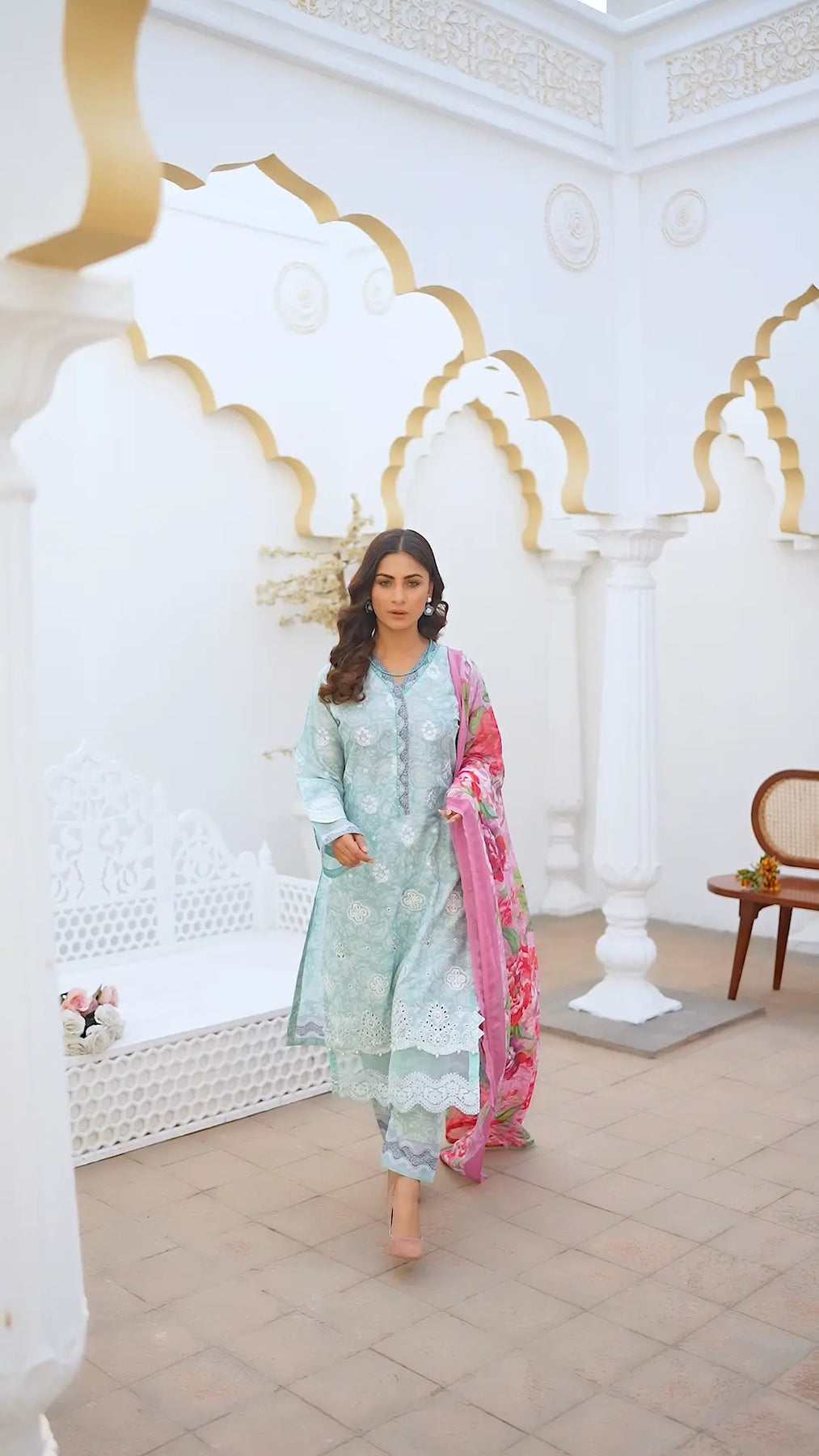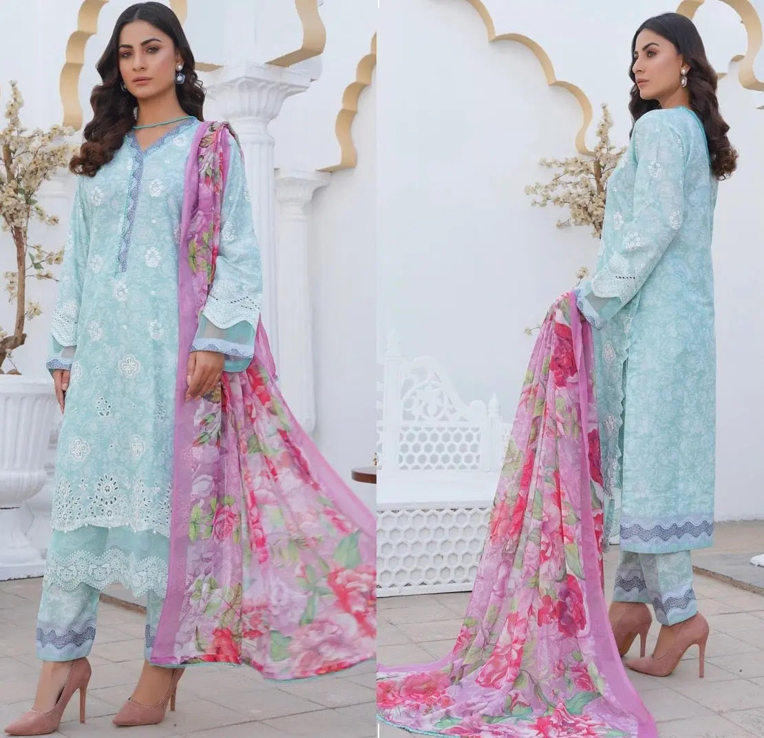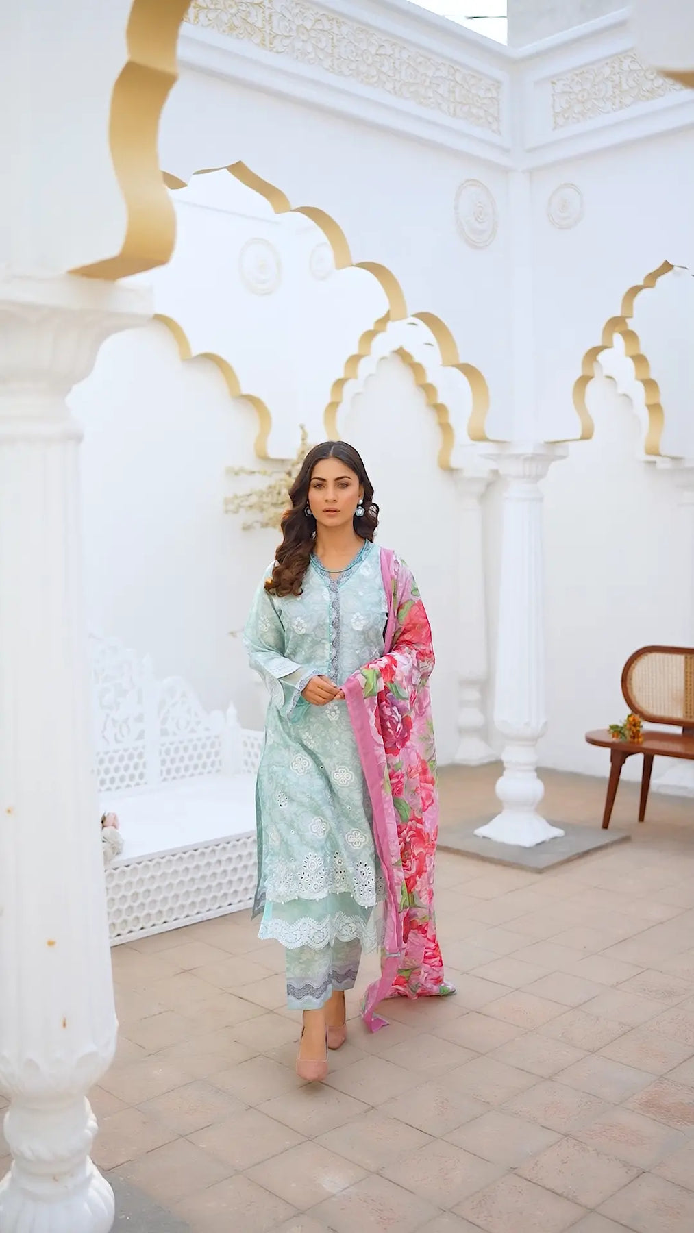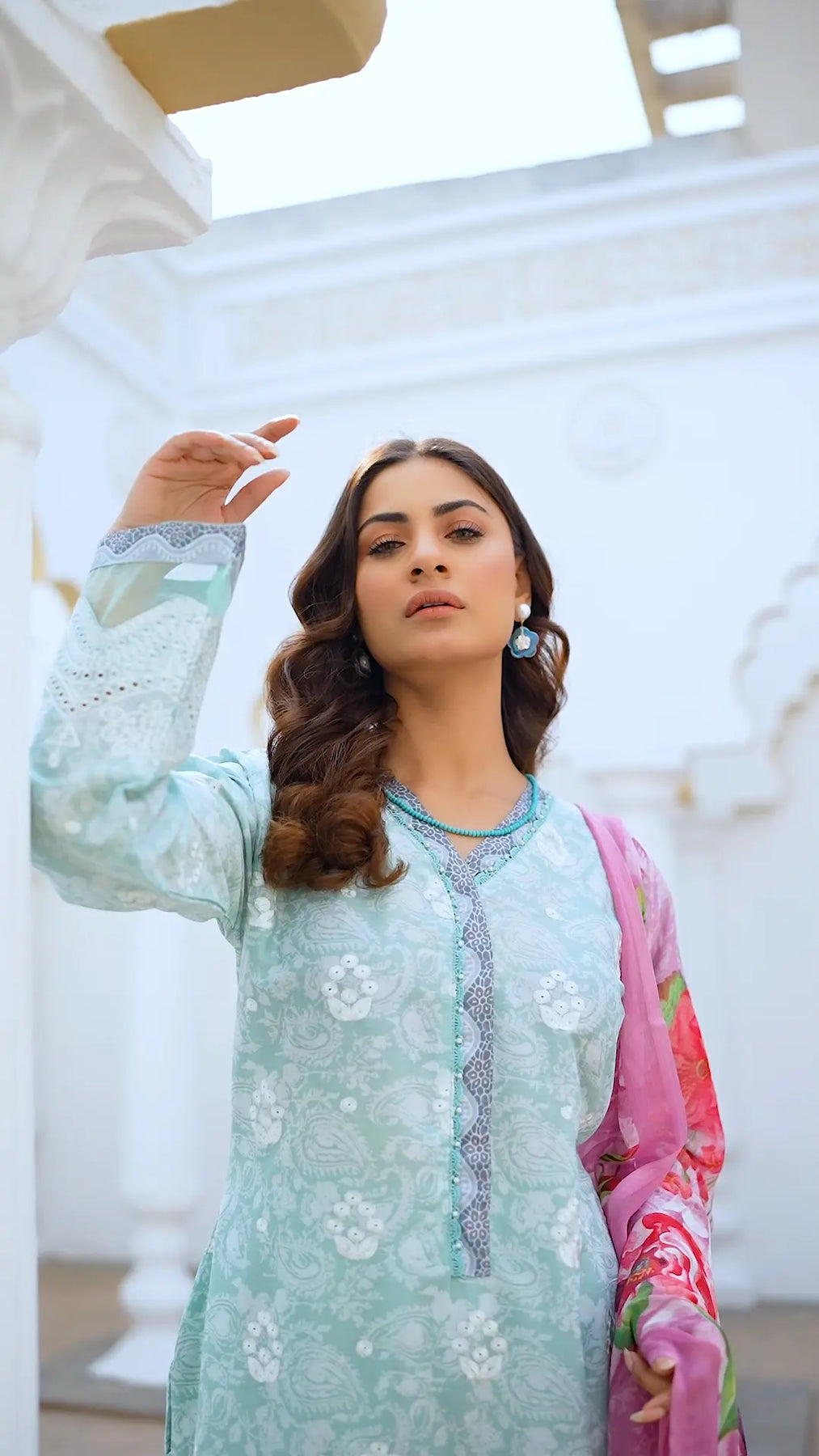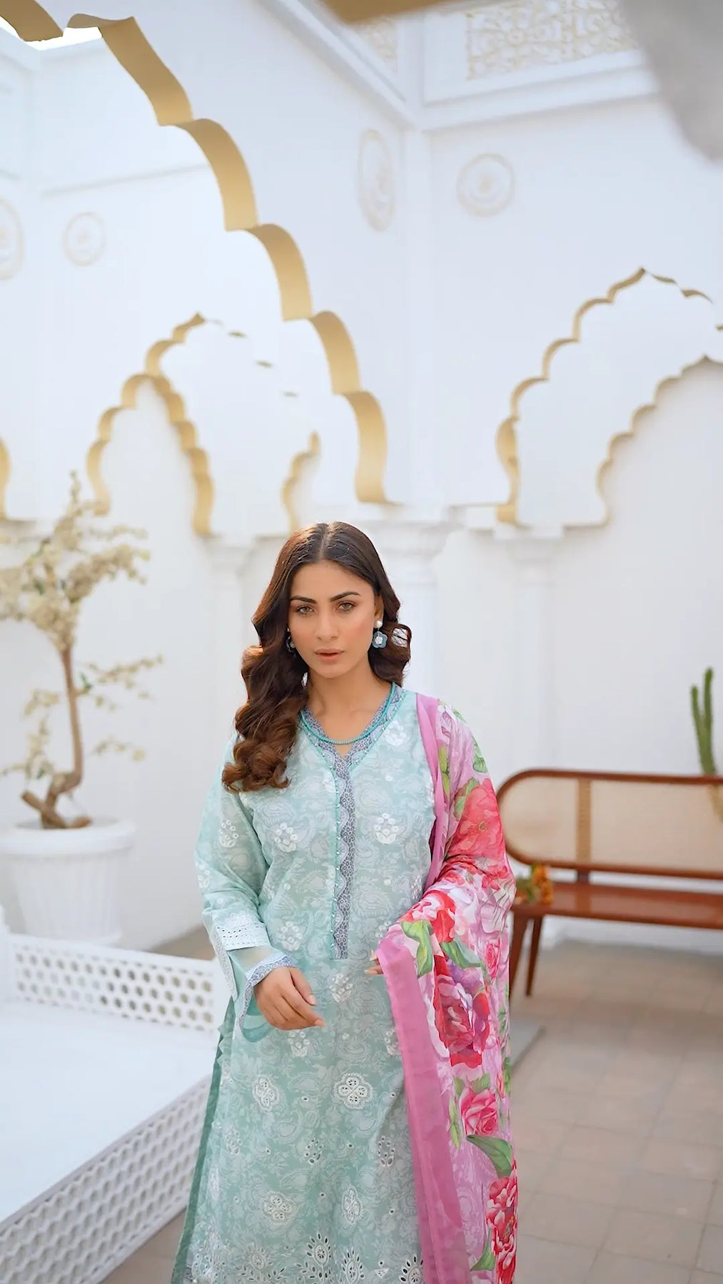 Embrace timeless elegance with our Embroidered Lawn with digital printed chiffon dupatta ensemble. Crafted from luxurious lawn, this outfit offers both comfort and style, making it perfect for both casual and formal occasions. The intricate embroidery on the fabric adds a touch of sophistication, highlighting the artistry and attention to detail that goes into every stitch.