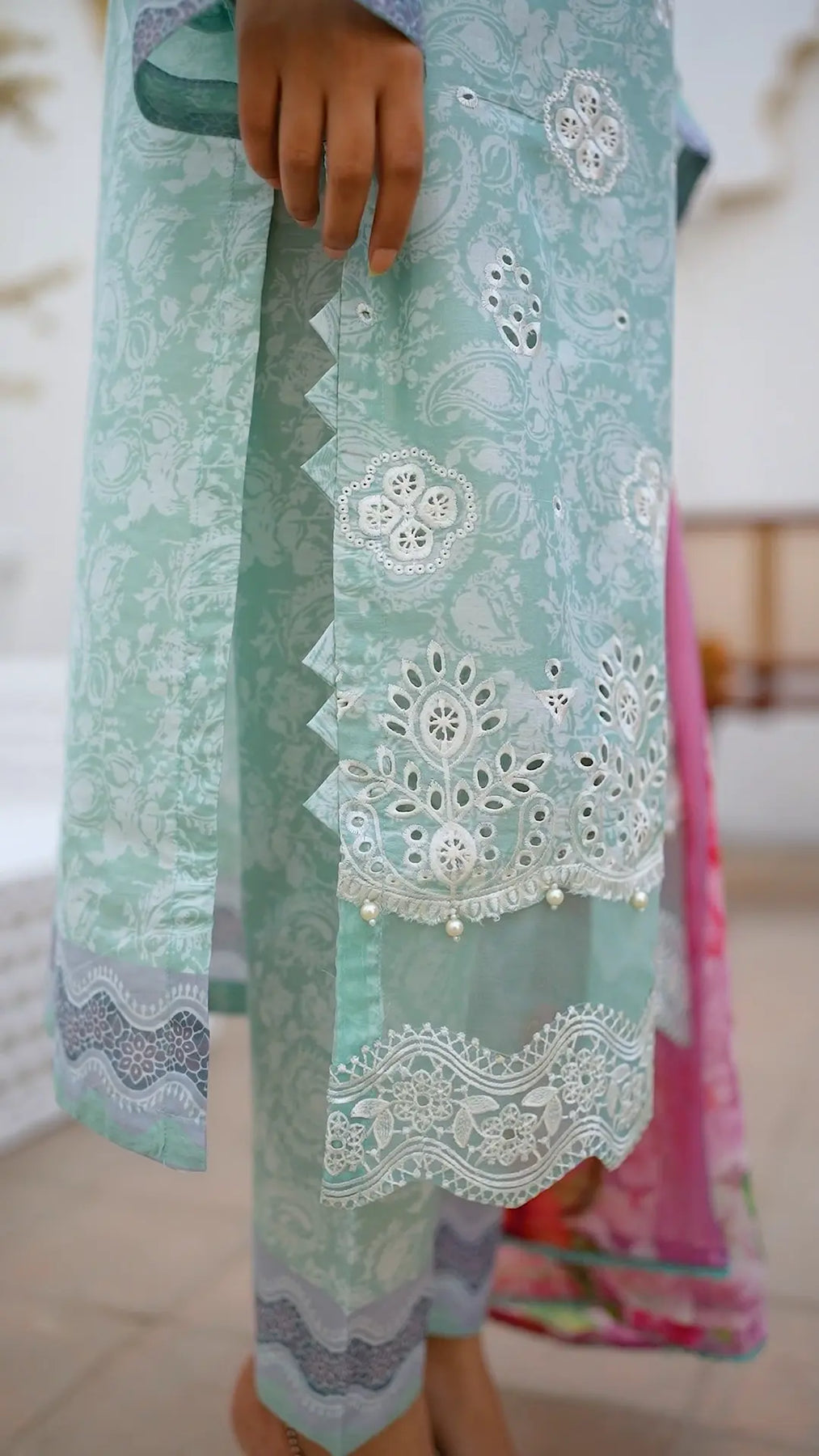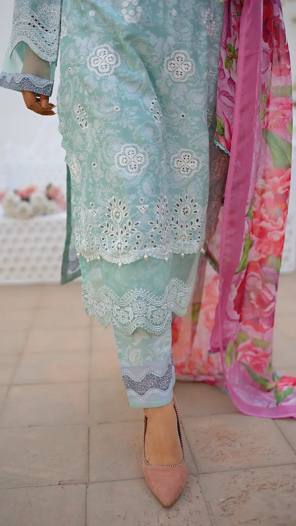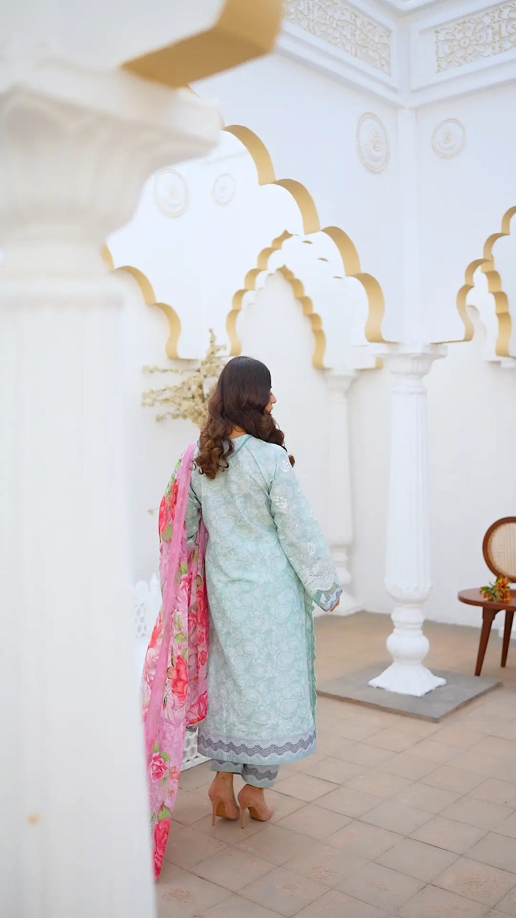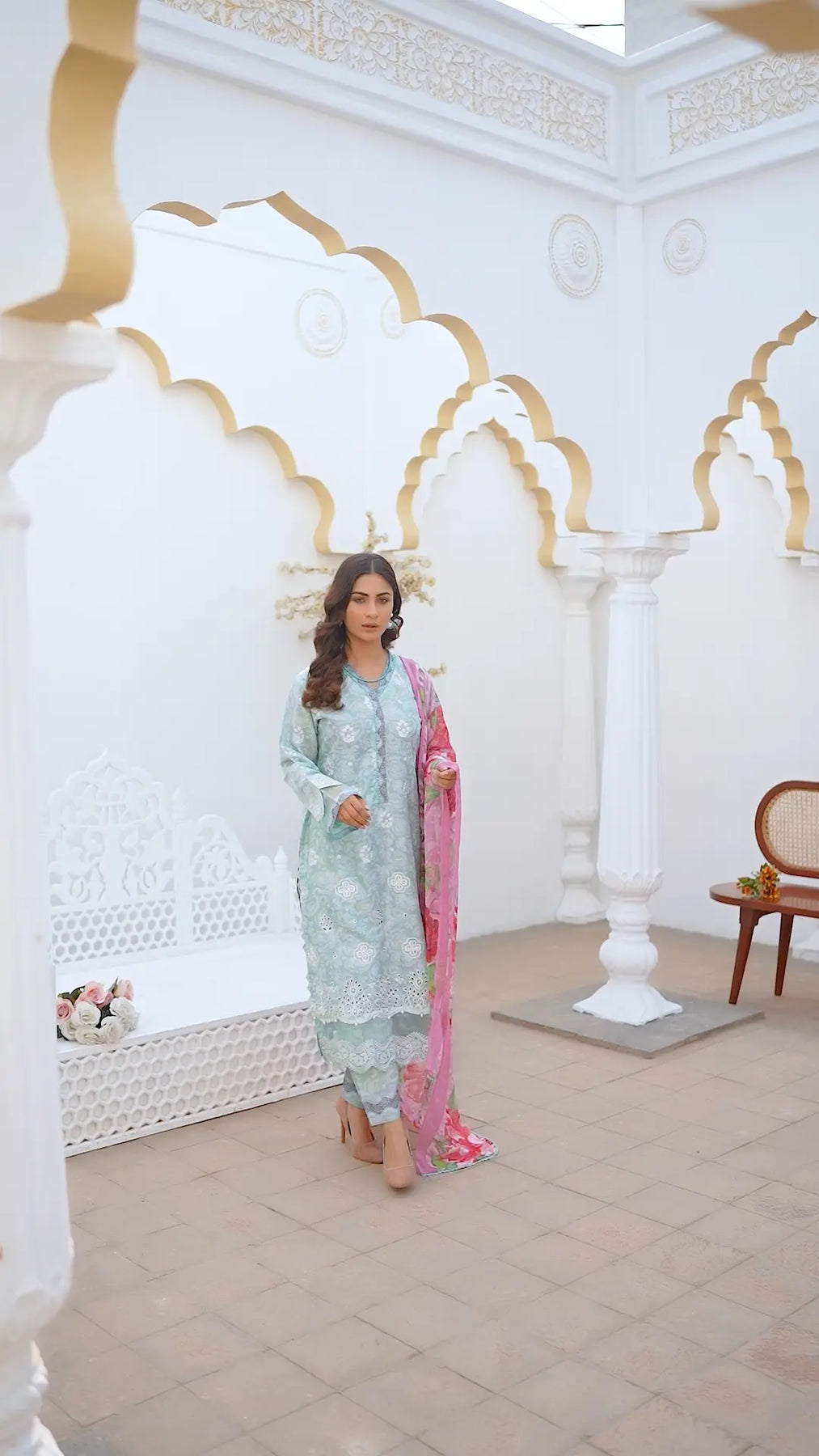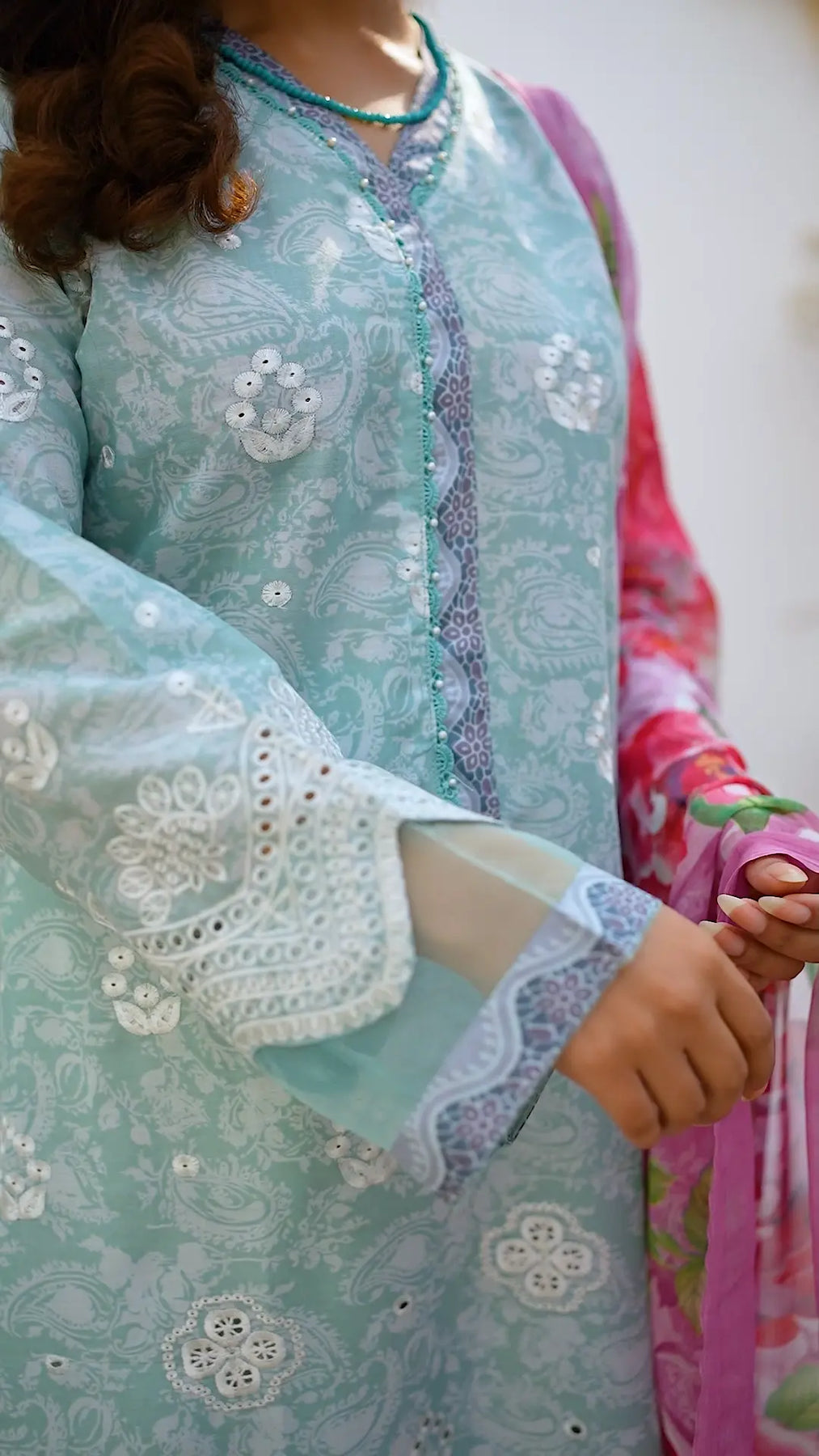 Embrace timeless elegance with our Embroidered Lawn with digital printed chiffon dupatta ensemble. Crafted from luxurious lawn, this outfit offers both comfort and style, making it perfect for both casual and formal occasions. The intricate embroidery on the fabric adds a touch of sophistication, highlighting the artistry and attention to detail that goes into every stitch.