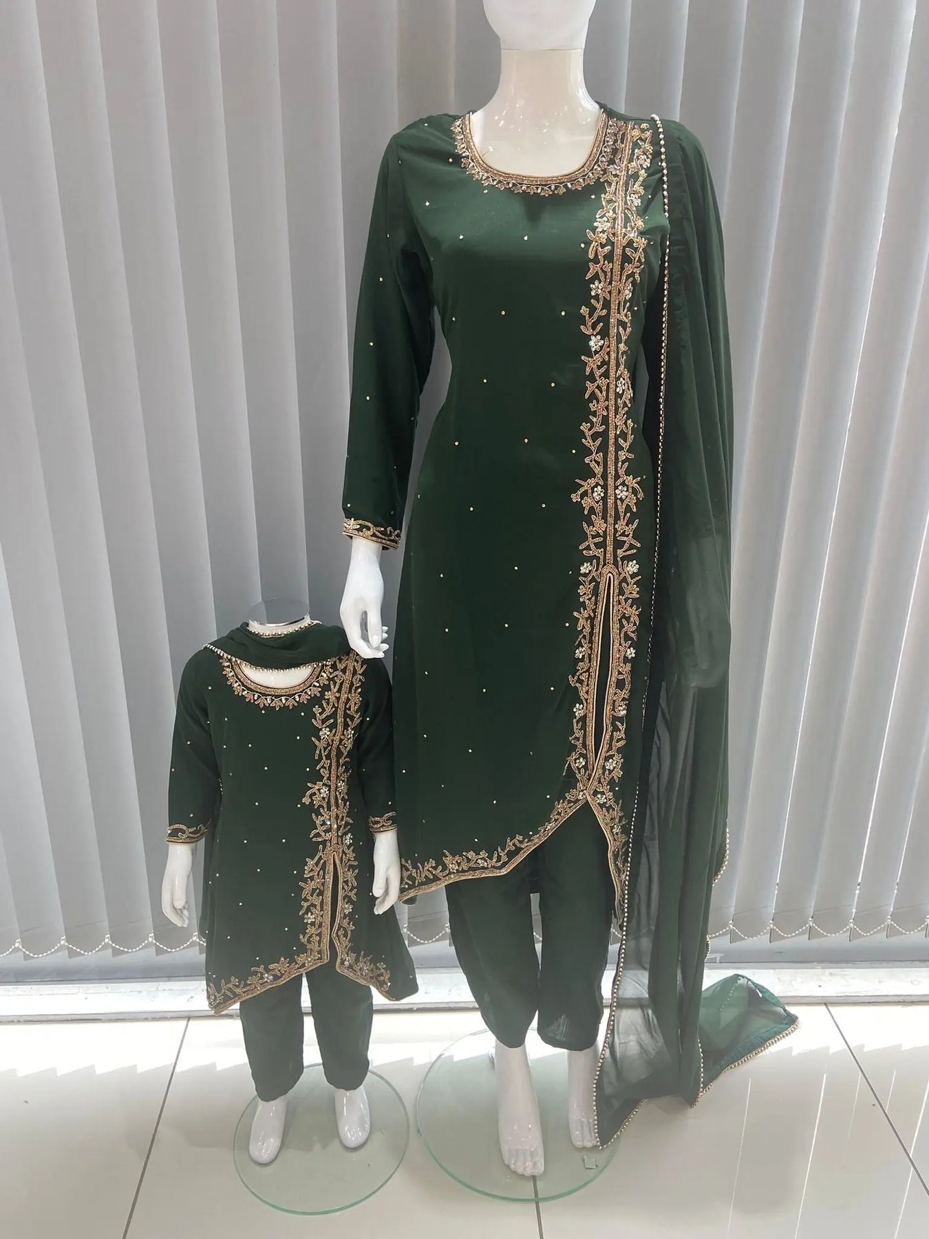 ASHA | Embroidered Hand Work Mother & Daughter Ready To Wear Green | AS82
