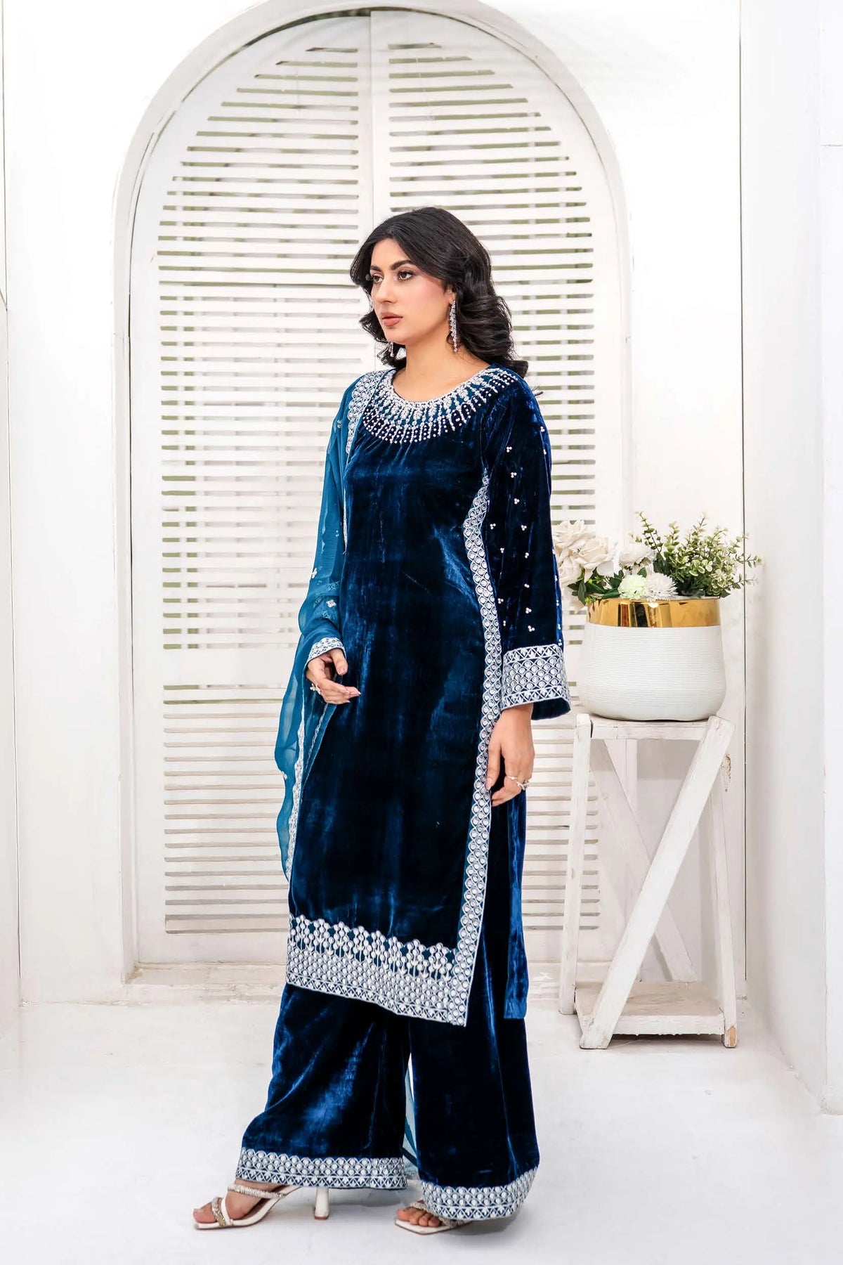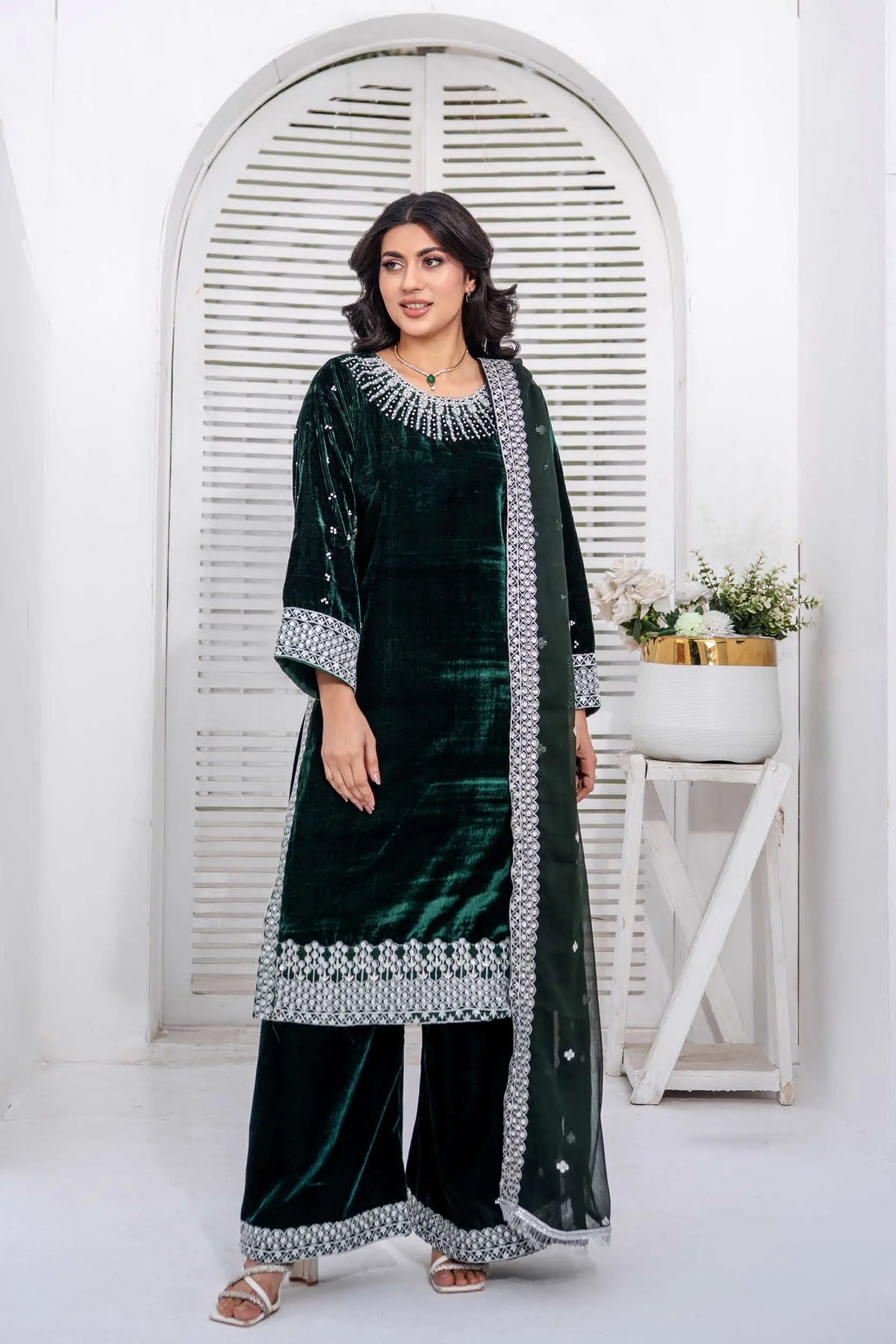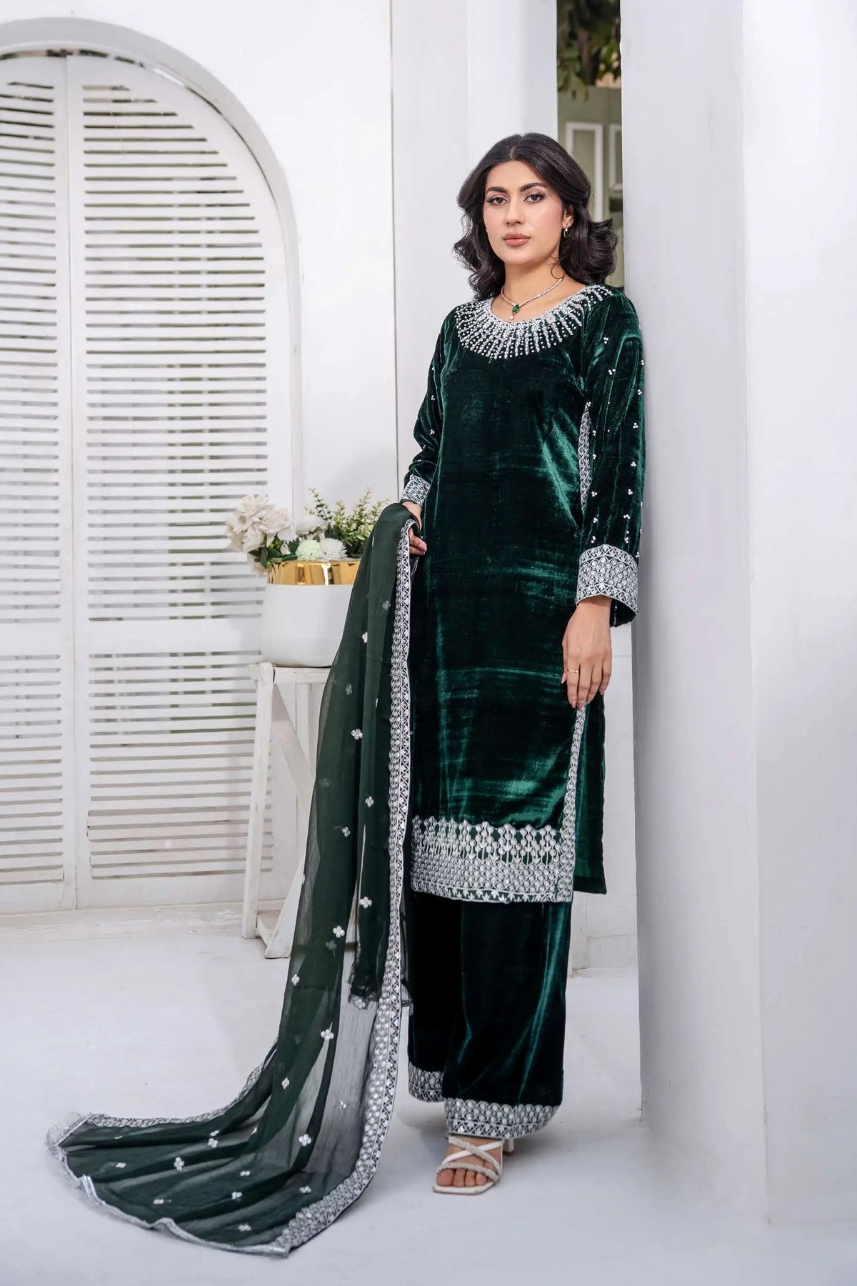 Step into elegance this season with our embroidered velvet masterpiece🪡, crafted for those who love timeless Pakistani fashion 💚. The rich velvet fabric gives a royal touch 👑, while the delicate chiffon dupatta adds a flowy, graceful charm 🌸.