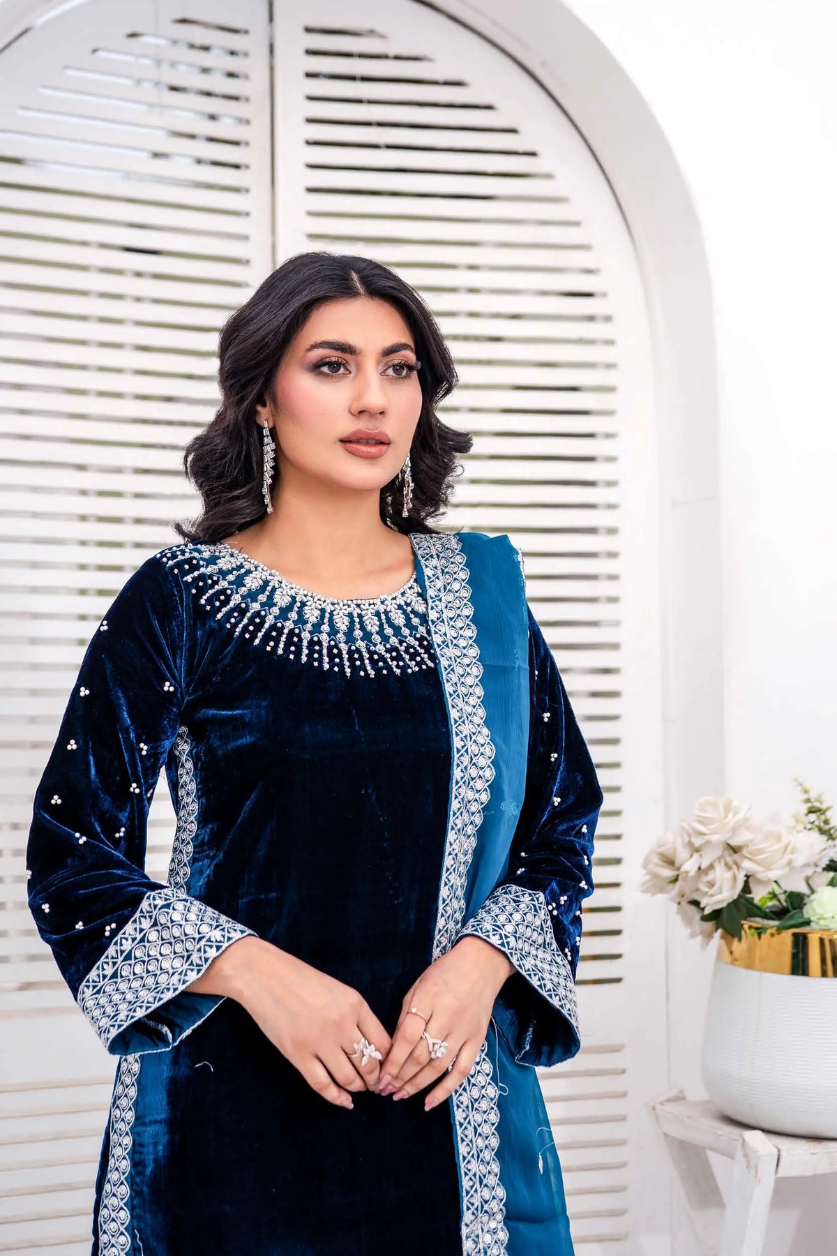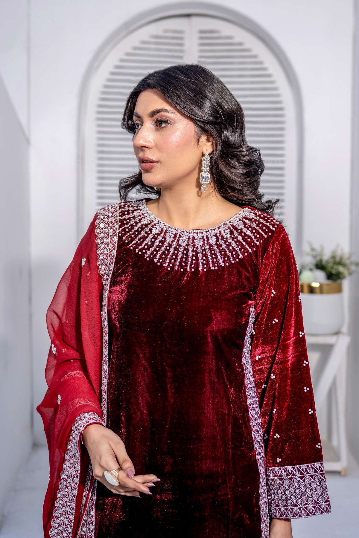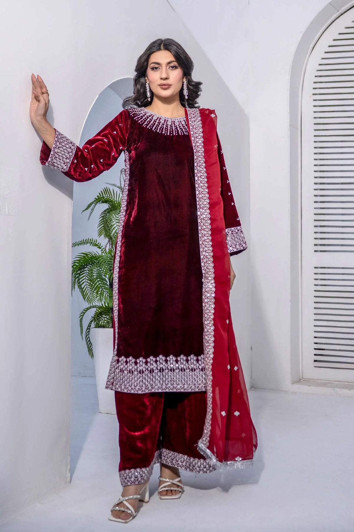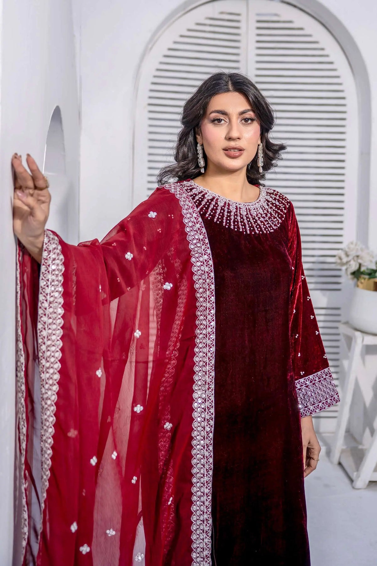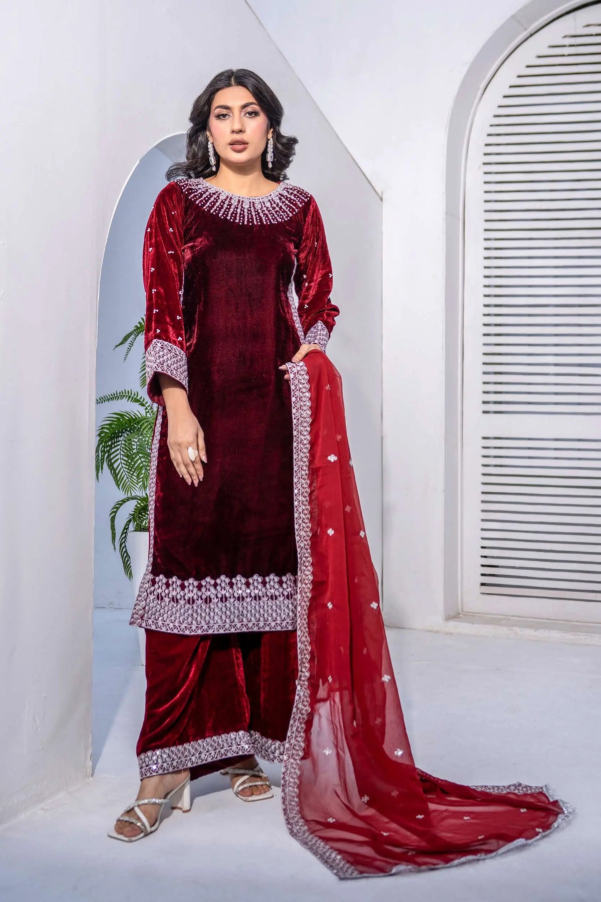 Luxury Embroidered Velvet with Chiffon Dupatta