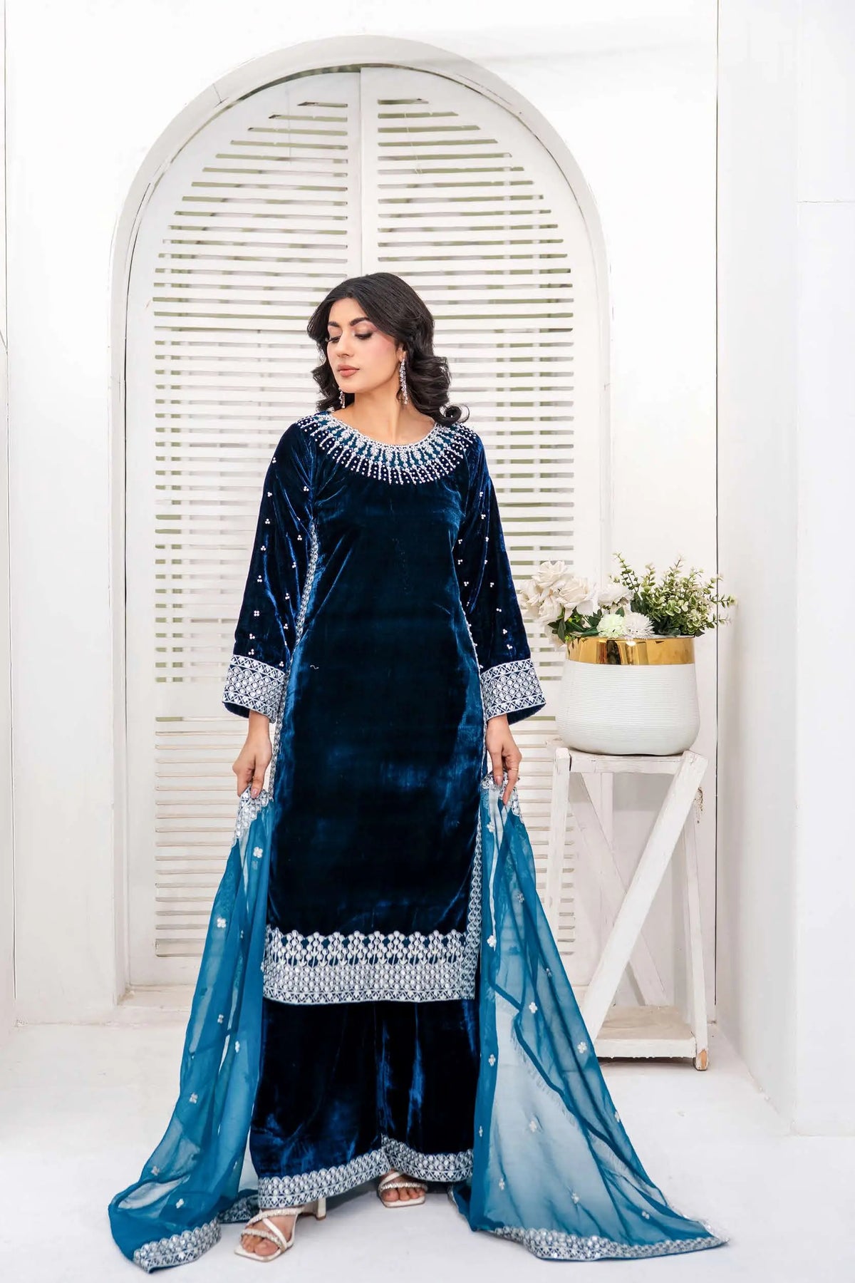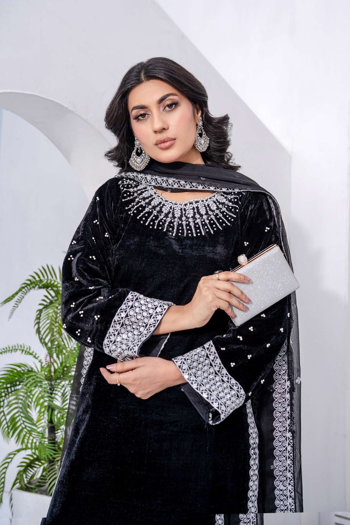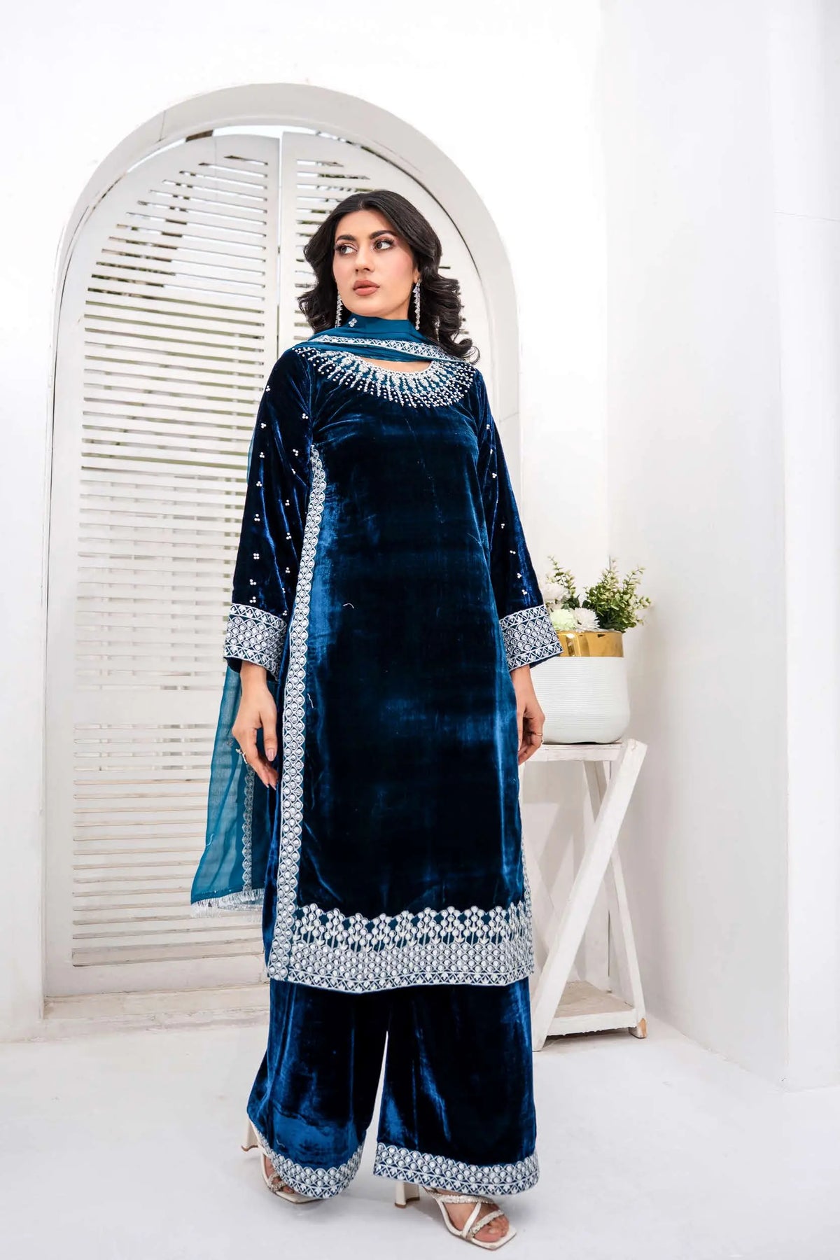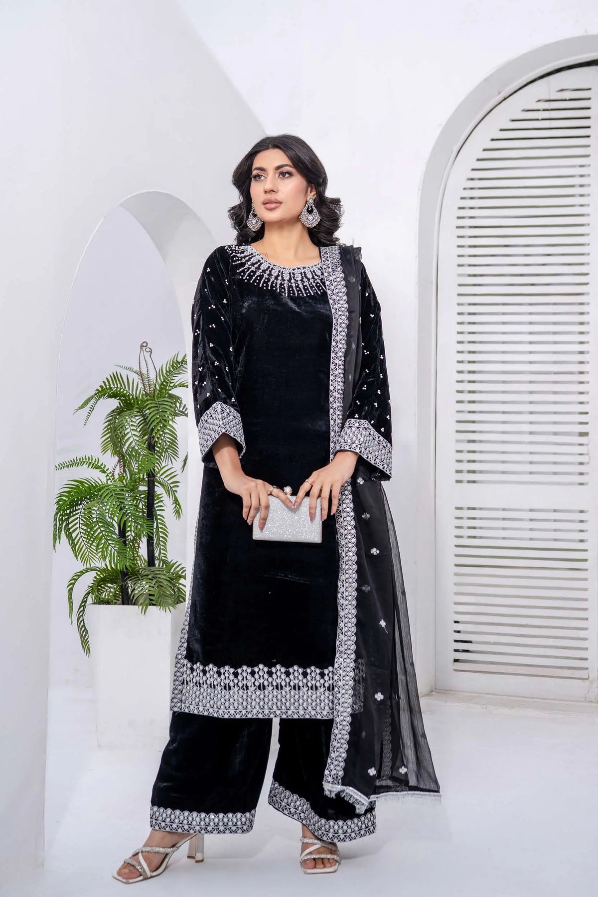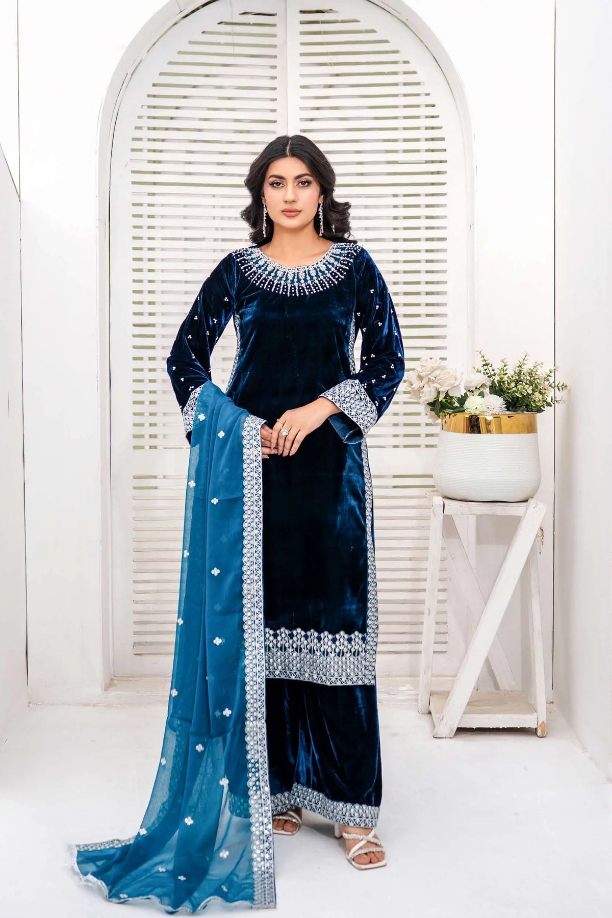 Luxury Embroidered Velvet with Chiffon Dupatta
