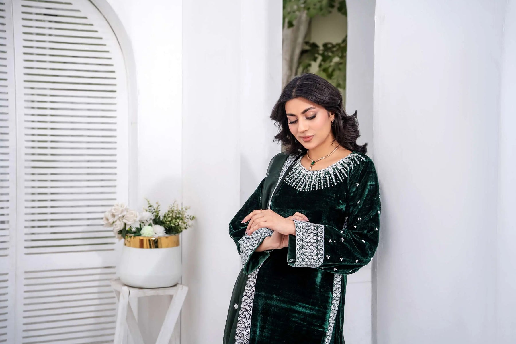 RANGZ | Embroidered Velvet Long Kameez Pakistani Readymade | RGZ111 (4 Colours)