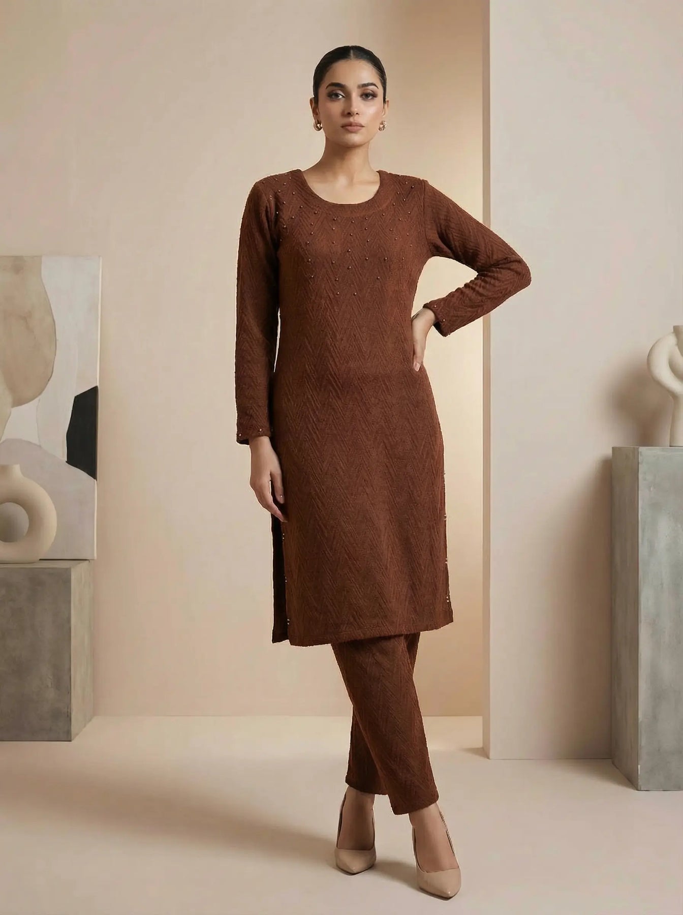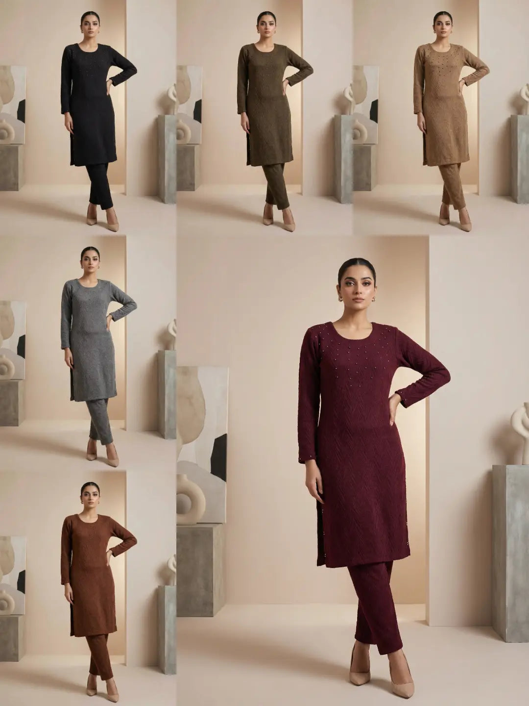 The Knit Studio | Ladies Co Ord Pearls Winter 2 Piece Top & Bottoms Womenswear | TKS012 (6 Colours) The Knit Studio