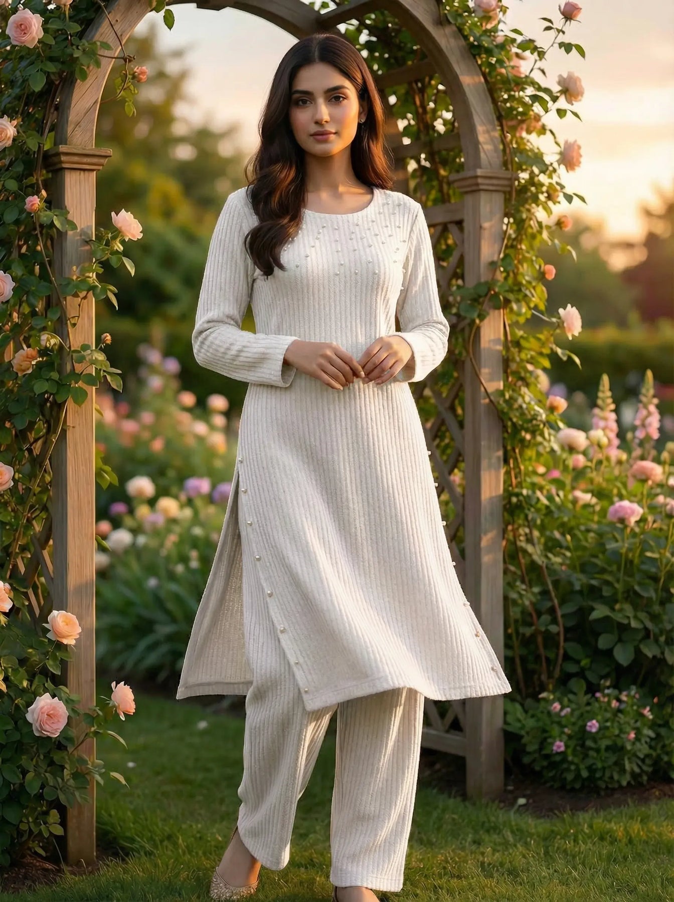 The Knit Studio | Ladies Co Ord Winter 2 Piece Top & Bottoms Womenswear | TKS011-Pearls (6 Colours) The Knit Studio