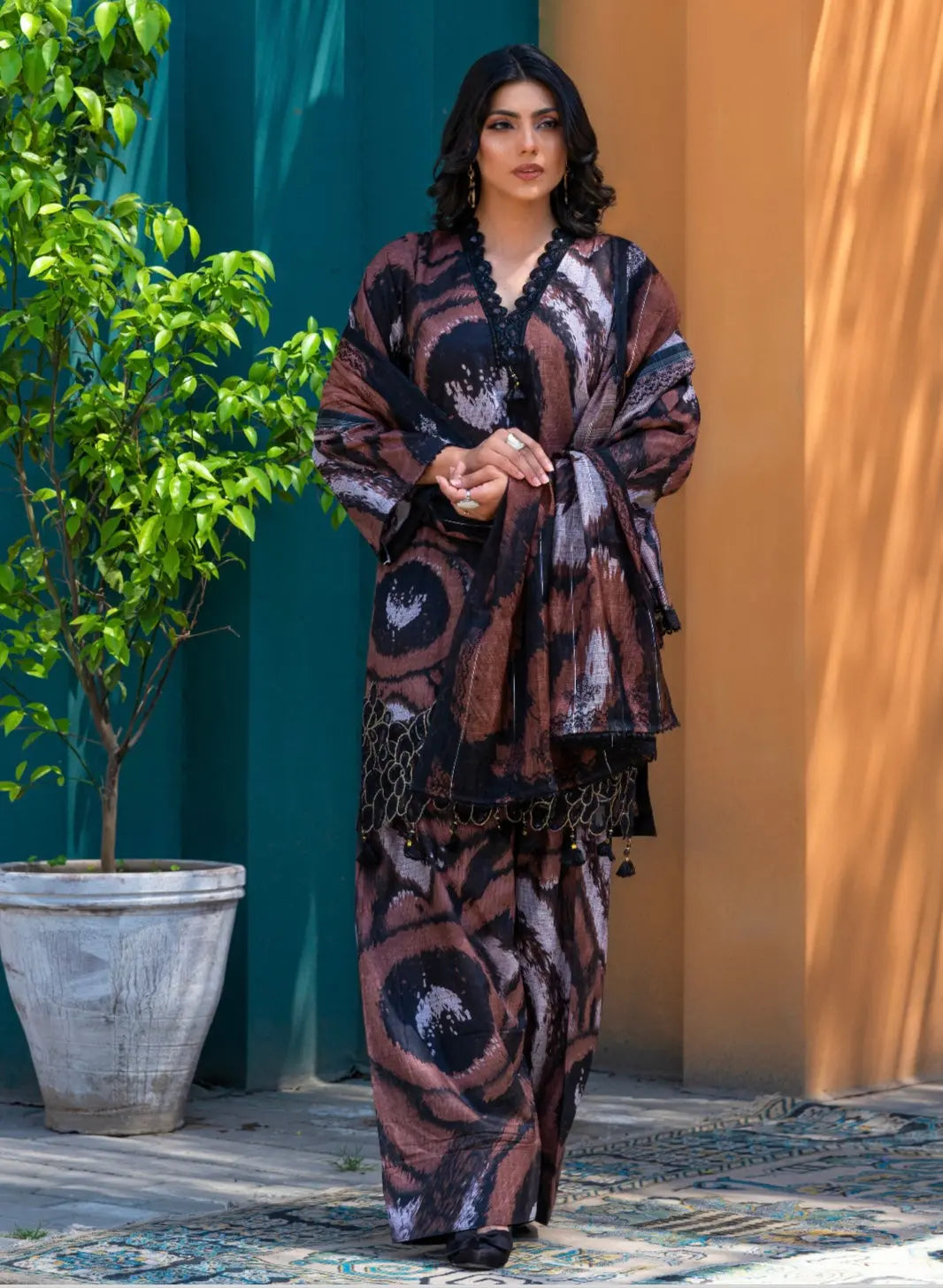 RANGZ ‘Maria B Inspired’ | Embroidered Linen Readymade Viral Trending Farshi Shalwar | RGZ088 (Brown)