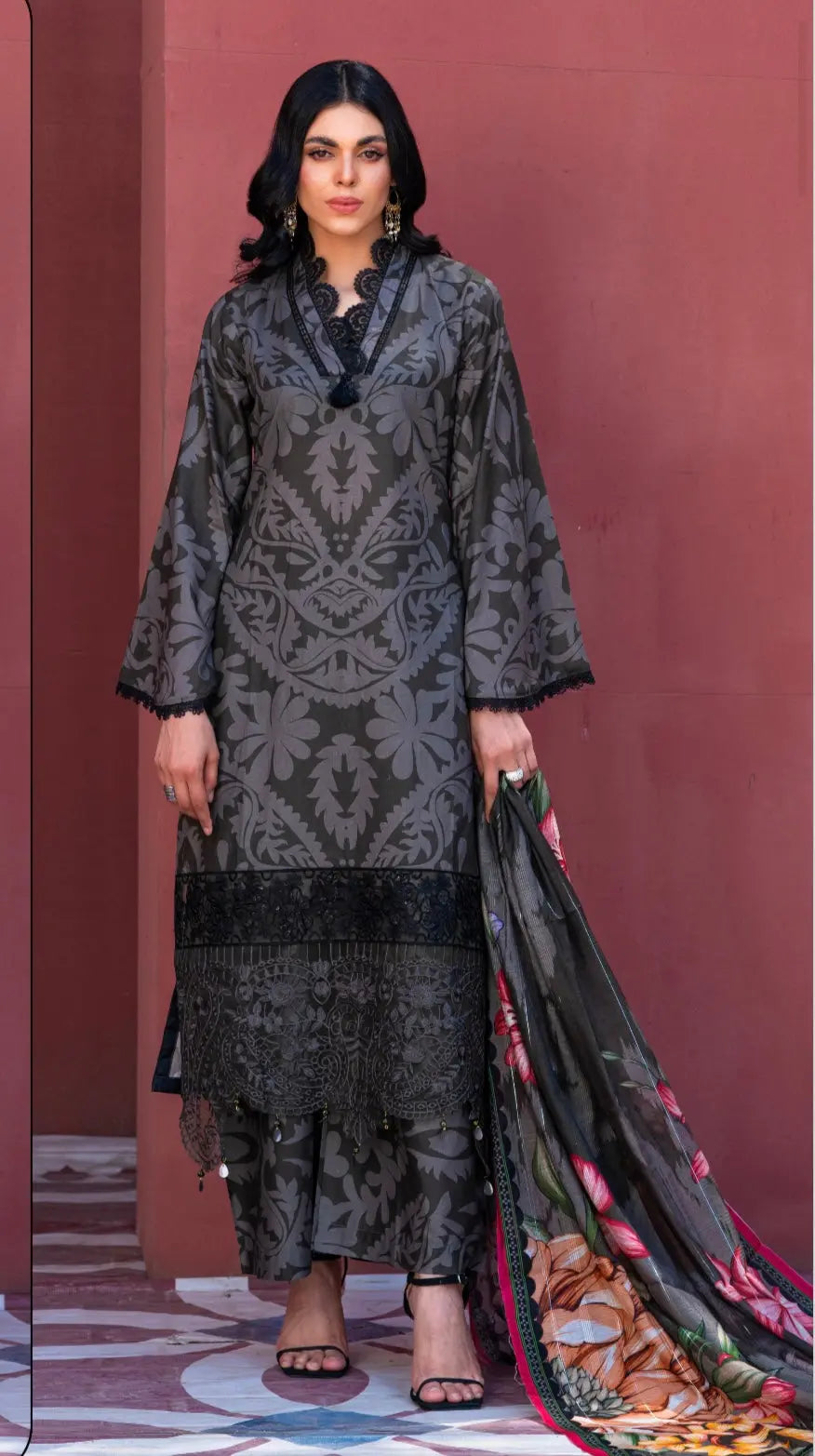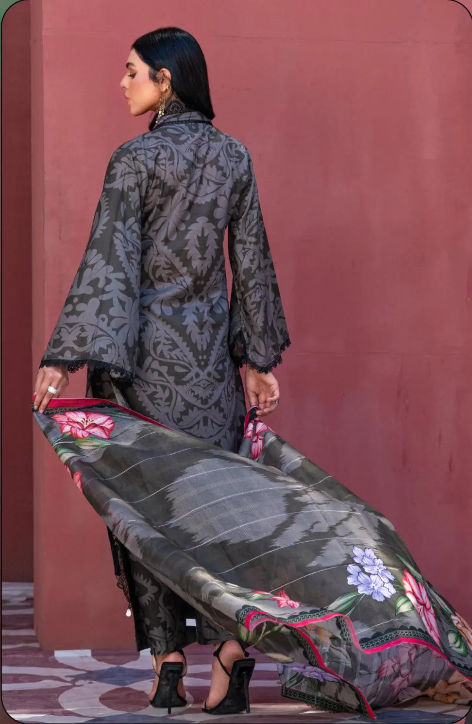 This exquisite set combines the timeless charm of embroidered linen 🌿 with the regal allure of a Banarasi dupatta👑. The soft, breathable linen fabric ensures comfort all day long, while the intricate embroidery 🌸 adds a touch of sophistication. The luxurious dupatta with its rich patterns and shimmering gold or silver threads ✨ elevates the entire ensemble, making it perfect for festive occasions 🎉 or evening affairs 🌙.