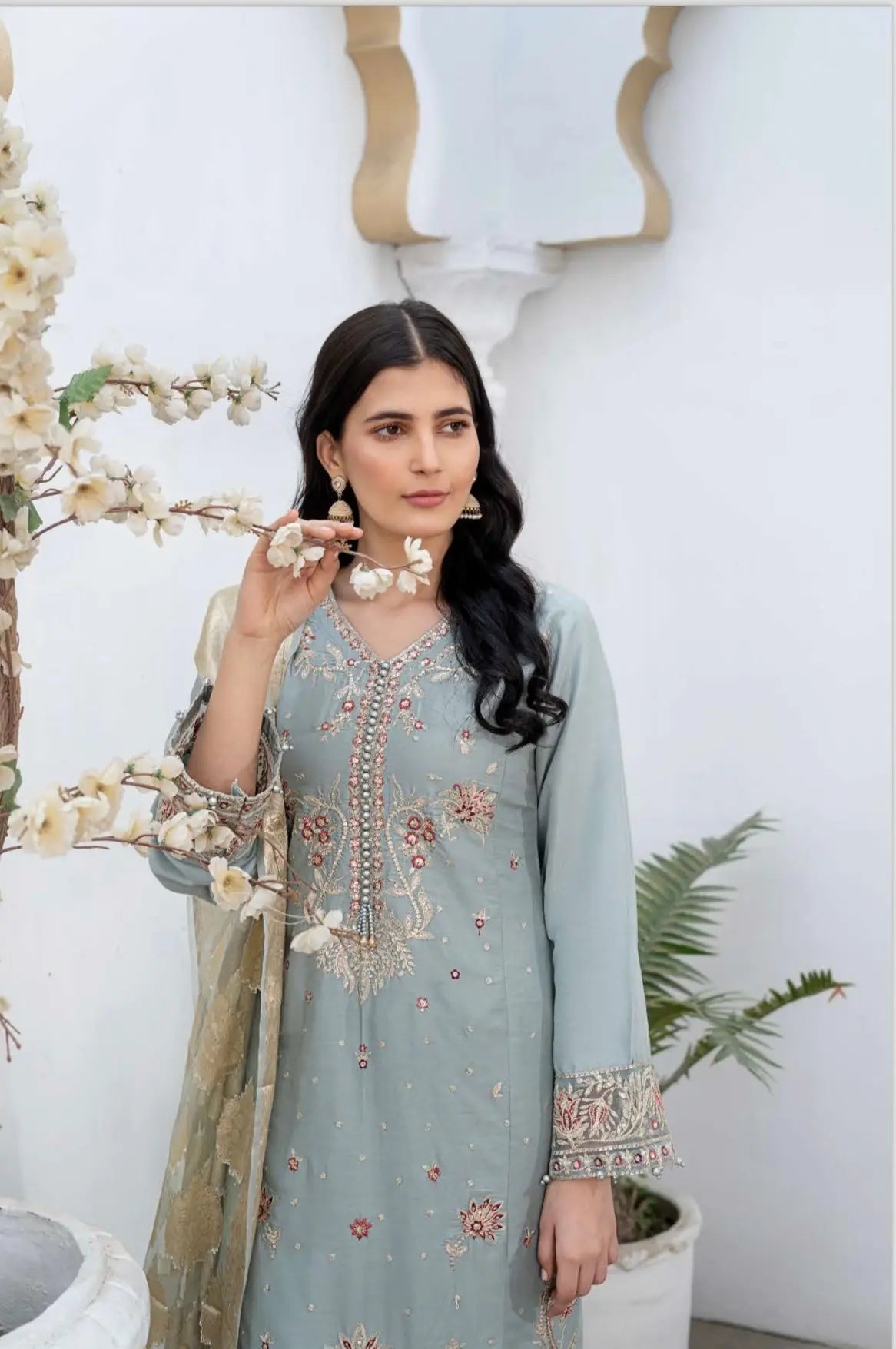 RANGZ ‘Shehnai’ | Embroidered Linen Readymade | RGZ072 (Mint)