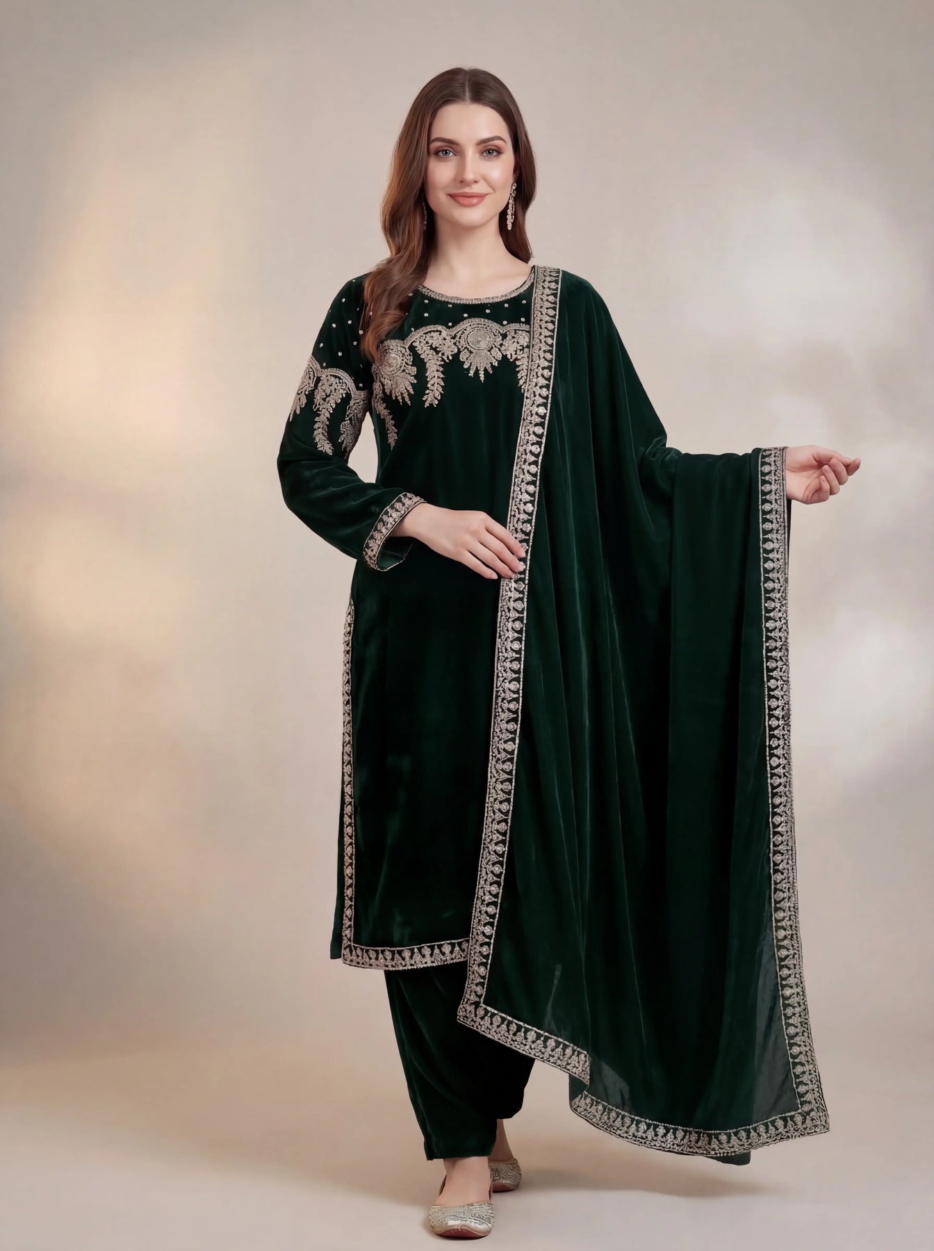 Step into elegance this season with our embroidered velvet masterpiece🪡, crafted for those who love timeless Pakistani fashion 💚. The rich velvet fabric gives a royal touch 👑, while the delicate chiffon dupatta adds a flowy, graceful charm 🌸.