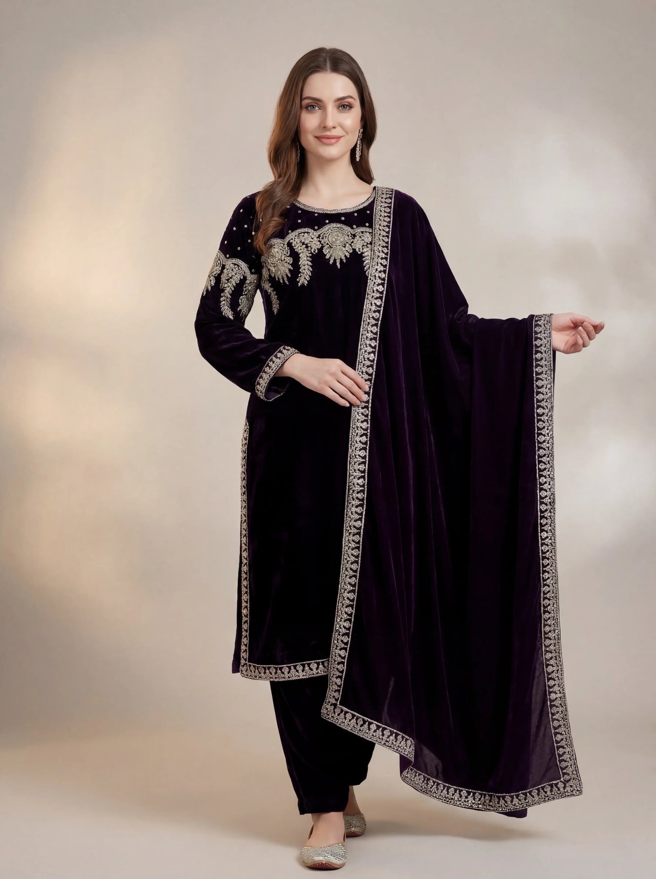 Luxury Embroidered Velvet with Chiffon Dupatta