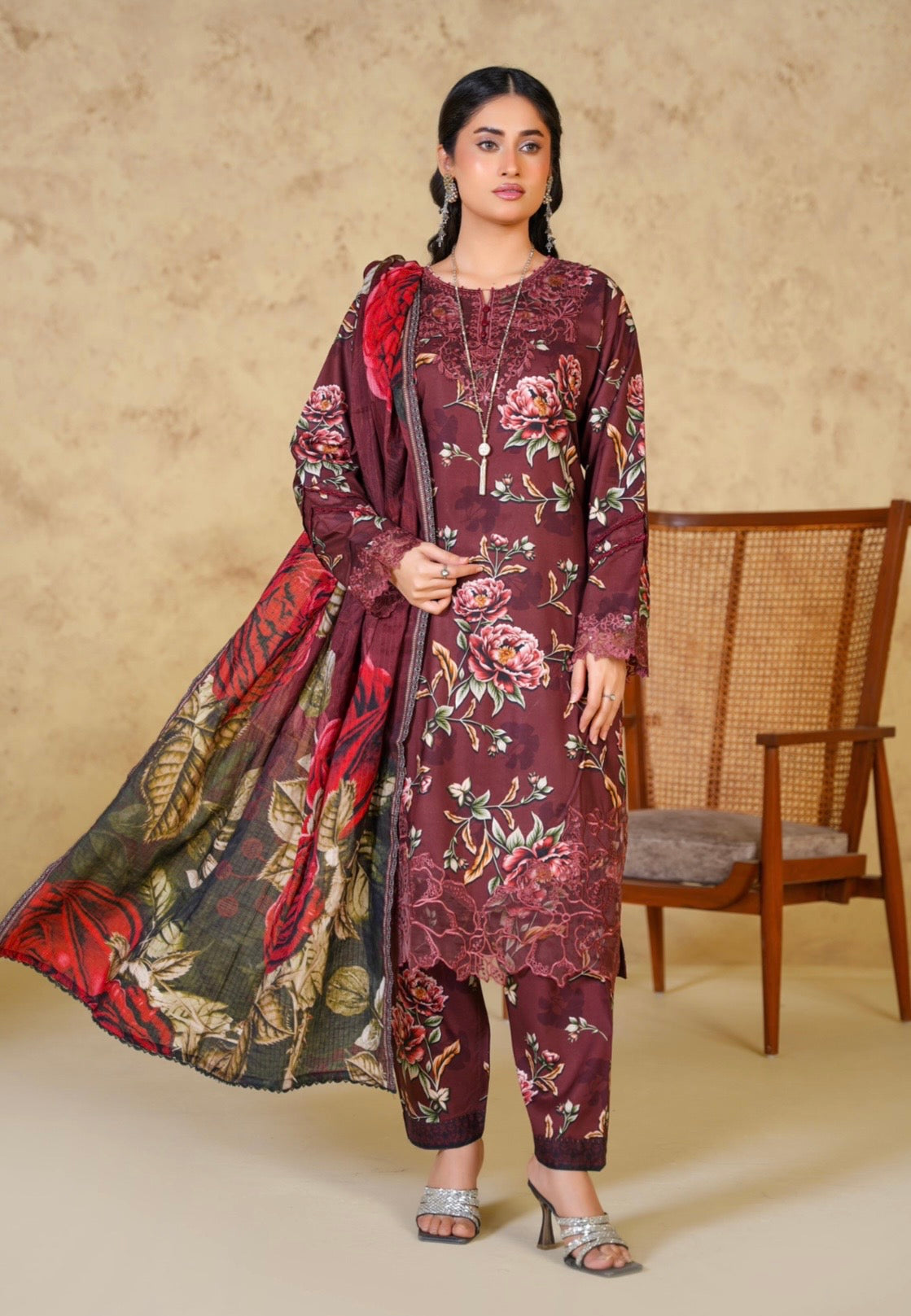 Embrace timeless elegance with our Embroidered linen with digital printed dupatta ensemble. Crafted from luxurious linen, this outfit offers both comfort and style, making it perfect for both casual and formal occasions. The intricate embroidery on the fabric adds a touch of sophistication, highlighting the artistry and attention to detail that goes into every stitch.