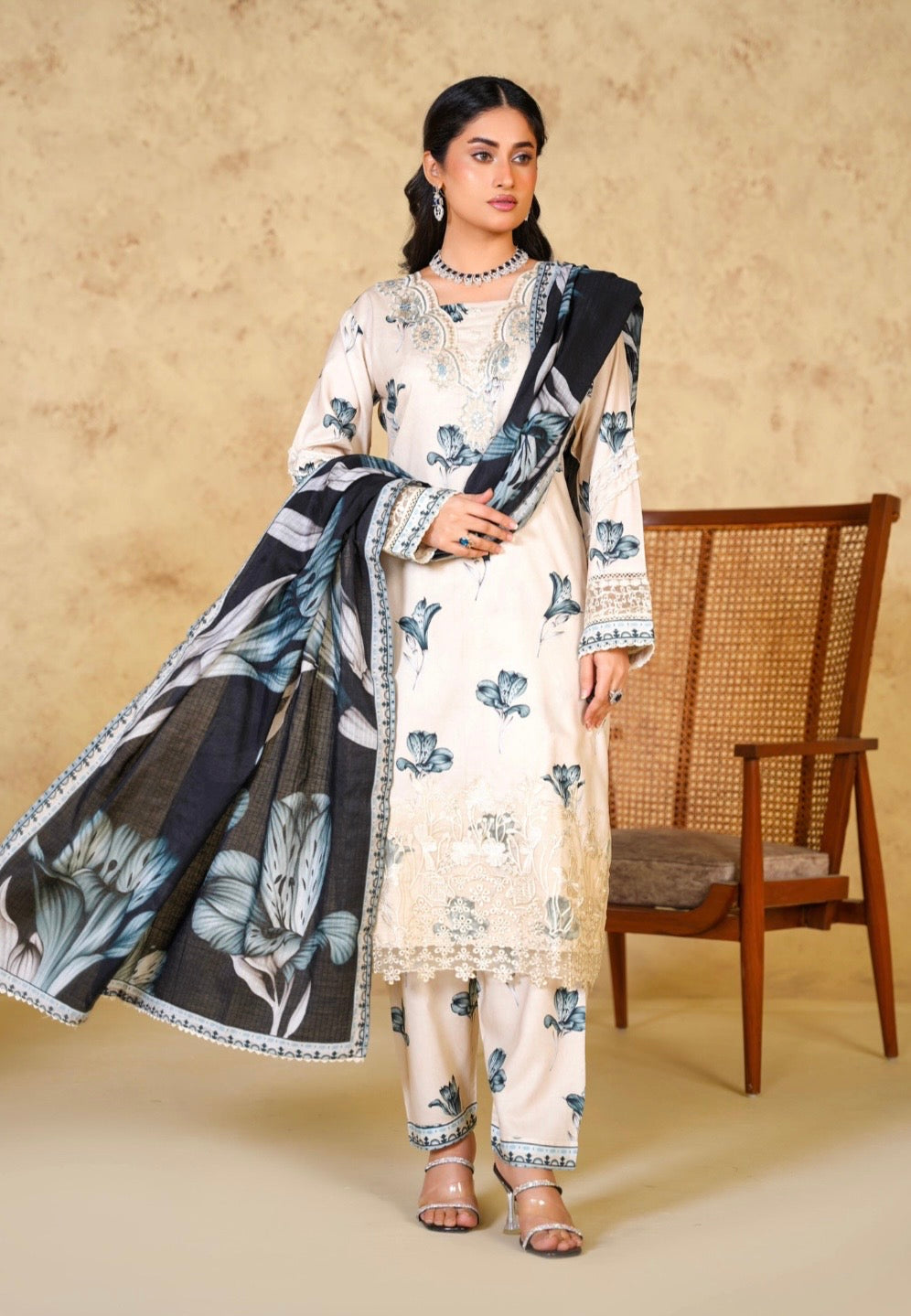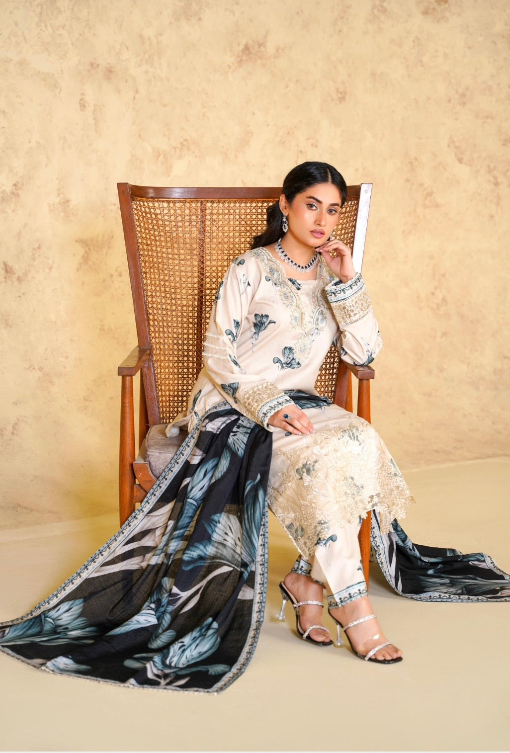 Embrace timeless elegance with our Embroidered linen with digital printed dupatta ensemble. Crafted from luxurious linen, this outfit offers both comfort and style, making it perfect for both casual and formal occasions. The intricate embroidery on the fabric adds a touch of sophistication, highlighting the artistry and attention to detail that goes into every stitch.