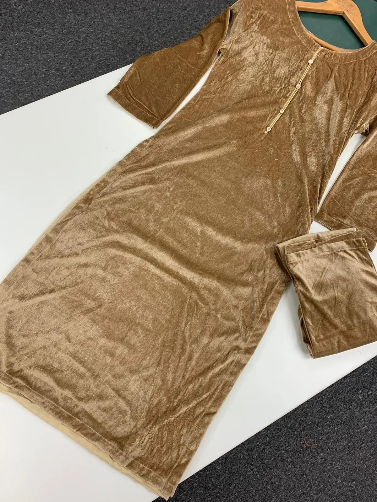 S Creations ‘Amara’ | Velvet 2pc Readymade | SC142 (Brown)