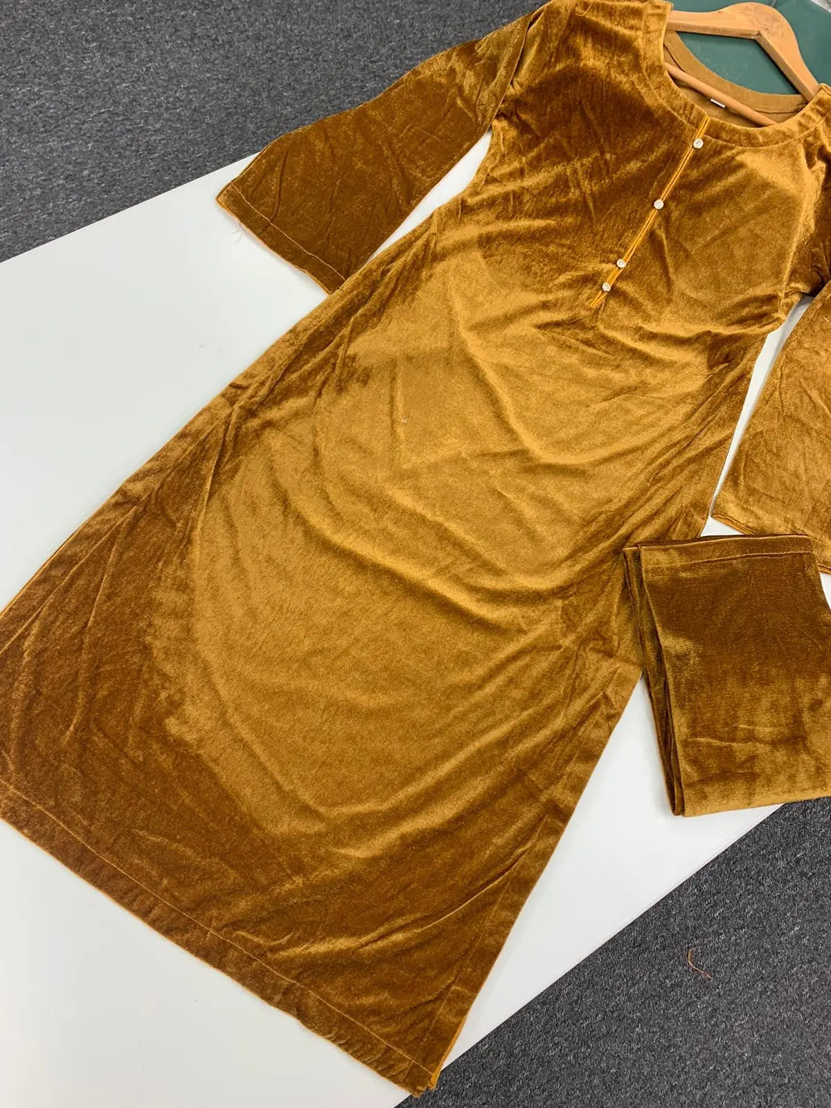 S Creations ‘Amara’ | Velvet 2pc Readymade | SC142 (Dark Brown)