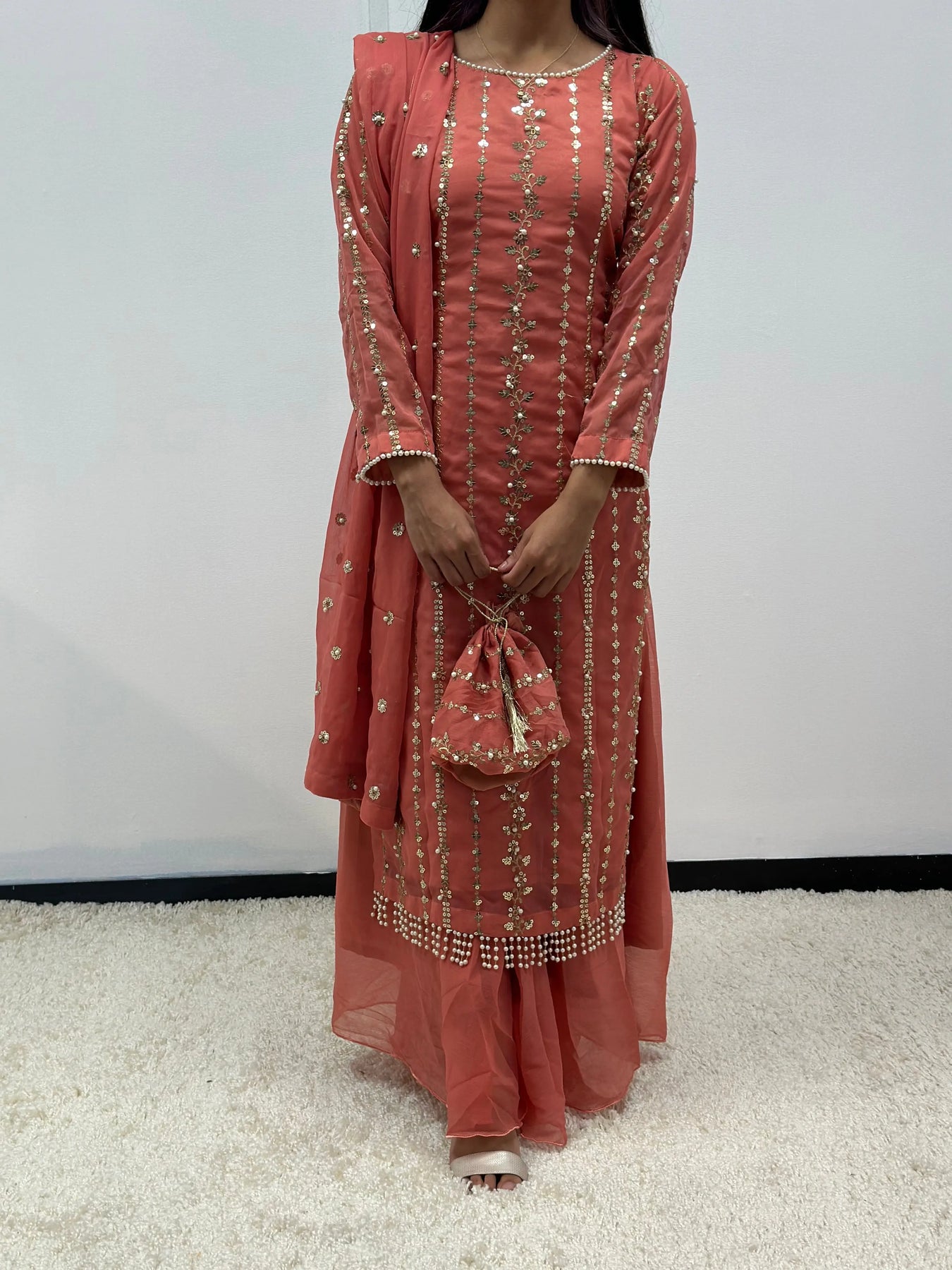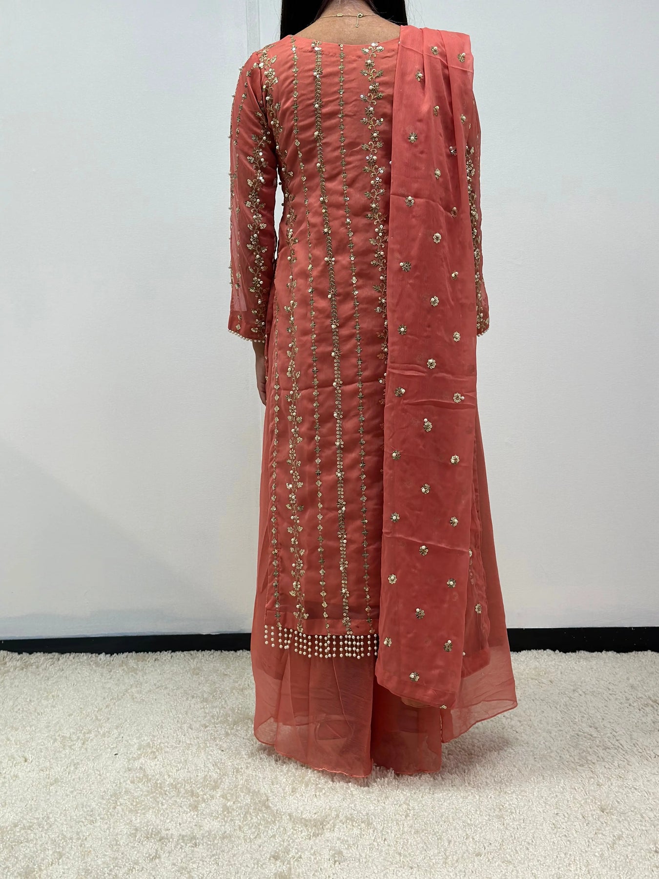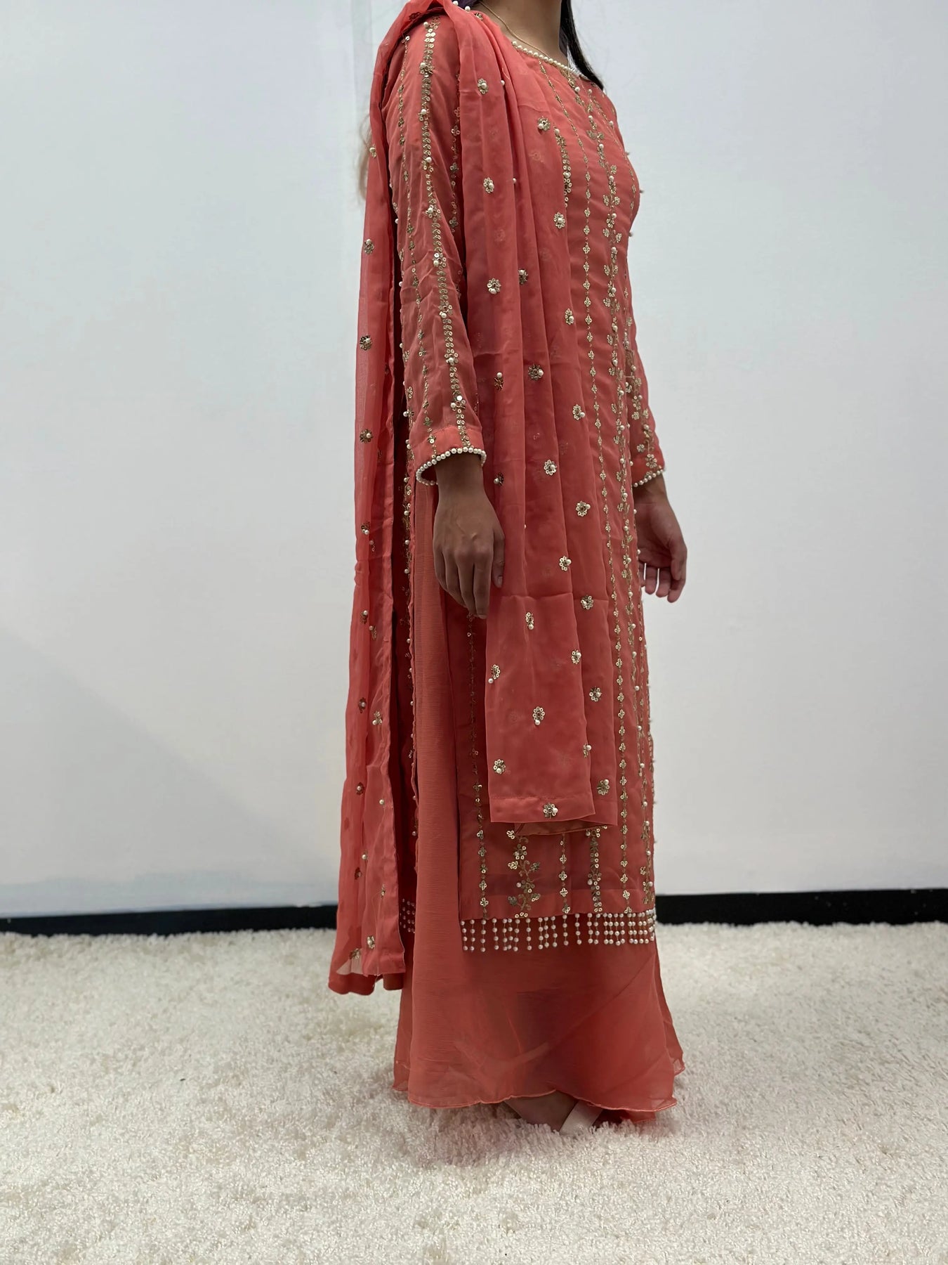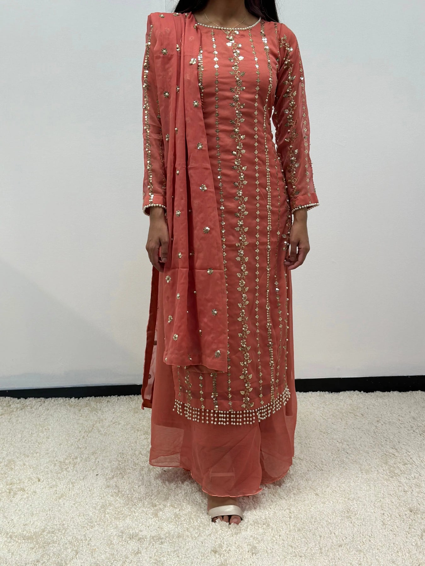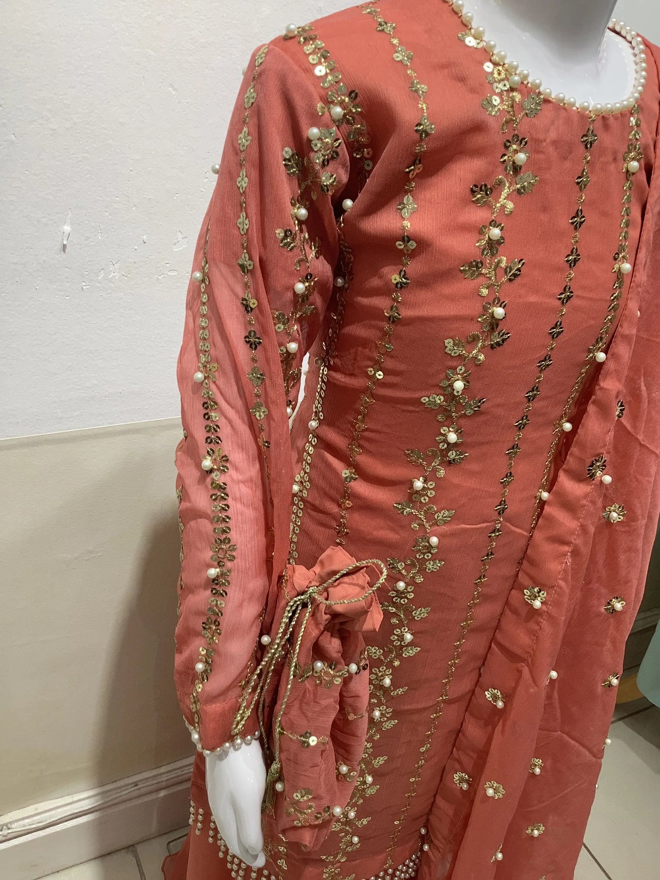 Stunning chiffon outfit with pearl embellishments
