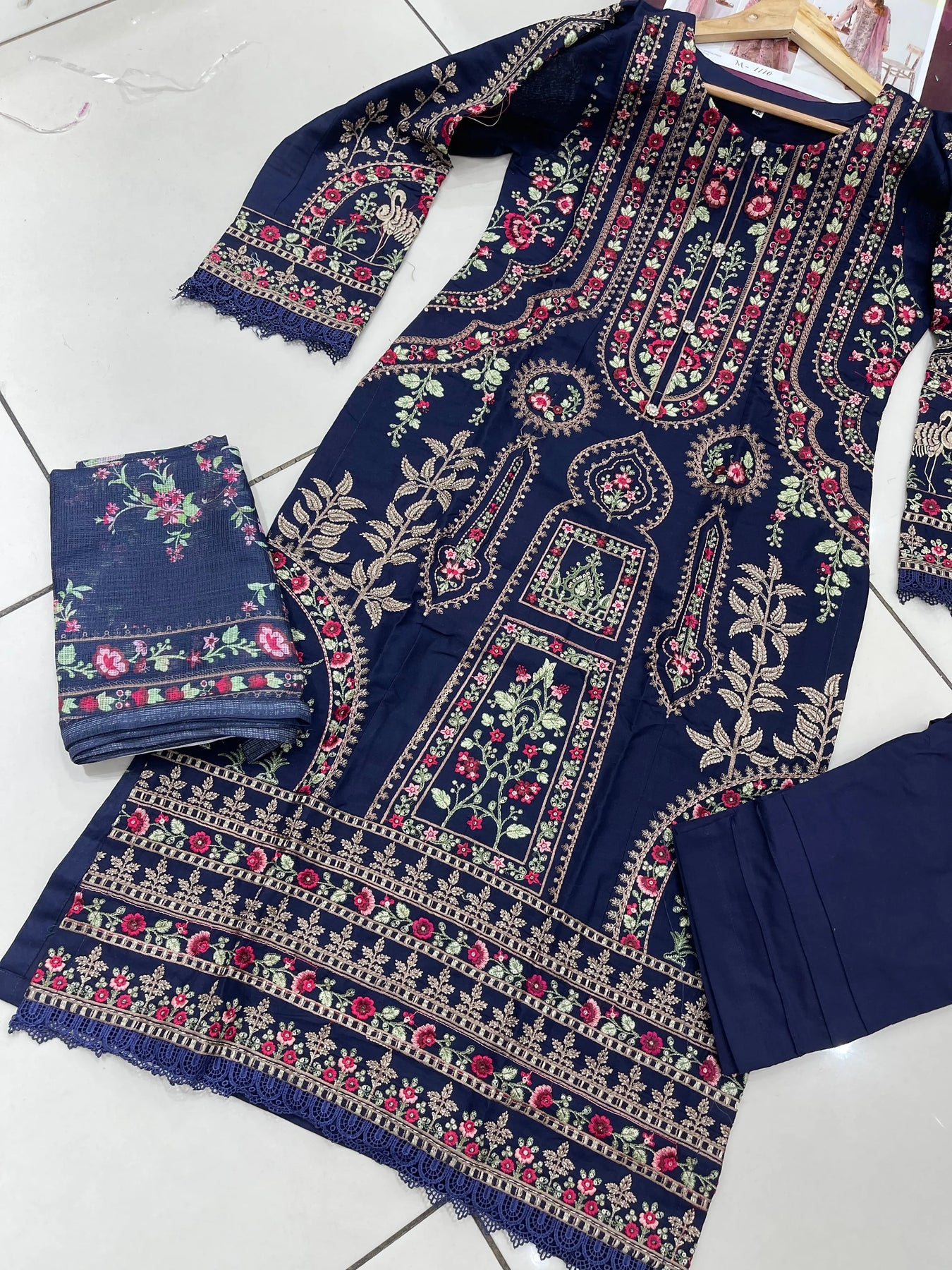 S Creations | Embroidered Cotton Readymade | SC081 (Navy)